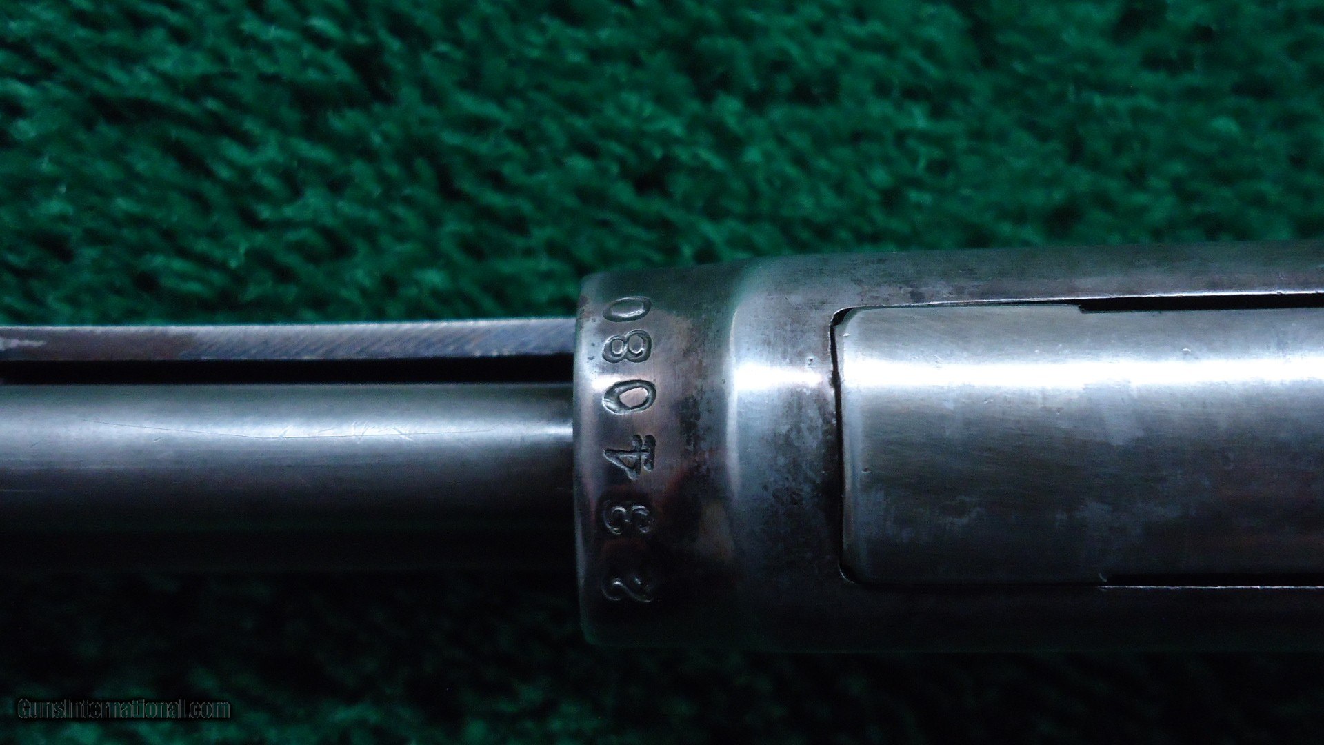 Description: 24 inch octagon barrel with bright bore chambered in 22 long. Has bead front sight & fixed V notch rear. Overall the metal surfaces appear smooth showing thinning finish with a somewhat uneven dull blue worn through in places with some spots showing bright gray, to a thinning and mottled appearance on receiver. This one has likely been through some changes showing signs of touch up and rework. Leroy Merz Antique Firearms specializes in antique and vintage Winchesters and other fine American firearms. Since 1965 Mr. Merz has taken part in the world of firearms and has been a contributor to many well known reference books. We have hundreds of additional guns in every price range at our home online. Search for Merz Antiques in google. SOLD Curio/Relic: Yes Rifle Caliber: .22 Long |
