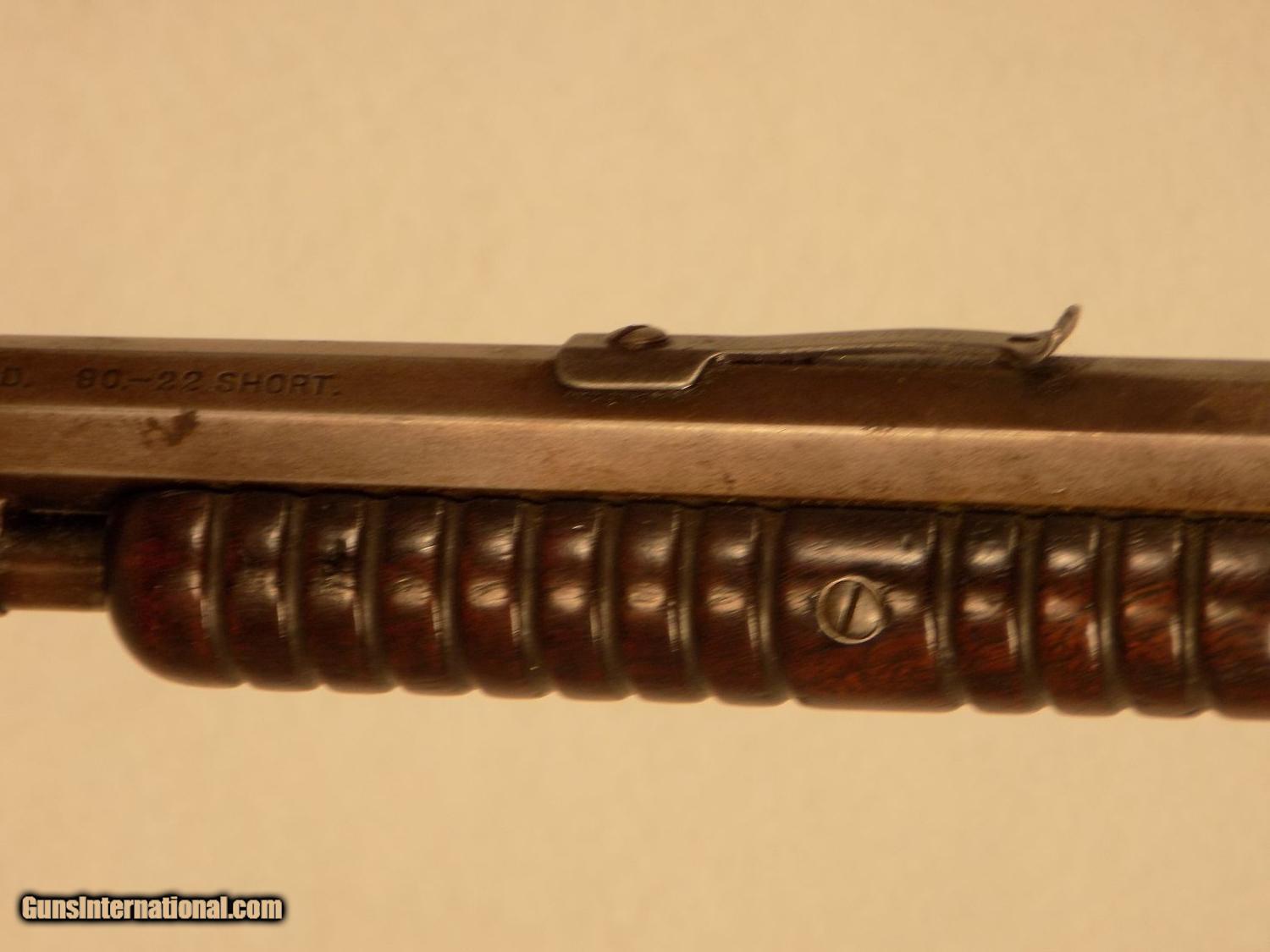 Description: #677 WIN. MODEL 1890, 22 short, 24” oct. bbl., fair bore, good wood, original sights, metal turning grey patina, works well. $595 FFL REQUIRED SOLD