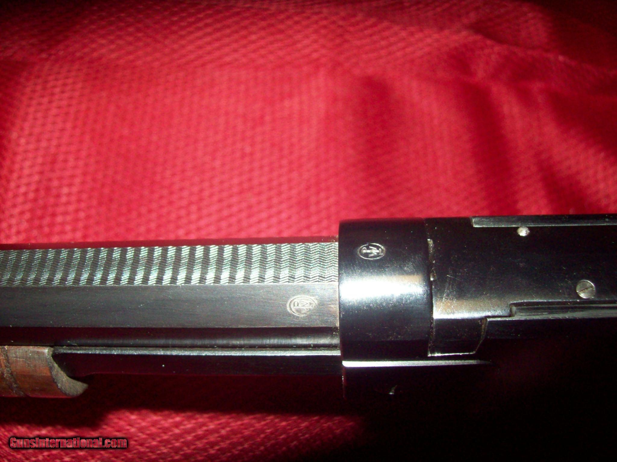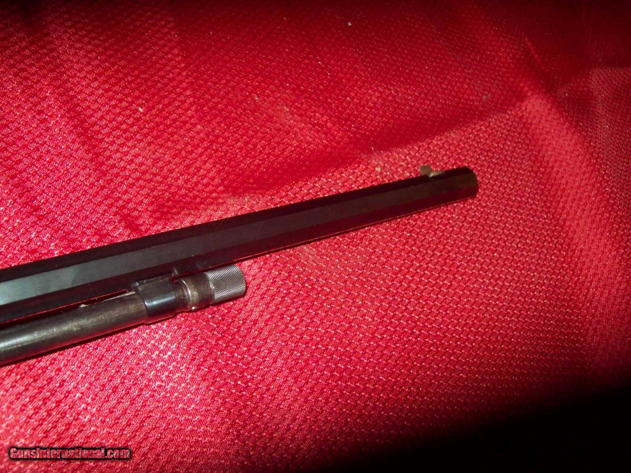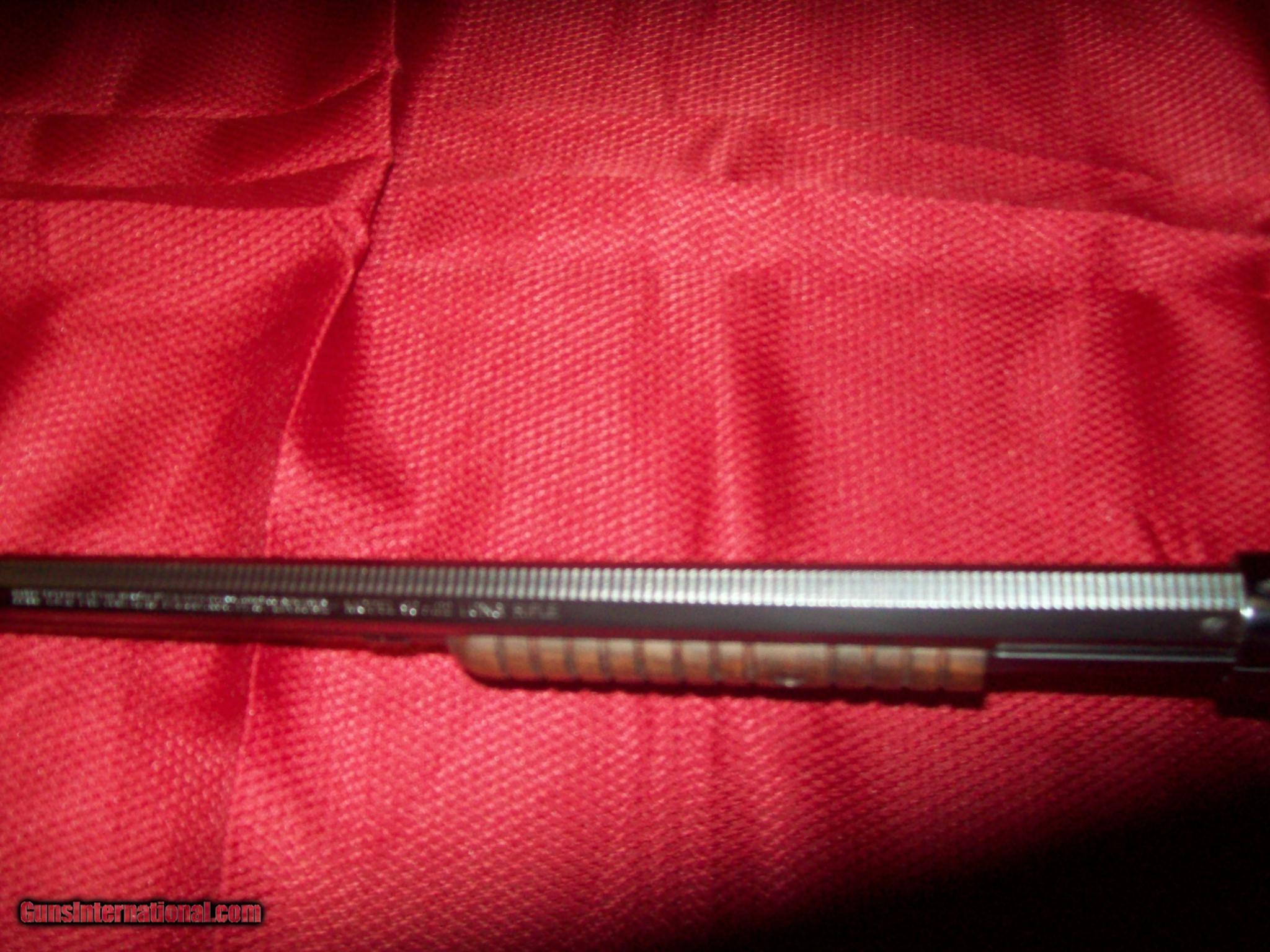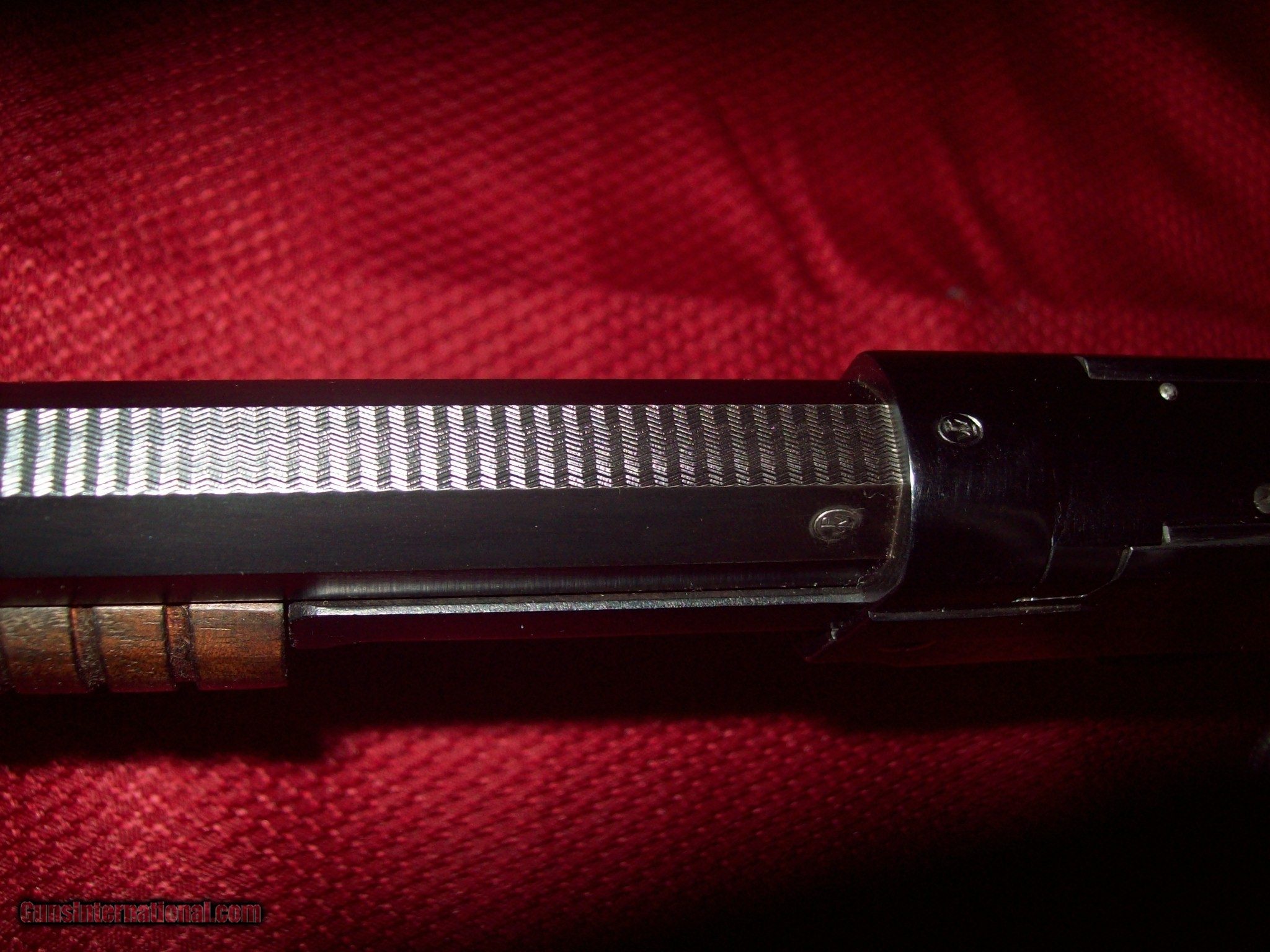 Description: Third Model 1890 pg Deluxe has the rare matteed top flat barrel as shown in Swing's book Winchester slide action rifles Bore is excellent Metal finish is very good slight edge and corner wear on blued finish. Wood is very nice some minor handling marks 24" barrel No rear dovtail has original Lyman tang sight . A very nice rifle SOLD Curio/Relic: Yes Manufacturer: Winchester Model: 1890 Deluxe Caliber Info: 22 Long Rifle Bore: excellent Condition: very good Metal Condition: very good Wood Condition: very good Bore Condition: excellent Barrel Type: octagon Action: pump Sights: Tang sight lyman Item Location: Florida |
