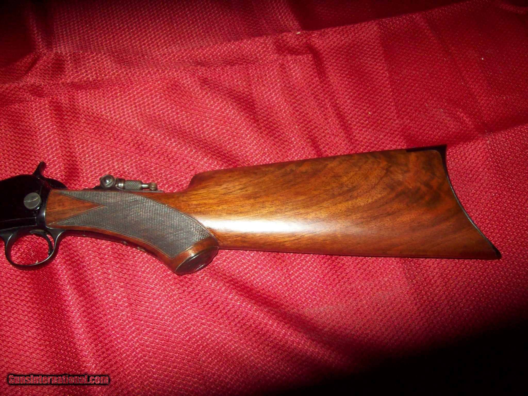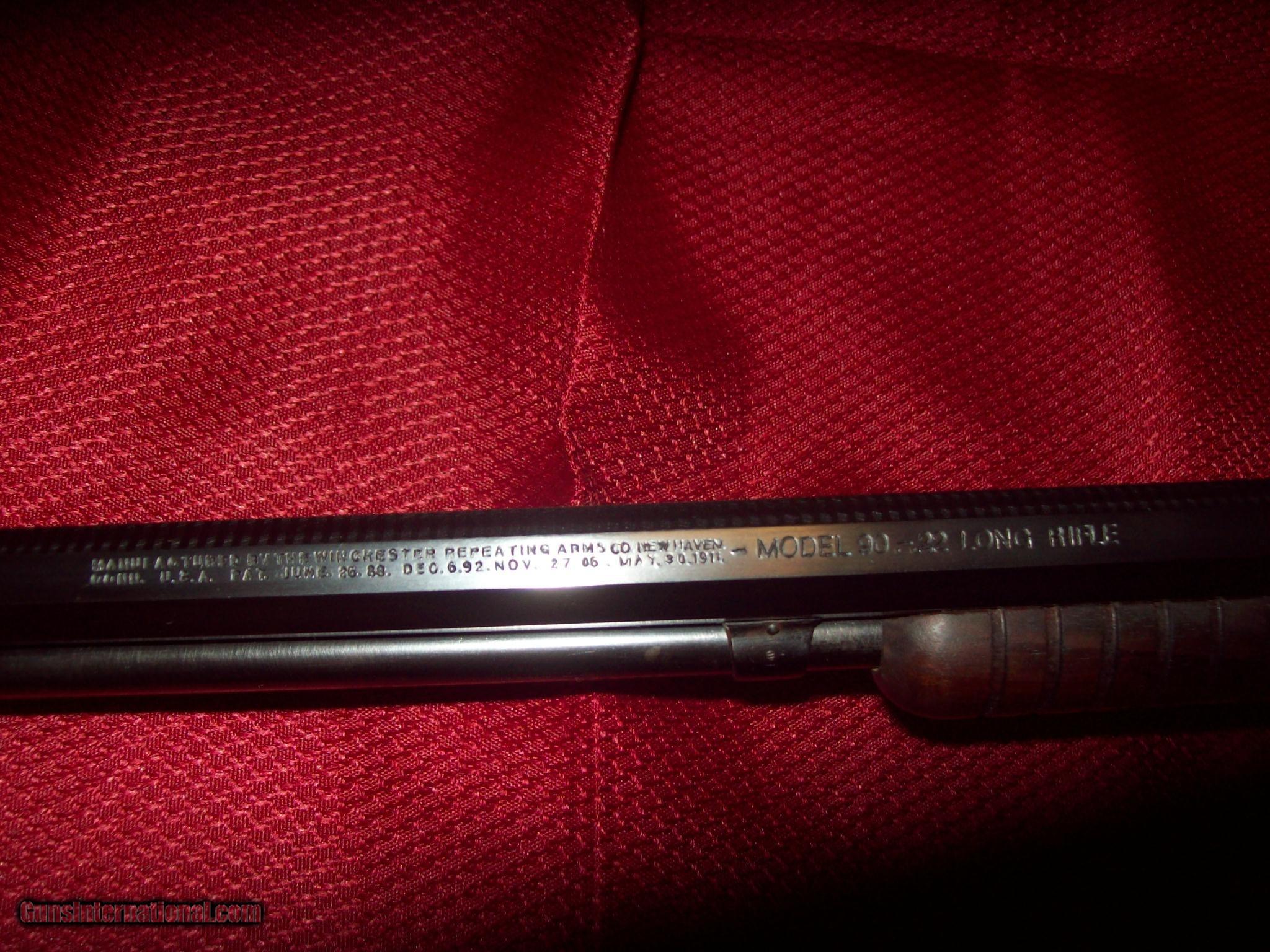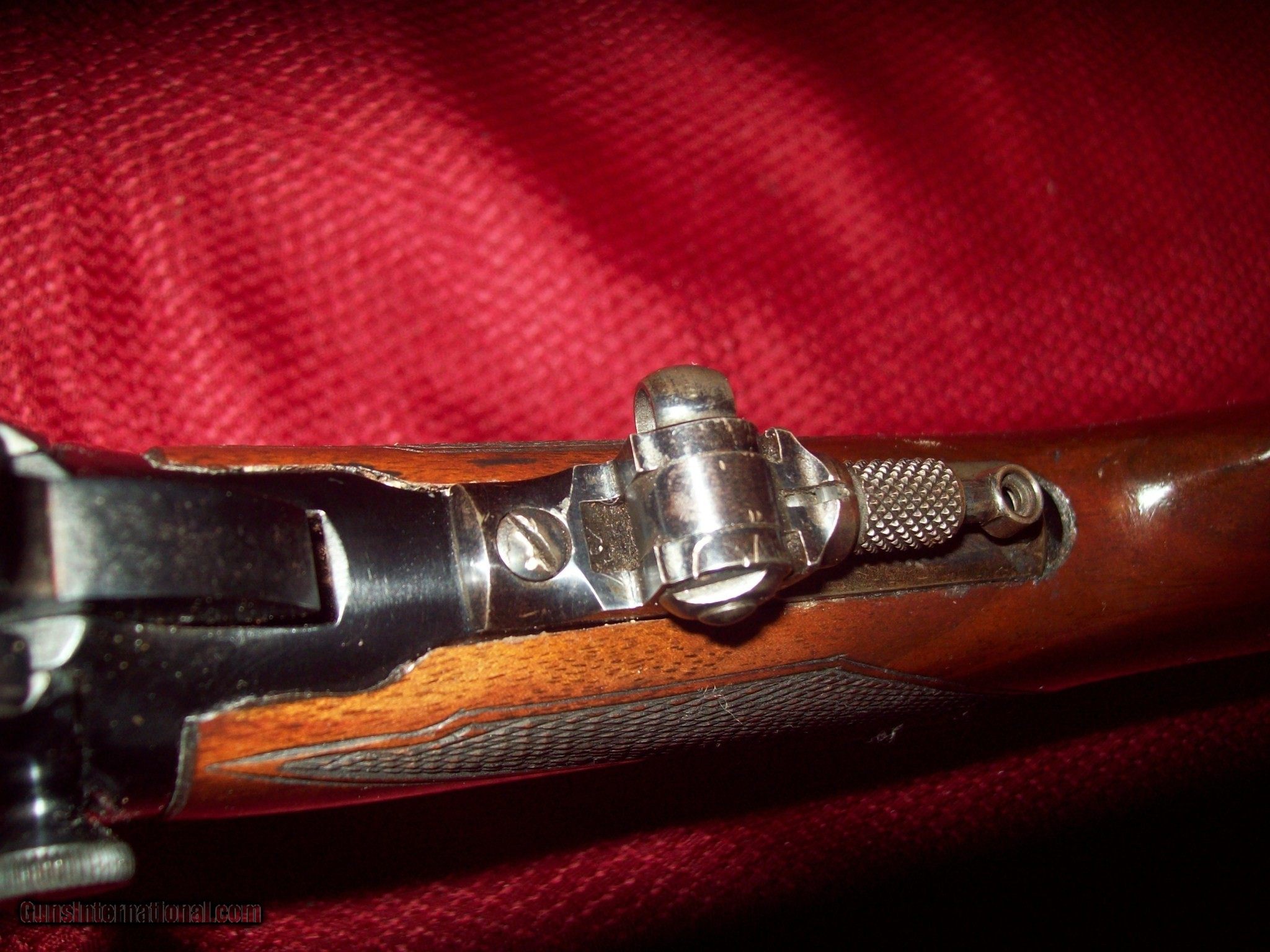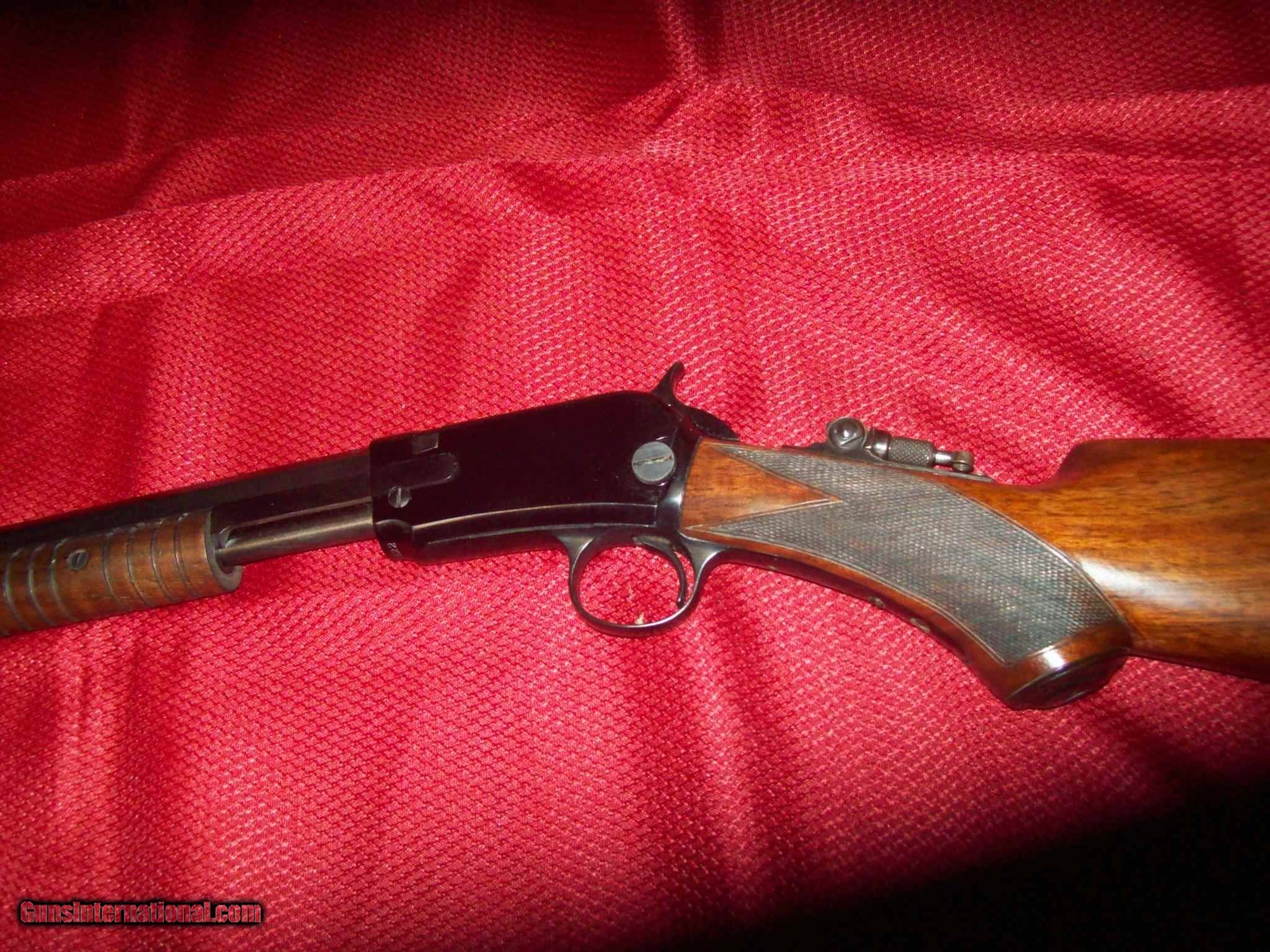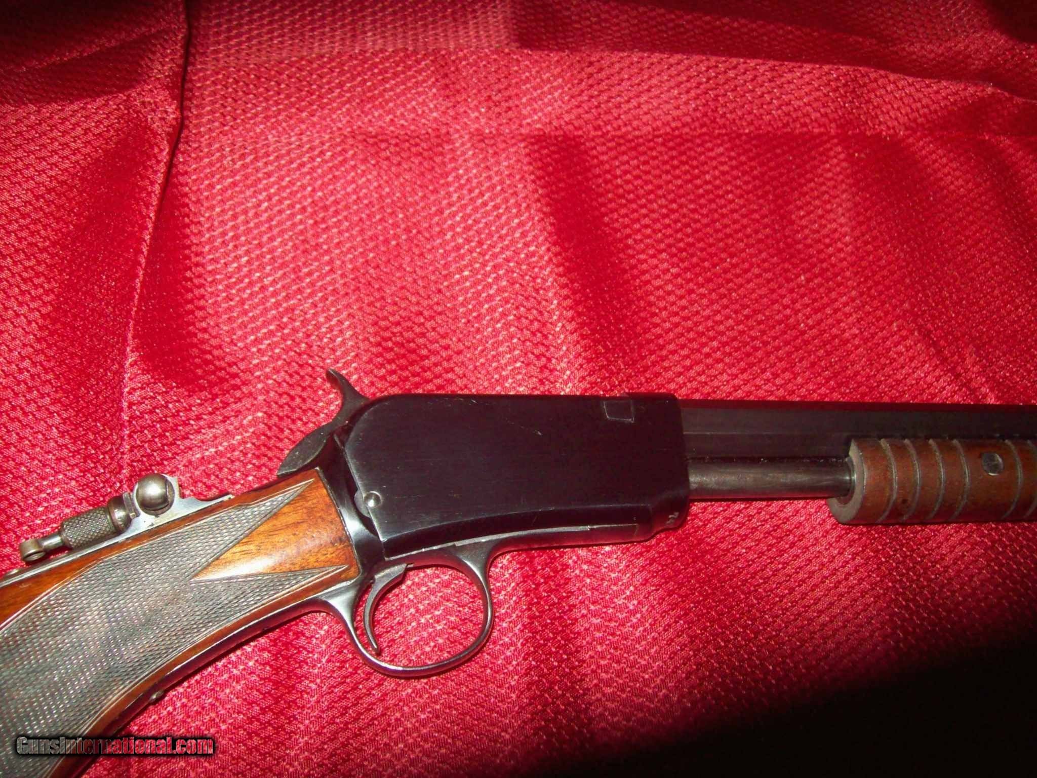 Description: Third Model 1890 pg Deluxe has the rare matteed top flat barrel as shown in Swing's book Winchester slide action rifles Bore is excellent Metal finish is very good slight edge and corner wear on blued finish. Wood is very nice some minor handling marks 24" barrel No rear dovtail has original Lyman tang sight . A very nice rifle SOLD Curio/Relic: Yes Manufacturer: Winchester Model: 1890 Deluxe Caliber Info: 22 Long Rifle Bore: excellent Condition: very good Metal Condition: very good Wood Condition: very good Bore Condition: excellent Barrel Type: octagon Action: pump Sights: Tang sight lyman Item Location: Florida |