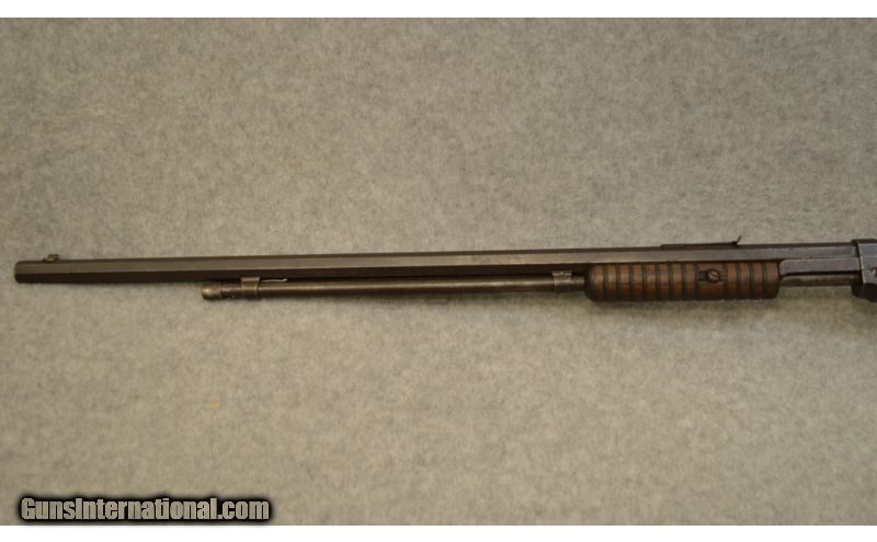 Description: This is a Winchester 1890 pump-action chambered in .22 with a tubular magazine. It has a 24" blued octagonal barrel with a blade sight. The stock is brown wood in good condition, with some deep scratches and dings but no cracking. The pump action is a matching wood with deep groove grips. The metal is in good condition, with scratches and dings. The bore has some pitting and markings. SOLD Caliber Info: .22 LR. Chambers: Pump action with a tubular magazine. Metal Condition: Good, with some scratches, dings, and aging. Wood Condition: Good, with deep scratches and aging, but no cracking. Bore Condition: Some pitting and markings. Barrels: 24" Blued octagonal. Triggers: Single curved trigger. Stock: Brown wood. Stock Dimensions: 14" LOP. Fore End: Matching wood, with deep groove grips. Butt Pad: Brown metal butt plate. Weight: 5 lbs. 3 oz. Sights: Blade sight. Item Location: Huntsville, AL |