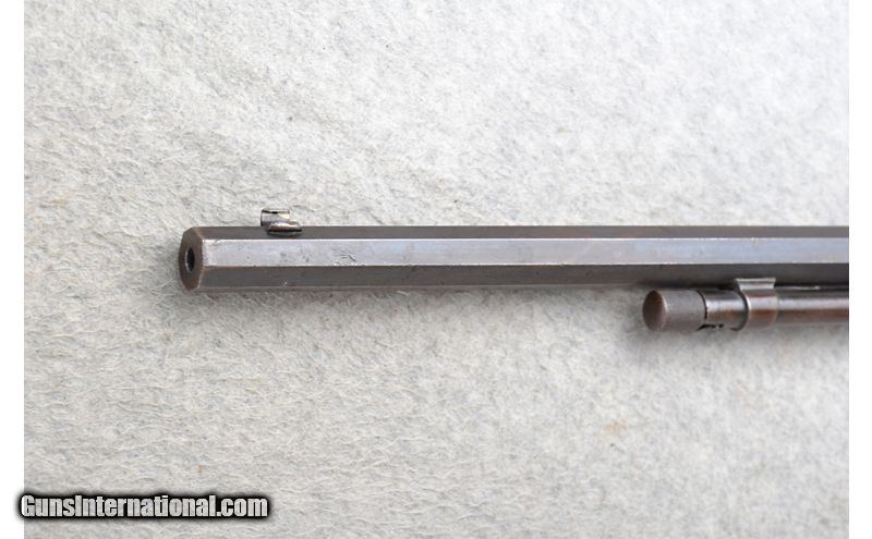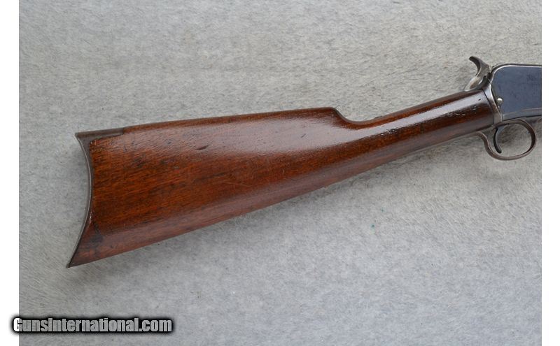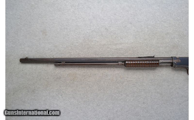 Description: This Winchester Model 1890 is a pump action repeating rifle in .22 Short Cal. It has a 24 inch octagon barrel. A blade front sight and notch middle sight. The butt stock is a smooth grip walnut straight grip. The forearm is a ribbed grip walnut. Serial Number 348799 (1908). .22 Short SOLD Curio/Relic: Yes Chambers: 12 round tube magazine. Metal Condition: "Fair. Blue wear, handling marks and freckling. Wood Condition: Good. Handling marks. Appears refinished. Bore Condition: Light pitting. Barrels: 24 inch octagon. Stock Dimensions: LOP 12 3/4 inches. Fore End: Ribbed grip walnut. Butt Pad: Steel crescent. Weight: 5 lb. 12 oz. Sights: Blade front. Notch middle. Item Location: Fort Worth, TX |