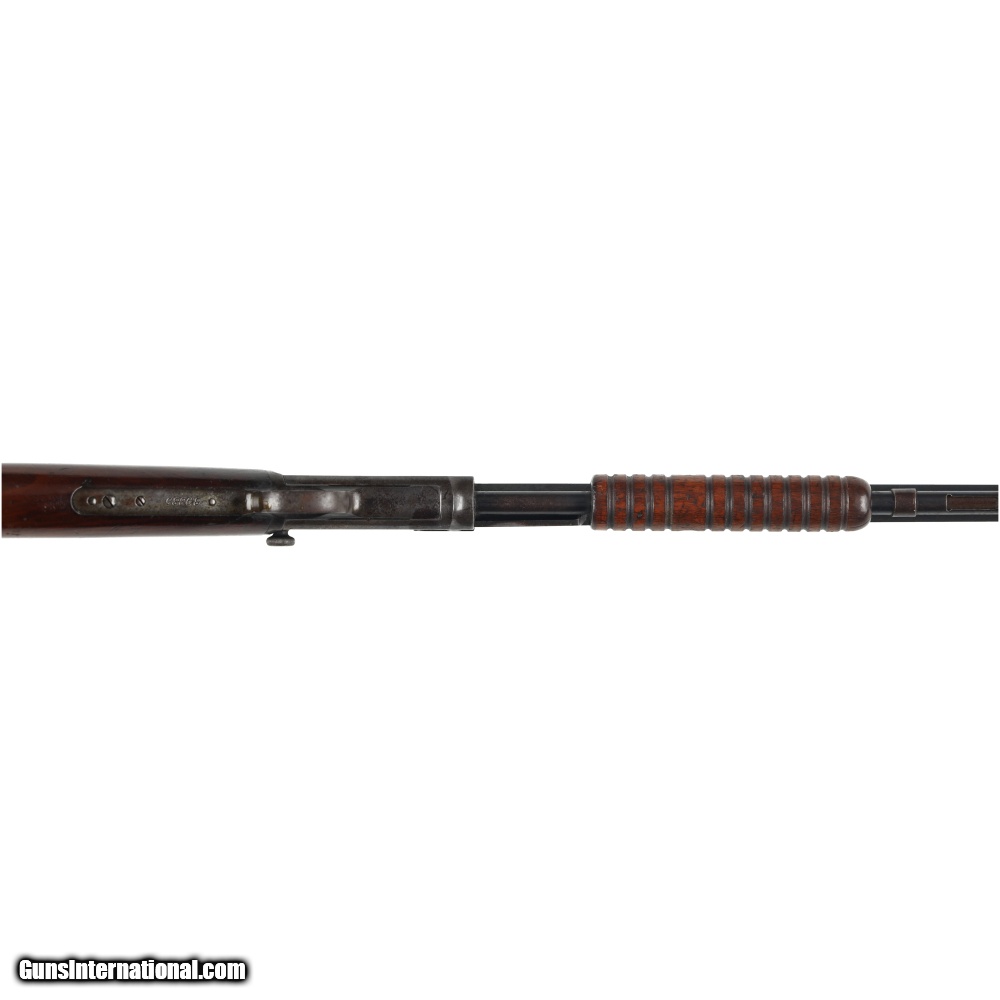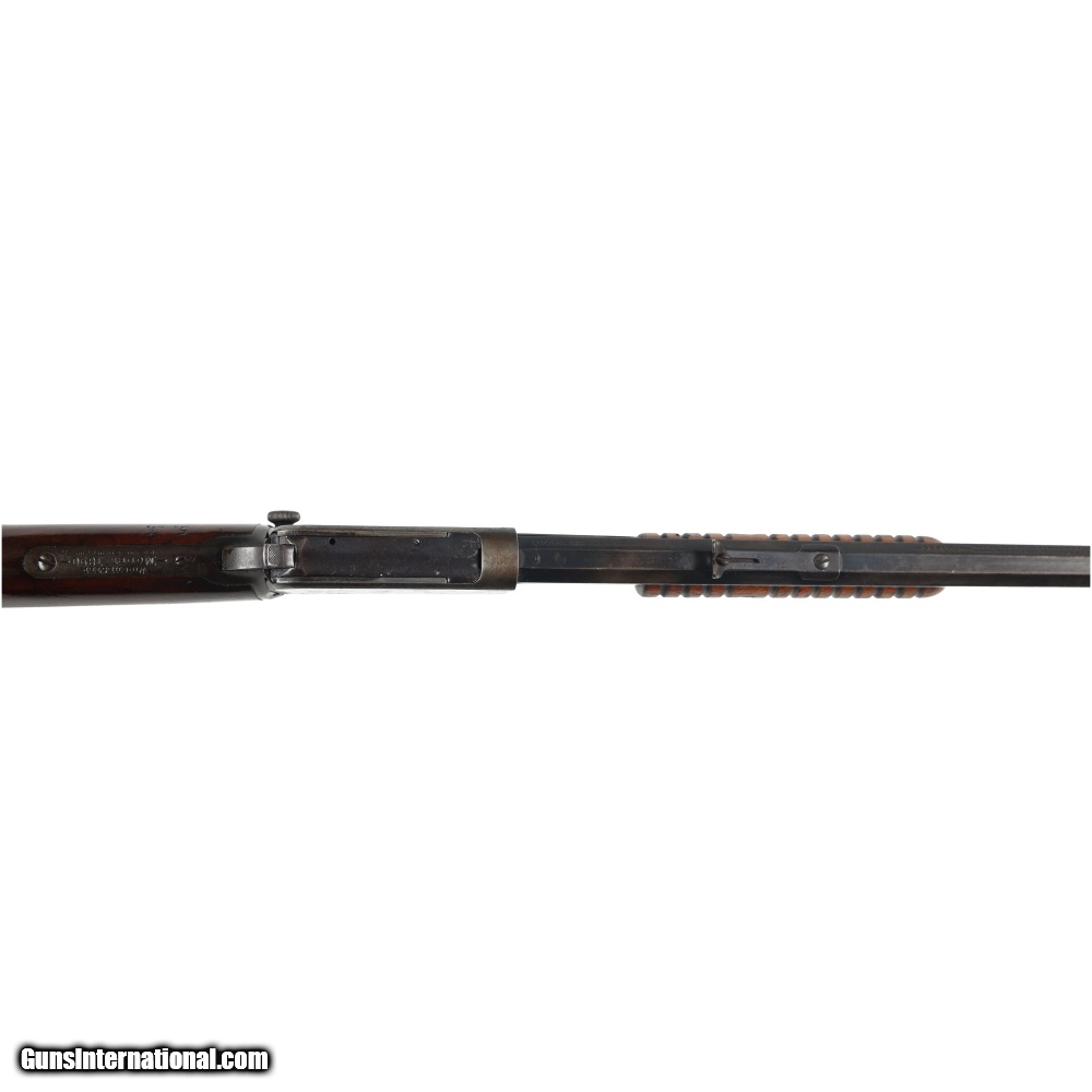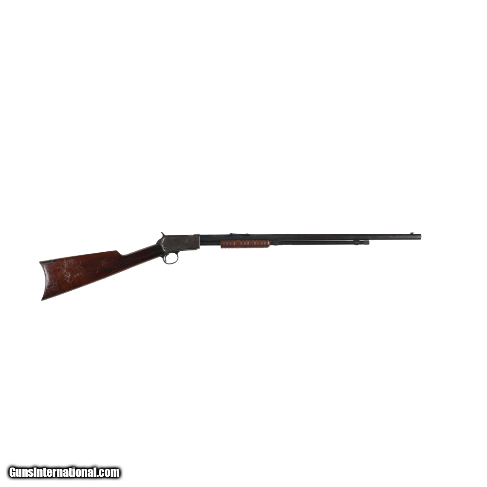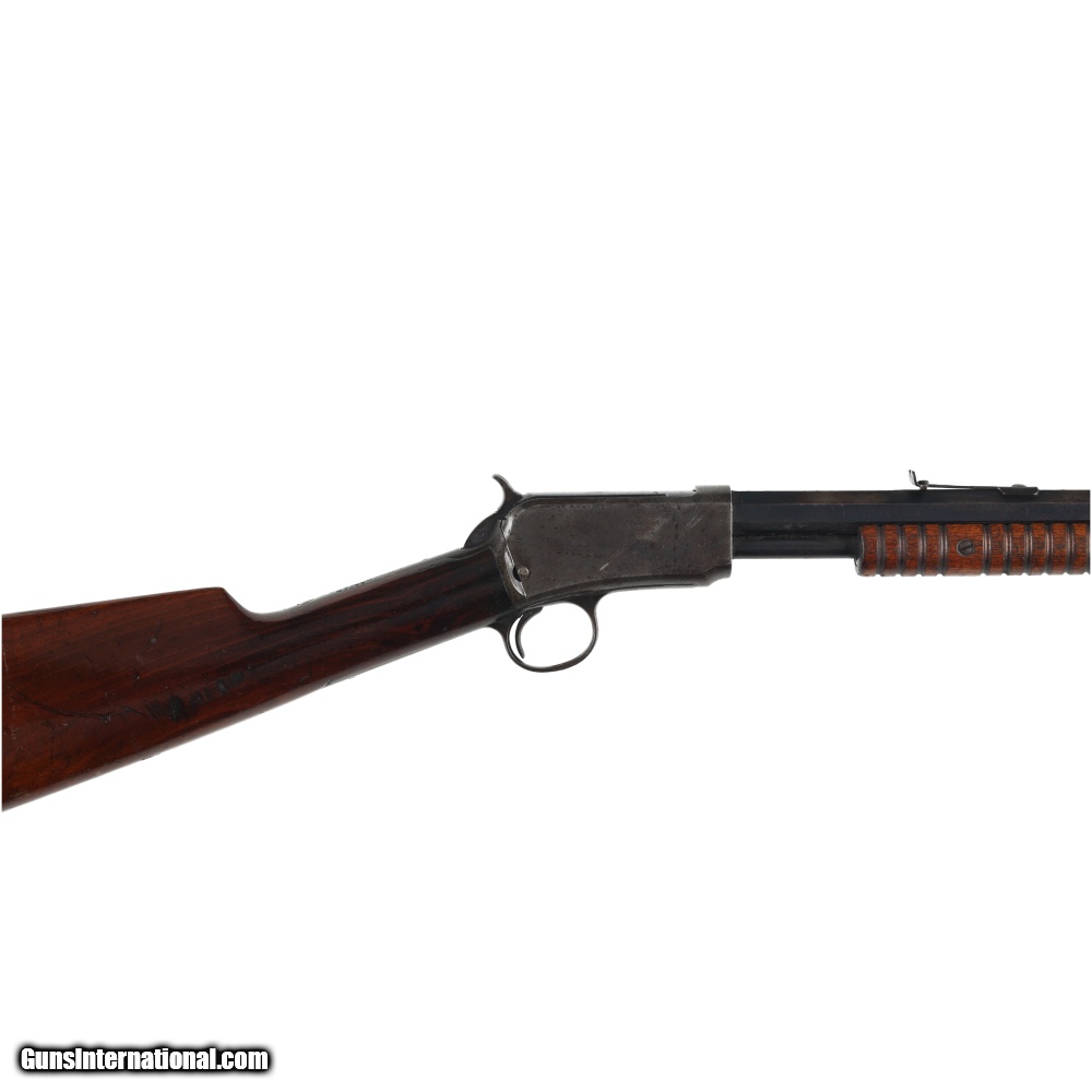 Description: Made between 1890 and 1941 the Winchester 1890 was one of the most successful pump action .22 rifles ever made. This example, originally made in 1900 is starting to show its years. This rifle appears to have had its barrel replaced at least once, as one of the patent dates on the barrel is for 1911. The stock has wear that is befitting of its age and is coated in either shellac or lacquer, the stock also bears the initials of one of the previous owners on the left side of the wrist. The barrel condition is fair to good, with some original finish remaining and rifling still present in the bore, however it is somewhat pitted, the front sight is also broken. Mechanically the action seems to have good function, the sears all still engage and feel crisp plus the lifter and magazine still work. This should be a fine rifle to restore or a good gun for youth as the barrel should have some life to it still. Manufactured in: USA Hand: NONE Action Finish: Case Colored Metal Finish: Original Barrel Length: 24 Inches Barrel Condition: Fair Stock Finish: Refinished Stock Condition: Fair Type of Butt: Crescent Steel Plate Grip: Straight Grip Forend: Ribbed Extra Barrels: No. SOLD Curio/Relic: Yes Manufacturer: Winchester Model: 1890 Caliber Info: .22 Short Condition: Preowned Metal Condition: Fair Action: Pump Action Triggers: Single Fore End: Ribbed LOP: 12 7/8 Finish: Original Weight: 5.7 lbs Manufacture Date: 1900 Extras: No. Case: NONE |