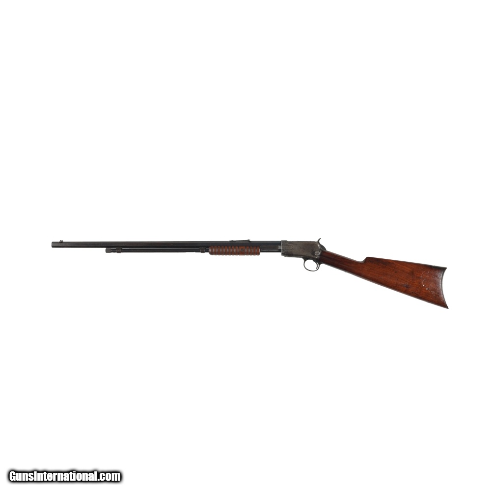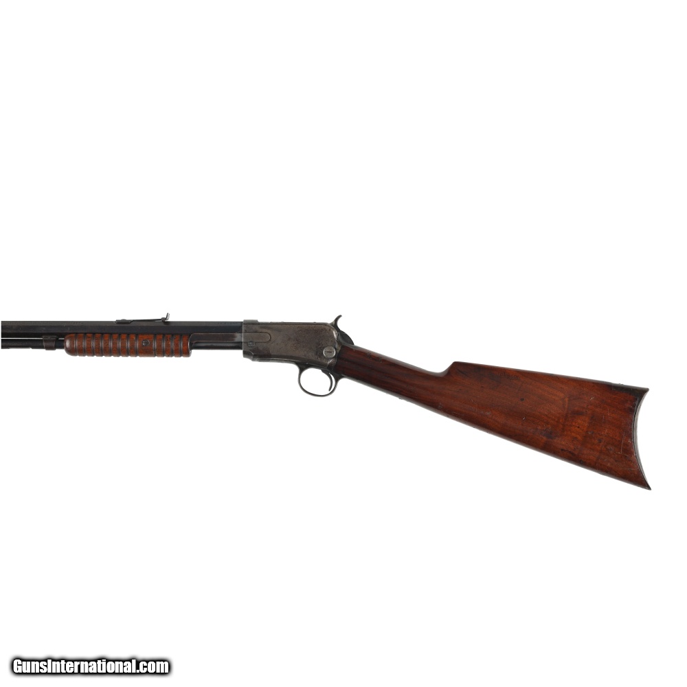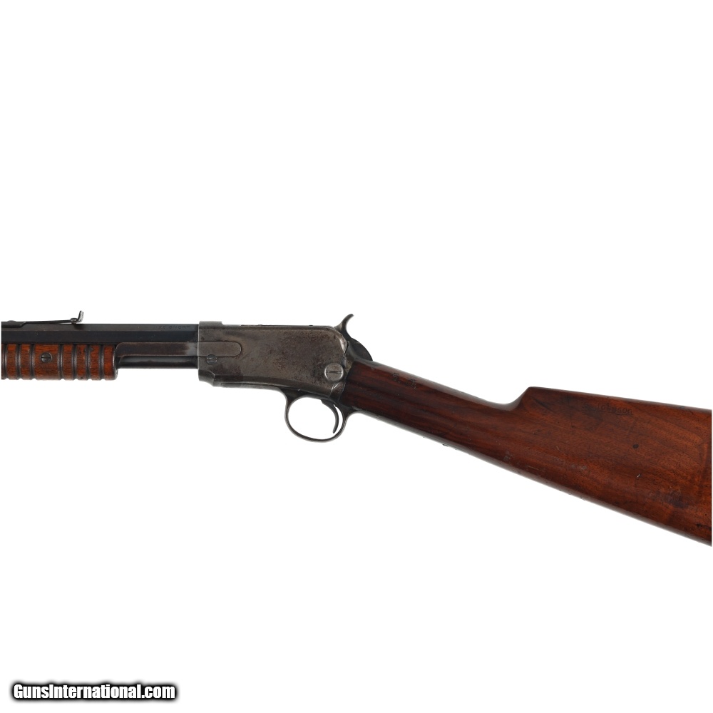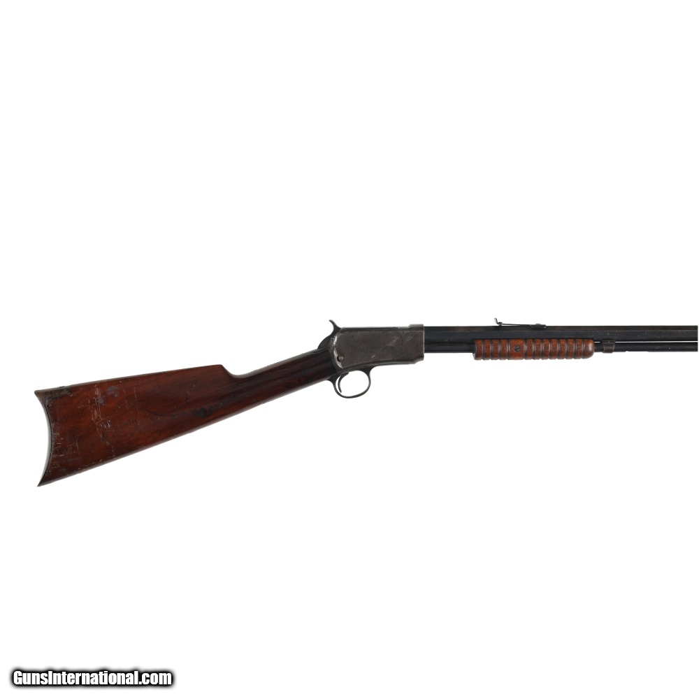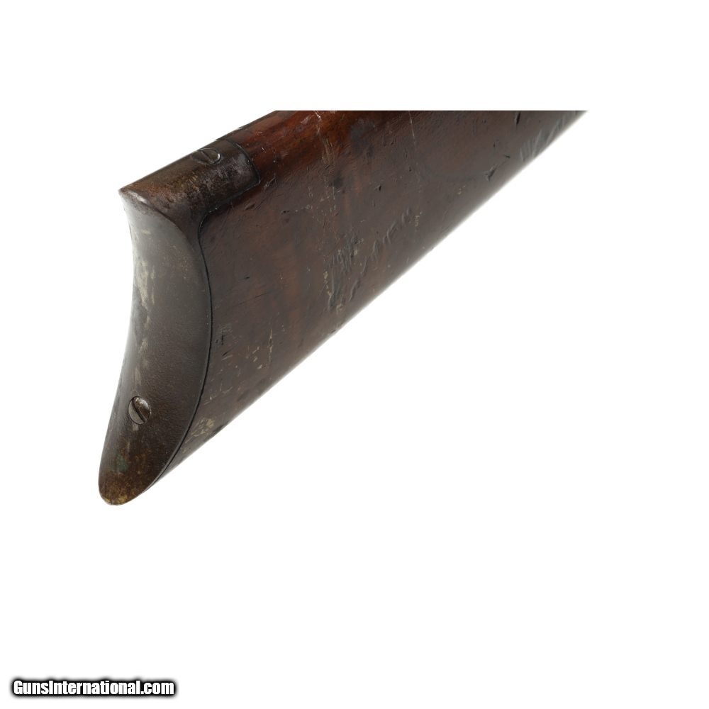 Description: Made between 1890 and 1941 the Winchester 1890 was one of the most successful pump action .22 rifles ever made. This example, originally made in 1900 is starting to show its years. This rifle appears to have had its barrel replaced at least once, as one of the patent dates on the barrel is for 1911. The stock has wear that is befitting of its age and is coated in either shellac or lacquer, the stock also bears the initials of one of the previous owners on the left side of the wrist. The barrel condition is fair to good, with some original finish remaining and rifling still present in the bore, however it is somewhat pitted, the front sight is also broken. Mechanically the action seems to have good function, the sears all still engage and feel crisp plus the lifter and magazine still work. This should be a fine rifle to restore or a good gun for youth as the barrel should have some life to it still. Manufactured in: USA Hand: NONE Action Finish: Case Colored Metal Finish: Original Barrel Length: 24 Inches Barrel Condition: Fair Stock Finish: Refinished Stock Condition: Fair Type of Butt: Crescent Steel Plate Grip: Straight Grip Forend: Ribbed Extra Barrels: No. SOLD Curio/Relic: Yes Manufacturer: Winchester Model: 1890 Caliber Info: .22 Short Condition: Preowned Metal Condition: Fair Action: Pump Action Triggers: Single Fore End: Ribbed LOP: 12 7/8 Finish: Original Weight: 5.7 lbs Manufacture Date: 1900 Extras: No. Case: NONE |