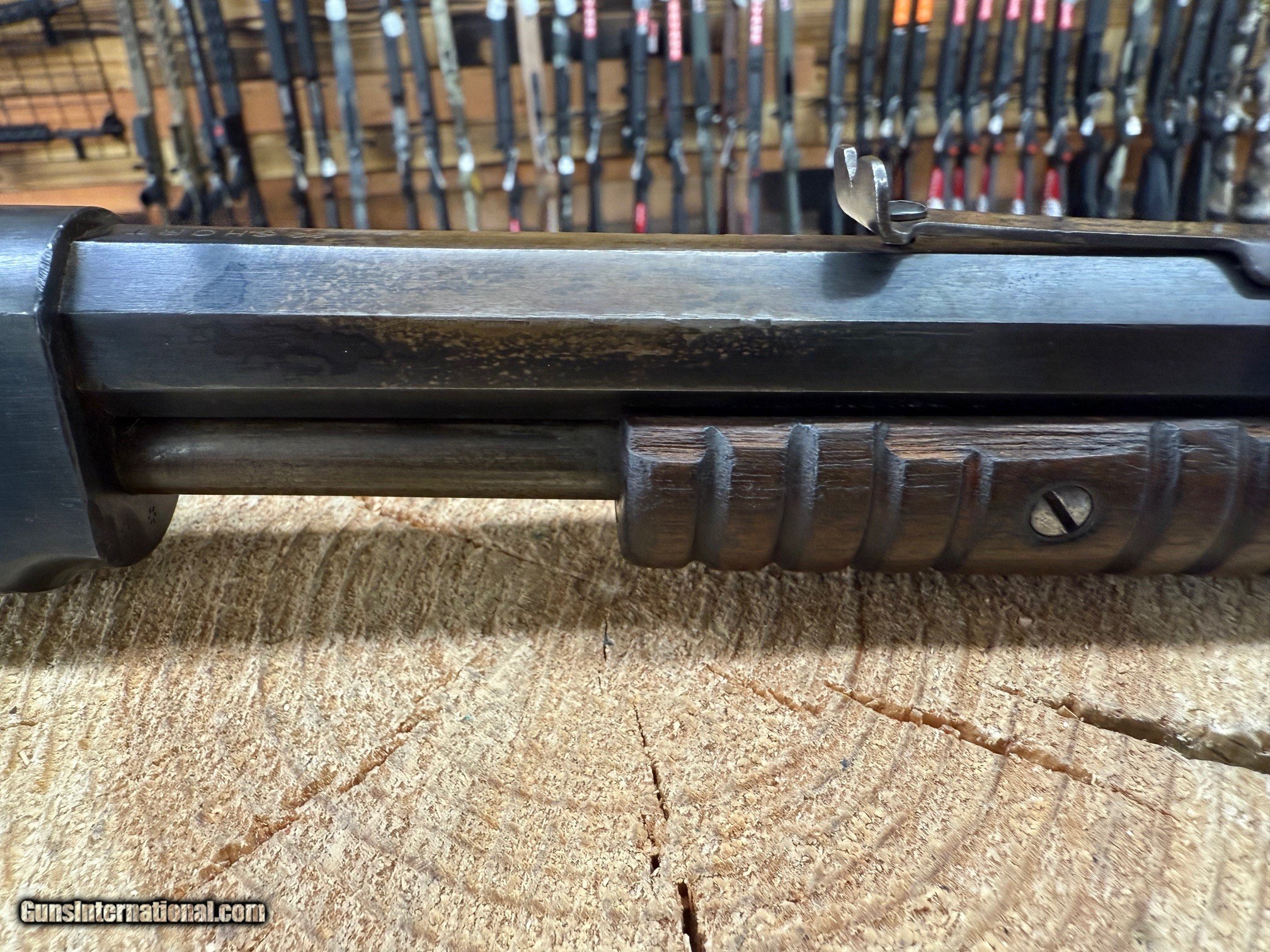 The Winchester Model 1890 stands as a fine representation of Winchester’s enduring craftsmanship and John M. Browning’s design genius. This particular example is chambered in .22 Short, a caliber that made the rifle immensely popular in shooting galleries and for small game hunting thanks to its light recoil, low cost, and consistent accuracy. Featuring a 24-inch octagonal barrel with a blued finish, it combines both durability and classic late 19th-century styling. The rifle is outfitted with a blade front sight and adjustable rear sight, allowing shooters to achieve precise accuracy, whether for recreational target practice or practical field use. Its smooth hardwood straight grip stock and ribbed forearm provide a traditional feel and secure handling, further emphasizing Winchester’s balance of function and aesthetics. As a Second Model takedown variant, this 1890 incorporates mechanical improvements over the First Model, including external locking lugs for added action strength and reliability. The takedown feature made the rifle easy to transport and maintain, which was a valuable asset for both gallery operators and field shooters. Produced in large numbers between 1890 and 1932, the Model 1890 became one of the most successful and iconic rimfire repeating rifles ever built, with over 849,000 units manufactured. This 1905-dated rifle reflects that golden era, bridging the gap between Winchester’s earliest repeating rimfire designs and later refinements. Today, examples like this are highly sought after by collectors, not only for their historical significance but also for their enduring mechanical precision and timeless design, ensuring the Winchester 1890’s place as a classic in American firearms history.