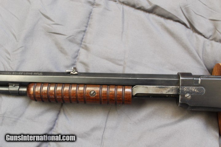 Description: Offered for sale is an exceptionally nice WINCHESTER 1890 in .22LR. One of the very last ones made during WWII. Serial # 827622 matching on lower tang and lower frame. In extremely fine condition with a MINT bore. Excellent stock. Tang sight and folding leaf rear sight on barrel. Action crisp as new. A really nice WINCHESTER in the scarce .22 LR only. Must ship to FFL- C&R accepted. $60 shipping to lower 48. -THANKS! --------- SOLD Curio/Relic: Yes Rifle Caliber: .22 Long Rifle Manufacturer: WINCHESTER Model: 1890 Serial Number: 827622 Condition: Excellent Bore Condition: MINT |