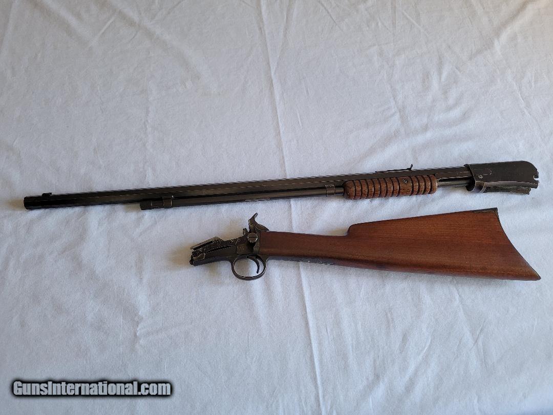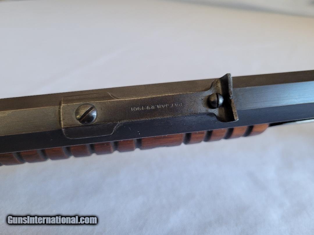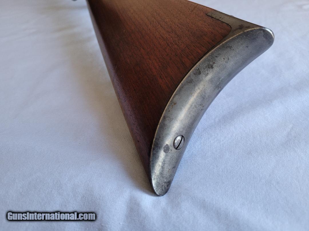 Description: SOLD!! This is a high condition model 1890 2nd model chambered for the potent 22 WRF cartdrige. This was the 22 magnum of the day. The 1890 rifle was the most popular slide action 22 produced for many years. This particular rifle has a S/N 256415, which dates it to 1905, and it falls into the later 2nd design variation. This design still incorporated the hidden locking lugs, as opposed to the outside lugs used on the 3rd variation 1890's, and most 1906's and 62 models. This rifle has the standard 24" octagon barrel with a mint bore. It has never been re-bled, and has all the nice clear script that it came with from the factory.The receiver still has 80-90% of the original blue remaining, with only a few light handling marks. The stock and forend appear to have their original finish intact, and in great shape, with no cracks or repairs. This gun takes down, and reassembles as designed. At 107 years old, this is about as nice of a 2nd model survivor as you could ever hope to find. THIS IS A COLLECTOR QUALITY PIECE. I prefer Postal Money Orders, unless otherwise agreed. Thanks for your interest. Dan at (608) 751-7194. SOLD ON HOLD SOLD Curio/Relic: Yes Manufacturer: Winchester Model: 1890 Serial Number: 256415 Barrel Length: 24 Bore: rifled Chambers: 22 WRF Condition: excellent overall Metal Condition: 85%-98% Wood Condition: 95% Bore Condition: mint Barrel Type: octagon Action: Slide Triggers: single Stock: factory walnut Fore End: grooved walnut Butt Pad: steel crescent Finish: Blue Sights: factory original Manufacture Date: 1905 |