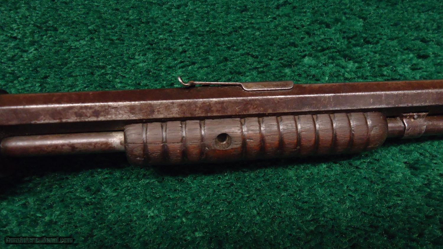 Description: Cal 22 short. This gun is in well used cond. It has seen it's share of hard use and abuse. Oct bbl with good markings. Mostly a deep chocolate patina on the bbl and an aged looking frame. Slide action is very worn. A couple cracks from the screw holes. Surprisingly there is no wood missing. Buttstock looks about the same with a couple of cracks. On top of that, some dumb ass sketched in some skull and crossbones on the left side of the stock that looks like the work of a 3rd grader. It has some issues but it is still a Winchester! Leroy Merz Antique Firearms specializes in antique and vintage Winchesters and other fine American firearms. Since 1965 Mr. Merz has taken part in the world of firearms and has been a contributor to many well known reference books. Just recently we mailed the 125th edition of our privately-published catalog. We have hundreds of additional guns in every price range at our home online. Search for Merz Antiques in google. SOLD Curio/Relic: Yes Manufacturer: Winchester |