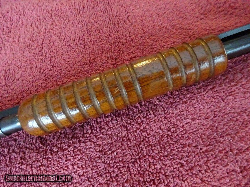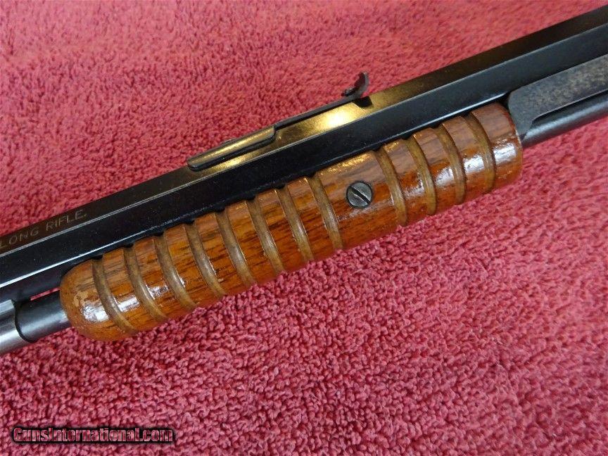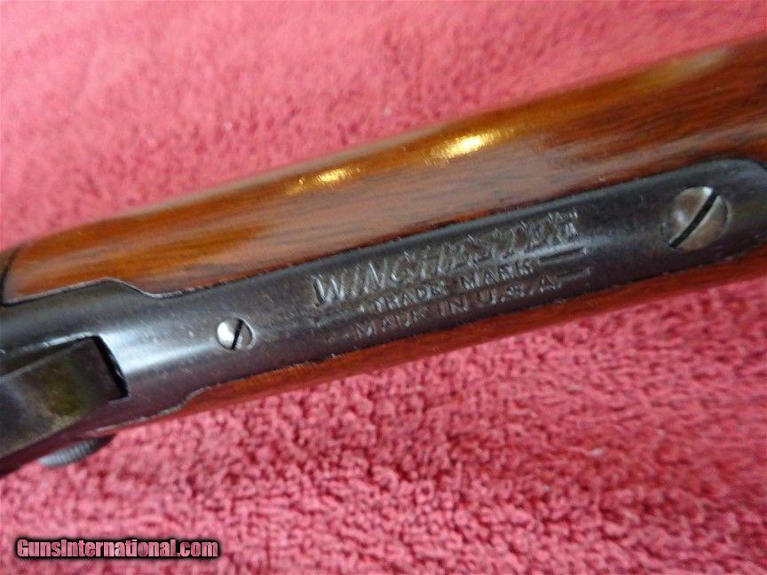 Description: WINCHESTER MODEL 90, 3RD MODEL, STAINLESS STEEL BARREL, LONG RIFLE. NEARLY 100% BARREL FINISH, OUTSTANDING CONDITION, MIRROR BRIGHT BORE, PERFECT BARREL MARKINGS. FRAME, TOP AND BOTTOM, TANGS AND CRESCENT BUTTPLATE HAVE EXCELLENT BLUE COVERAGE BUT IT IS RATHER DULL. WOOD BOTH FOREARM AND BUTTSTOCK IS EXCELLENT WITH MOST ALL THE VARNISH. THIS IS AN EXCEPTIONAL, 100% ORIGINAL MODEL 90. EXTREMELY SCARCE VARIATION, MADE IN 1928. $3000.00 + $50.00 Insured shipping to an FFL address. See all Pats listings We also have hundreds of pieces of ORIGINAL gun company advertising & memorabilia available for sale. We have no reprints or reproductions. Email for more information. SOLD Curio/Relic: Yes |