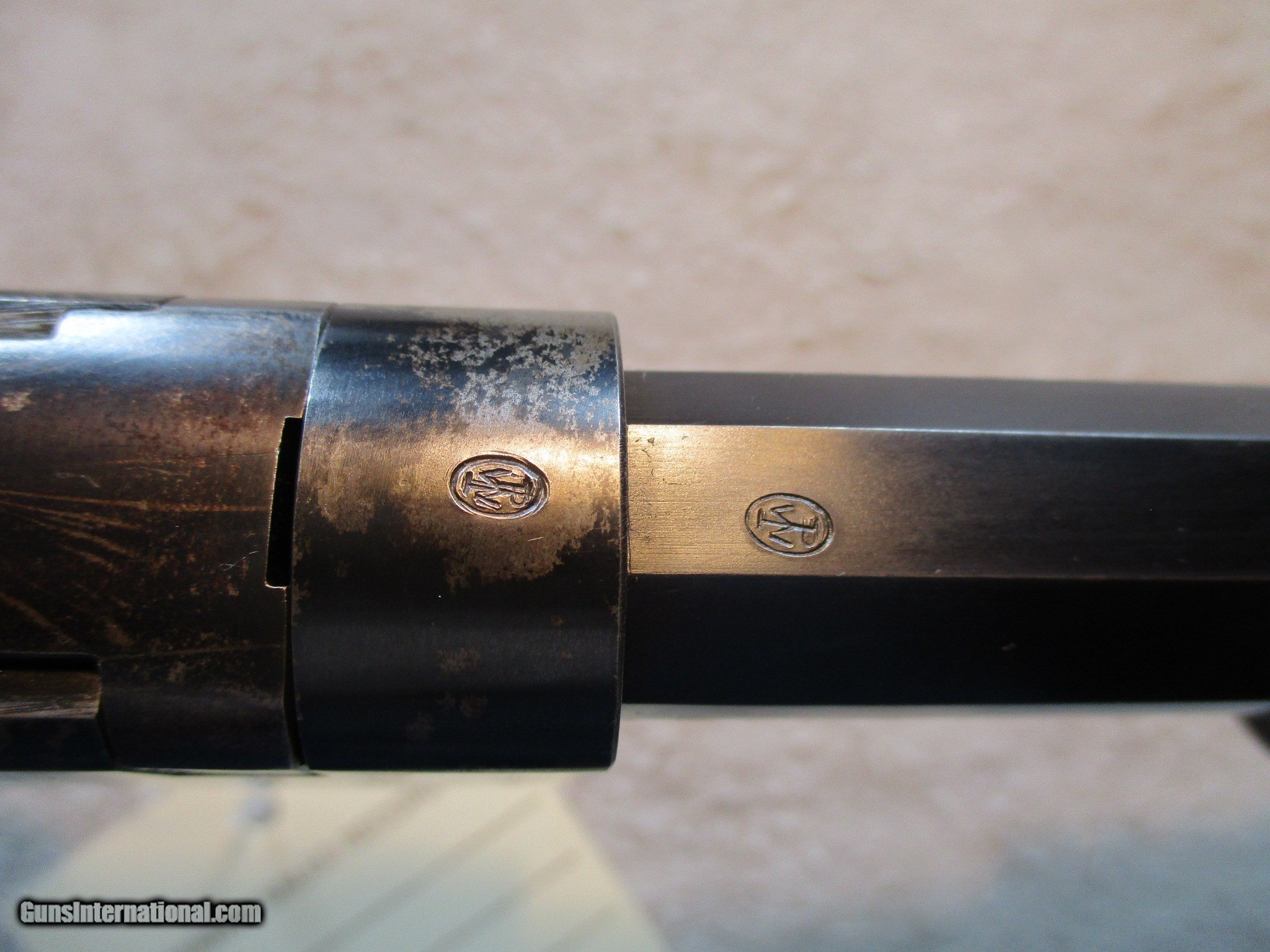 Description: Winchester 90, 22 WRF, 24" Octagon barrel. SN is 7227xx, made in 1928. Factory finish on both wood and metal, cleanest WRF I have ever had come though my shop! Perfect bore, perfect working order. We will trade for silver and gold. has now started collecting tax for states that mandate it, if applicable they will add it to your total. Email me if you would like these pictures sent to you, they will come through bigger and better than on the listing page here. We do offer Layaway. Our standard terms are 25% down, 90 days. Initial deposit is not refundable. Email me with any questions. Please check your local laws to confirm it is legal to own in your state! Buyer pays $25 shipping and insurance to your FFL in the lower 48. AK, HI or PR is extra. I will ship to California, NO PROBLEM! All my guns come with a non-firing, 3 day unconditional return privilege, from the day UPS delivers to your dealer. Buyer pays shipping both ways if the gun comes back. I can add a new hard case by PLANO for secure shipping for $25 if the buyer wishes (highly recommended, cheap insurance, really helps keep the UPS monster from eating my guns!). Guns sold in Kansas are subject to Kansas sales tax. I am a licensed FFL, and will include a copy of my FFL with the gun for your dealer’s records. I will ship to a C&R if the gun is eligible. I will ship to California, but you need to confirm the gun is legal where you are, California or other. WE BUY AND CONSIGN GUNS AND GUN COLLECTIONS! We will travel to pick up collections! I am always looking for good clean, old original Winchesters to buy, consign, or trade, especially Pre '64's model 70's and model 54's. WE ALSO TRADE FOR CLASSIC CARS AND TRUCKS! We also trade for gold and silver. SOLD Rifle Caliber: .22 WRF Manufacturer: Winchester Model: 1890 Barrel Length: 24 Condition: Used |