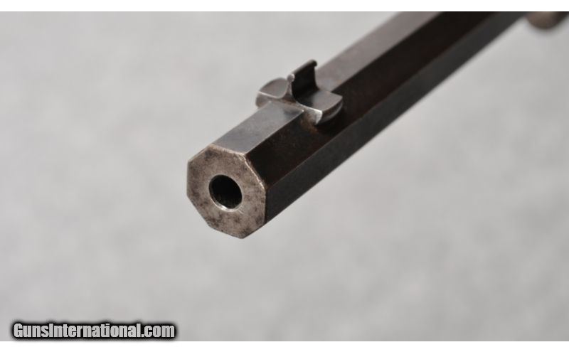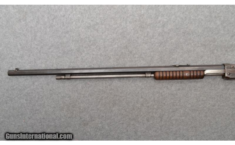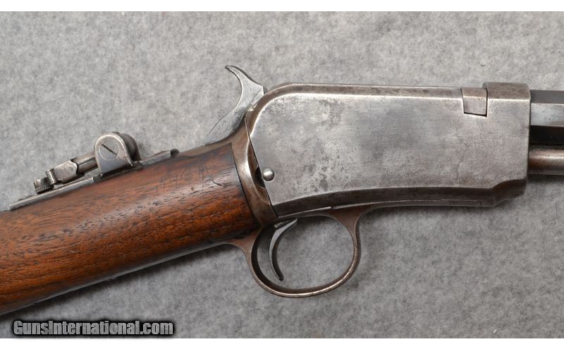 Description: Winchester model 90 in .22 Long. Twenty-four inch octagon barrel with Marbles economy tang peep sight adjustable for elevation. Also a dove tail flip up rear sight and front blade sight. The bore is bright with strong rifling. The action has turned a dull gray with some brown patina. The octagon barrel has turned mostly a dull gray with some blue finish towards the muzzle end. Stock shows some varnish wear and thinning, along with dings, dents, and scratches. The fore end has varnish wear along with some dings and scratches. SOLD Caliber Info: .22 Long Metal Condition: Action has turned a dull gray with some brown patina. The octagon barrel has turned mostly a dull gray with some blue finish towards the muzzle end. Wood Condition: Stock shows some varnish wear and thinning, along with dings, dents, and scratches. The fore end has varnish wear along with some dings and scratches. Bore Condition: Bright bore with strong rifling. Barrels: 24 inch octagon barrel. Stock: Walnut uncheckered straight hand stock. Stock Dimensions: 13 inch LOP Fore End: Walnut grooved fore end. Butt Pad: Metal crescent butt plate. Weight: 6 lbs 20 oz Sights: Marbles economy tang peep sight adjustable for elevation with dove tail flip up rear sight and front blade sight. Item Location: Mitchell, SD |