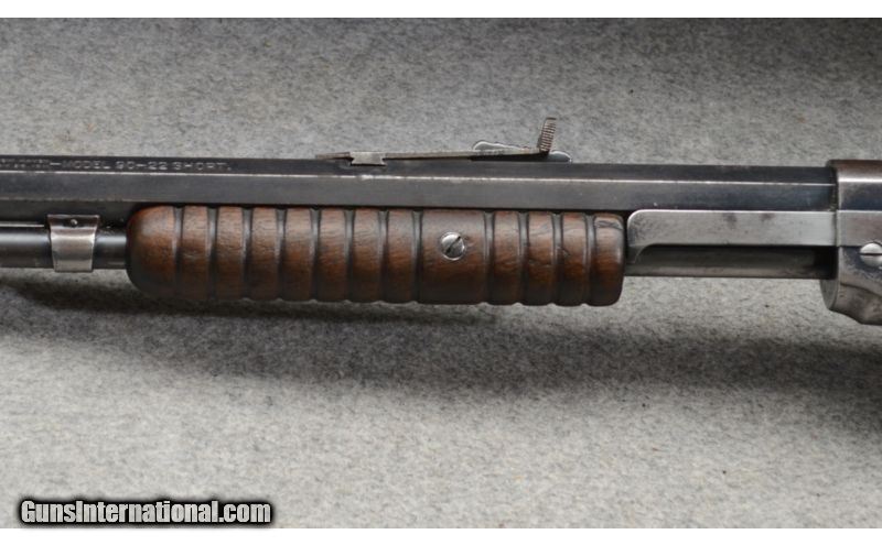 Description: SOLD Curio/Relic: Yes Manufacturer: The year of manufacture for serial number 169816 is 1903. Caliber Info: .22 Short Metal Condition: Good. The bluing is still intact everywhere but the high points. /There are quite a number of patchy rust spots on the bbl as well as some shallow scratches and pits on the receiver. Wood Condition: Stock os good, has been sanded flush with the metal. Forearm is fair to good with a number of scratches and digs, some meddium deep. Bore Condition: Bright and shiny with enough rifling Barrels: 24 inch octagonal barrel Stock: Straight grip walnut Stock Dimensions: 12 -3/4 Inch LOP Fore End: Grooved walnut Butt Pad: Curved steel plate Weight: 5 lbs - 14 oz Sights: Brass blade, buckhorn notch, and tang peep "iron" sights Item Location: Rogers,, MN |