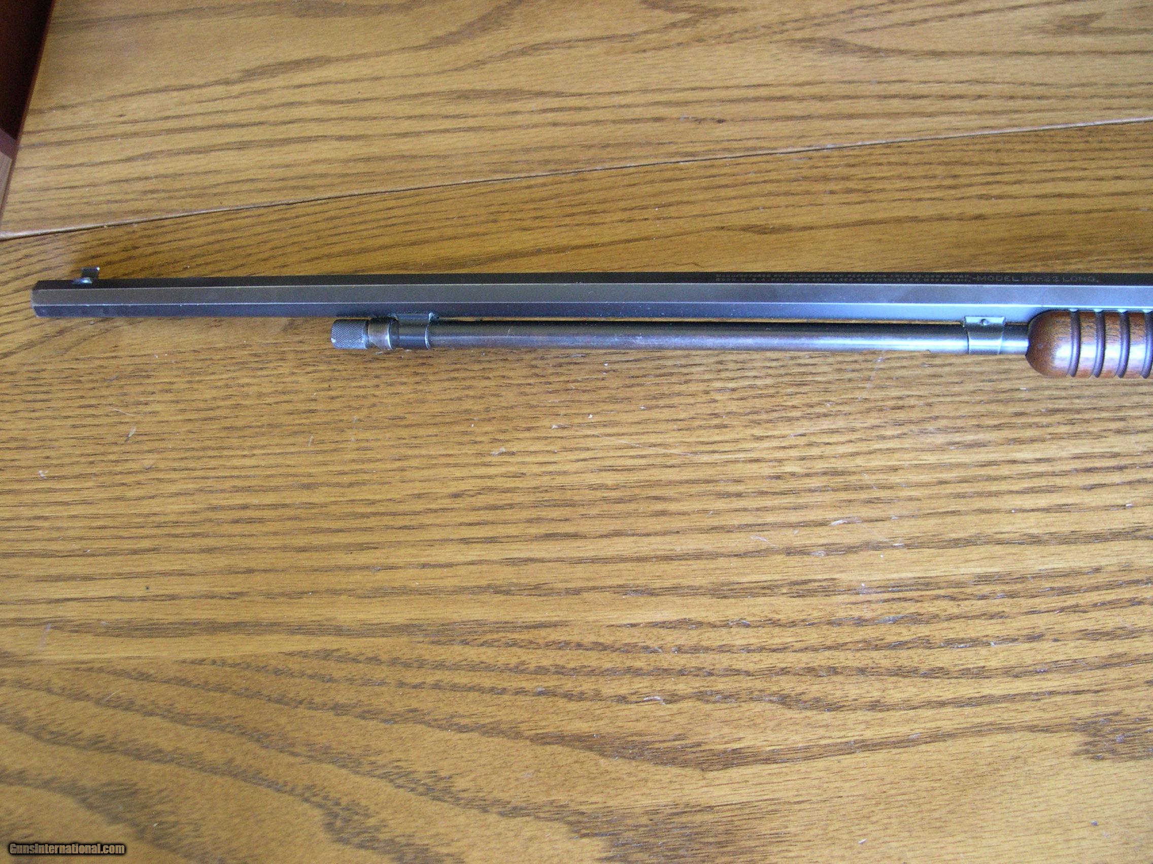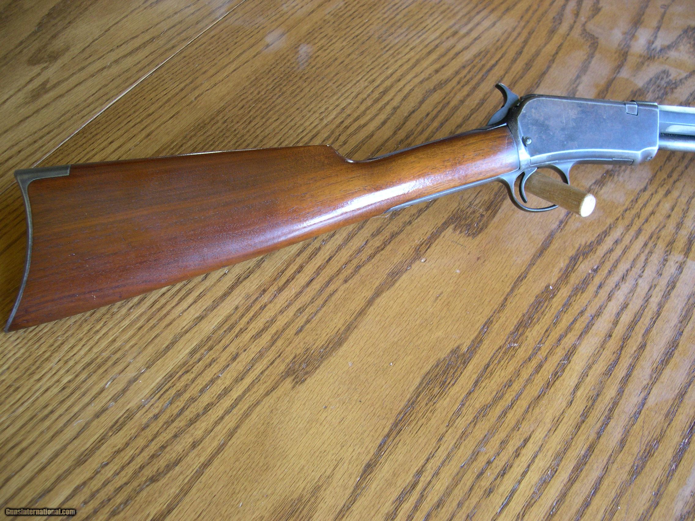 Description: Made in 1925, with VG shiny bore with some wear, Nickel steel receiver shows 50% blue due to Flaking, Barrel & mag tube blue is 95%, wood is Exc Plus with 98% original varnish, original factory sights , buttplate is Patina with no marks on it. A real nice above average 1890 that you can still take out and hunt with, at a great price. Free shipping with this rifle. SOLD |