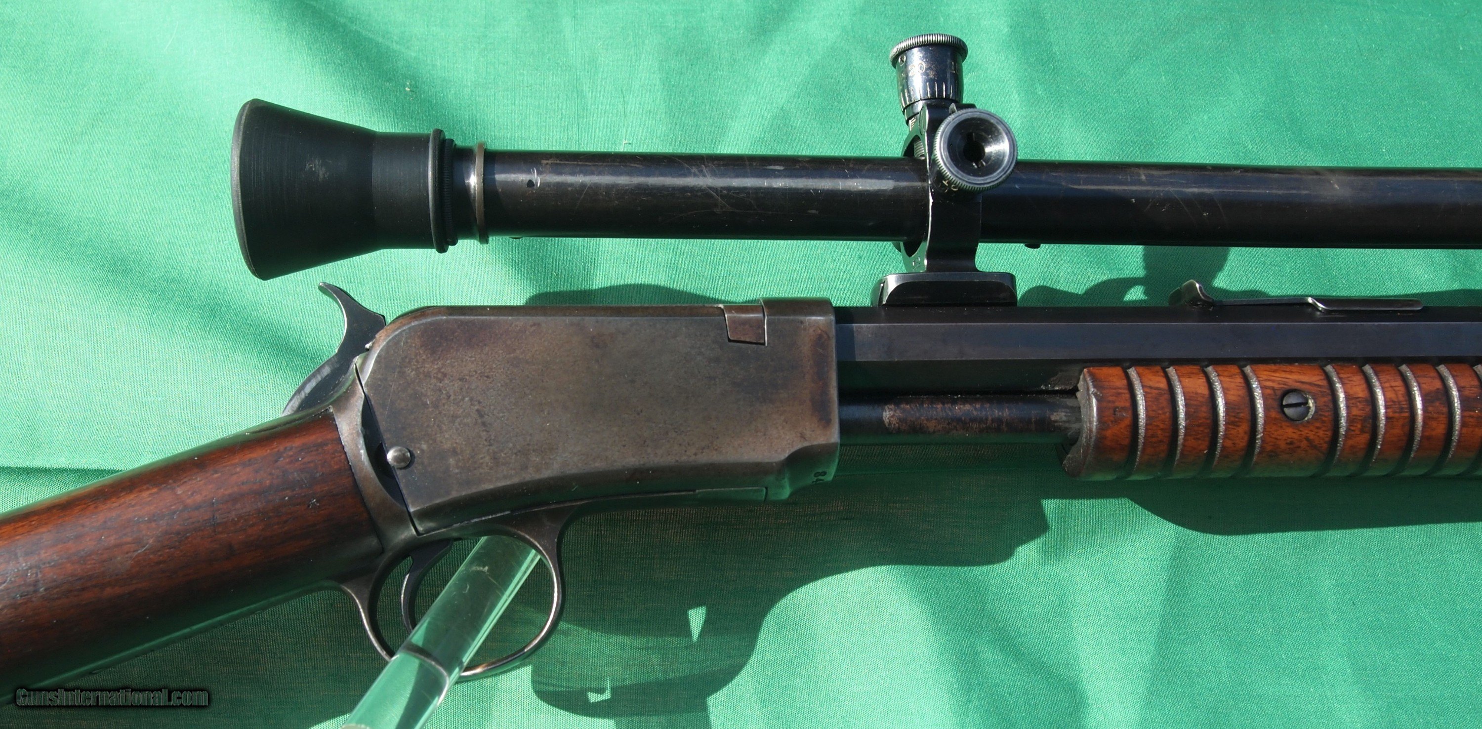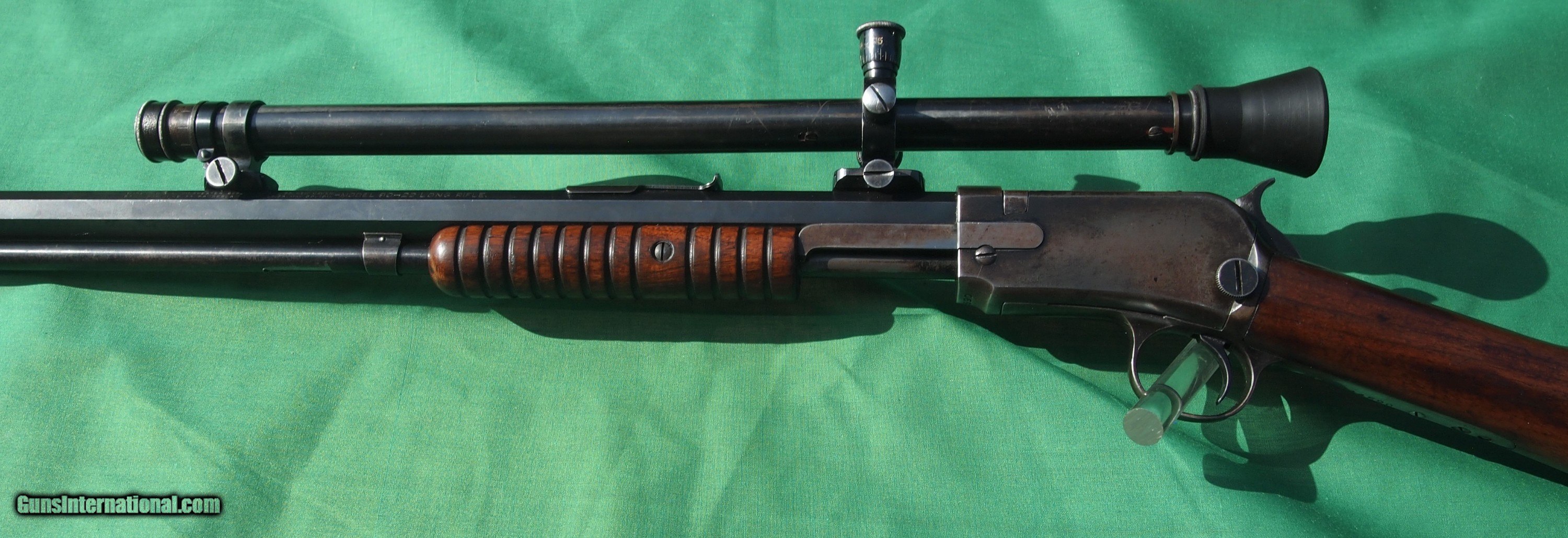 Description: PRICED REDUCED WAS $2100 REDUCED TO $1850 ! "END OF THE TRAIL " THE HIGHEST SERIAL NUMBER RECORDED IS 849100 . GEORGE WATROUS A WINCHESTER EMPLOY COUNTED PRODUCTION AT 754215 IN 1944 WHEN HE MADE THE COUNT . AFTER THE NUMBERS WERE RANDOMLY ASSIGNED 752044. THIS RIFLE COMES WITH A WINCHESTER A 5 SCOPE. THIS SCOPE WAS SENT OUT TO PARSONS SCOPE SERVICE FOR A TOTAL OPTIC RESTORATION! MAKING THIS 1890 IN 22 LONG RIFLE A REAL "TACK DRIVER"! IF YOUR A SHOOTER YOU WILL LOVE THIS RIFLE AND IT'S HARMONICS! SCOPE COMES WITH A EARLY STYLE RUBBER EYE CUP. EVEN THE SCREW HEADS ARE PERFECT SEE MY SCANS. THIS MODEL 1890 IS A END OF A VERY HISTORIC TRIAL OF A BROWNING DESIGN AND PART OFJOHN BROWNING AND WINCHESTER HISTORY .WOULD BE A HISTORIC PART FOR A FIRST TIME BUYER OR A GREAT ADDITION TO THE COLLECTOR ! THESE MODEL 1890s ARE HARD TO FIND IN 22 LONG RIFLE; THEY WERE THE LEAST MADE OF ALL THE 22s . MY ASKING PRICE /BUY IT NOW IS $1850.00 . INCLUDES S&H LOWER 48 STATES ONLY NO OVERSEAS SALE DON'T EVEN ASK ! NO SALE TO CA. OR NEW YORK! PLEASE CONTACT ME FOR ANY QUESTION BEFORE YOU MAKE A PERCHES GOOD LUCK AND DO NOT PASS THIS ONE UP WHEN WAS THE LAST TIME YOU SAW A 1890 WITH THIS HIGH A SERIAL NUMBER AND WITH A WINCHESTER A 5 SCOPEAND REFURBISHED BY PARSONS SCOPE SERVICE GLASS AND CROSS HAIRS ARE LIKE NEW! LASTLY TO MY KNOWLEDGE THIS RIFLE HAS NEVER BEEN RESTORTED OR REFINISHED 100% ORIGINAL! SOLD Curio/Relic: Yes Rifle Caliber: .22 Long Rifle Manufacturer: WINCHESTER Model: 1890 Serial Number: 844590 ONE OF THE LAST 1890s Bore: No pitting or frosting shines like new! Chambers: 1 Ejectors: 1 Condition: EXCELLENT WORKING CONDITION Metal Condition: 75 TO 80% very good ! see scans Wood Condition: 90 % no cracks or chips see my scans Bore Condition: near mint Barrels: 1 Barrel Type: OCTAGON Action: pump Triggers: 1 Stock: WOOD WALNUT Stock Heel: steel Finish: BLUED Weight: 9 LBS Manufacture Date: N/A Extras: SCOPE & EYE CUP Item Location: Maryland |