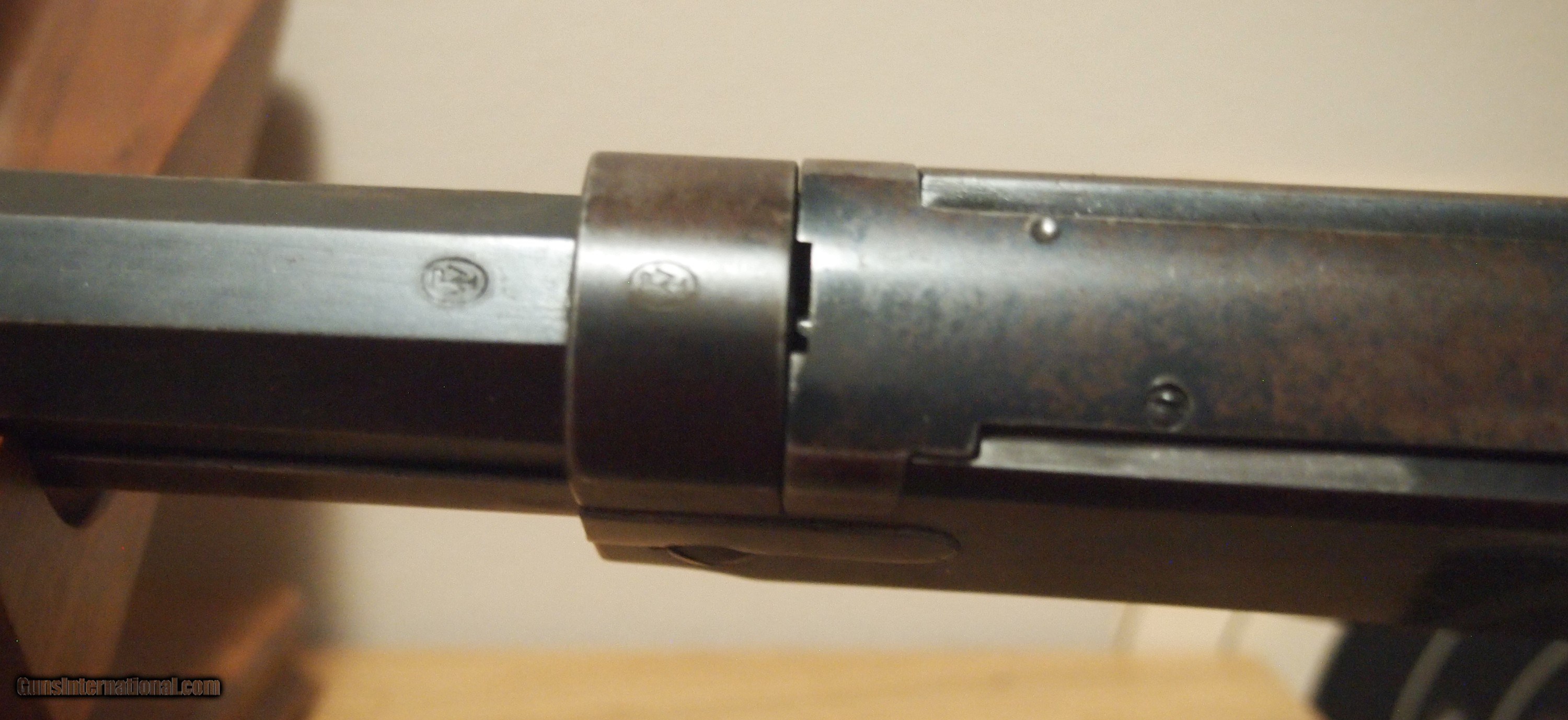 Description: PRICE REDUCED AGAIN END OF SUMMER $1,250.00 !!! Very good ++ near excellemt condition, near mint bore, the harmonics are amazing on this rifle; making it one great target rifle. Areas of thining are mostly on the magazine tube.(SEE MY SCANS very good wood) .Original condition never restored , NEAR END OF PRODUCTION; WITH A VERY RARE GROVED HAMMER!.Some flaking to the receieiver crisp markings.matching numbers 802741 Manufattured "PARTS CLEAN UP RIFLE '' . Free S& H LOwer 48 States except New York and Caifornia. Payment, Postal Money Order , or personal check , then the rifle will be shiped once check clears.buy i t now price is $1,250.00 FEEL FREE TO E MAIL ME FOR ANY QUESTIONS YOU MAY HAVE BEFORE YOU PURCHASE. The rifle must go to a FFL holder ! No over seas sales. $1,250.00 If you are looking to acquire all the variations of the Model 1890, this would be a good candidate for the parts cleanup variety. I note on this very late 1890 Winchester serial number is 802741 making it a true "parts clean up rifle " meaning this number means " These guns WERE assembled by Winchester. In 1933, from Feb. to June, leftover parts were used to make up these guns. Some were assembled this way as late as 1941. These ARE true Winchester assembled guns." If your Lucky enough to purchase my rifle you would own a true end of a era ! SOLD Curio/Relic: Yes Rifle Caliber: .22 WRF Manufacturer: WINCHESTER Model: 1890 Serial Number: 802741 Barrel Length: 24 Condition: VERY GOOD + Metal Condition: EXCELENT Wood Condition: VERY FINE Bore Condition: MINT- |