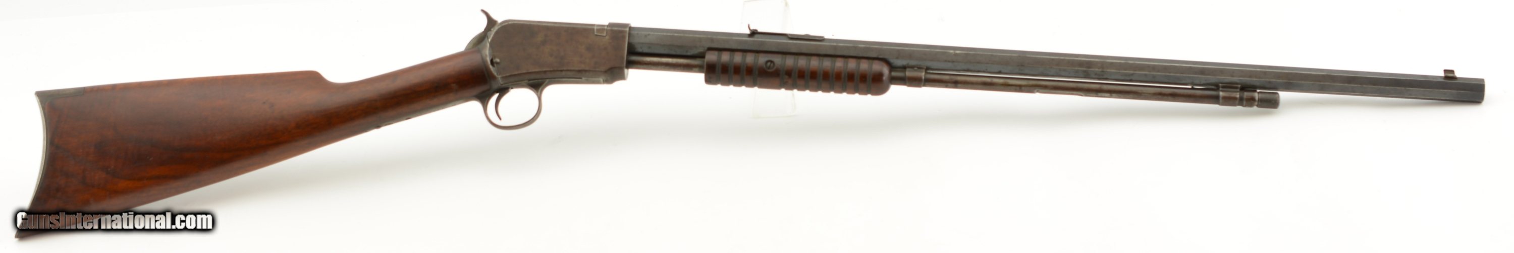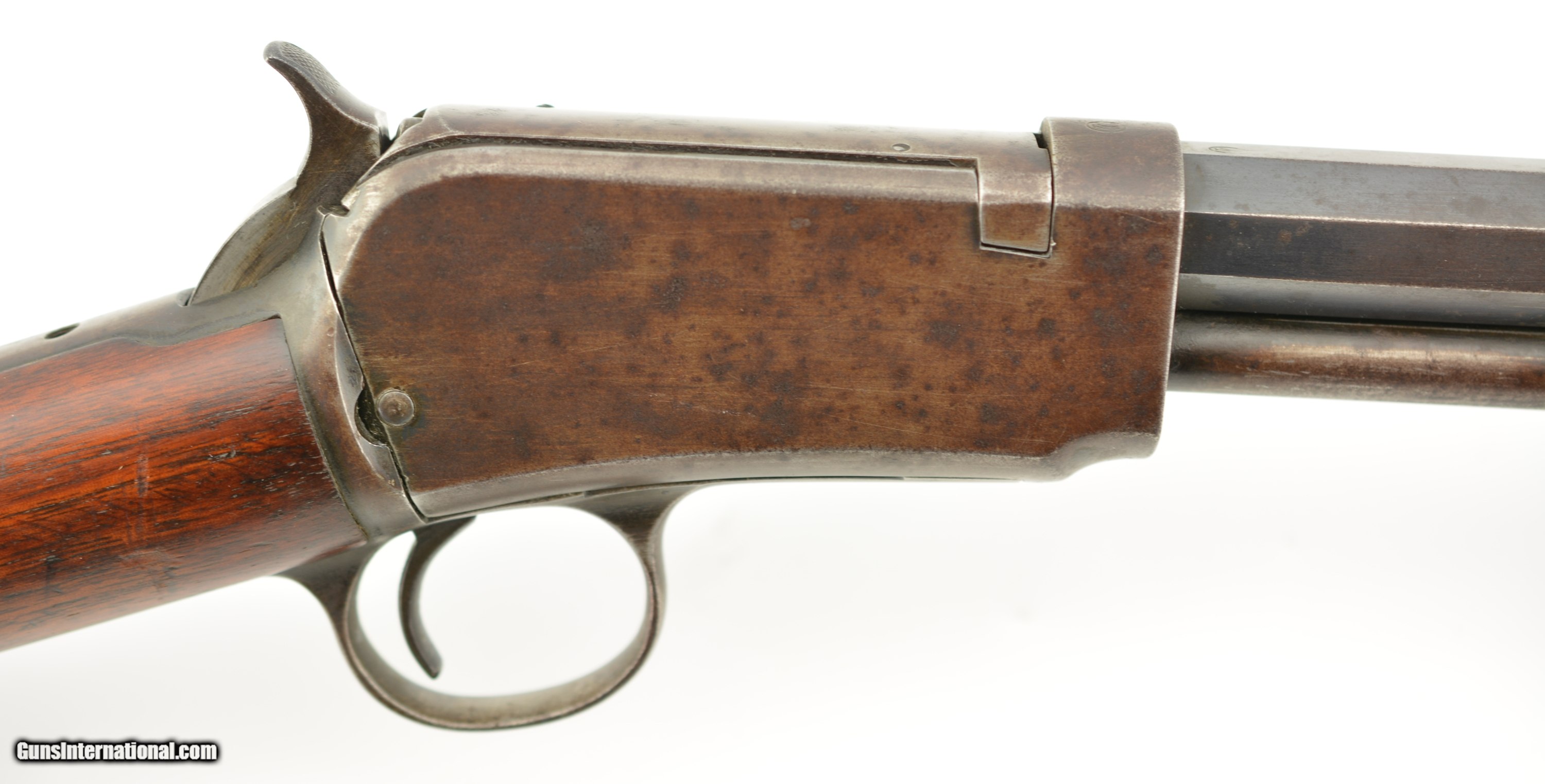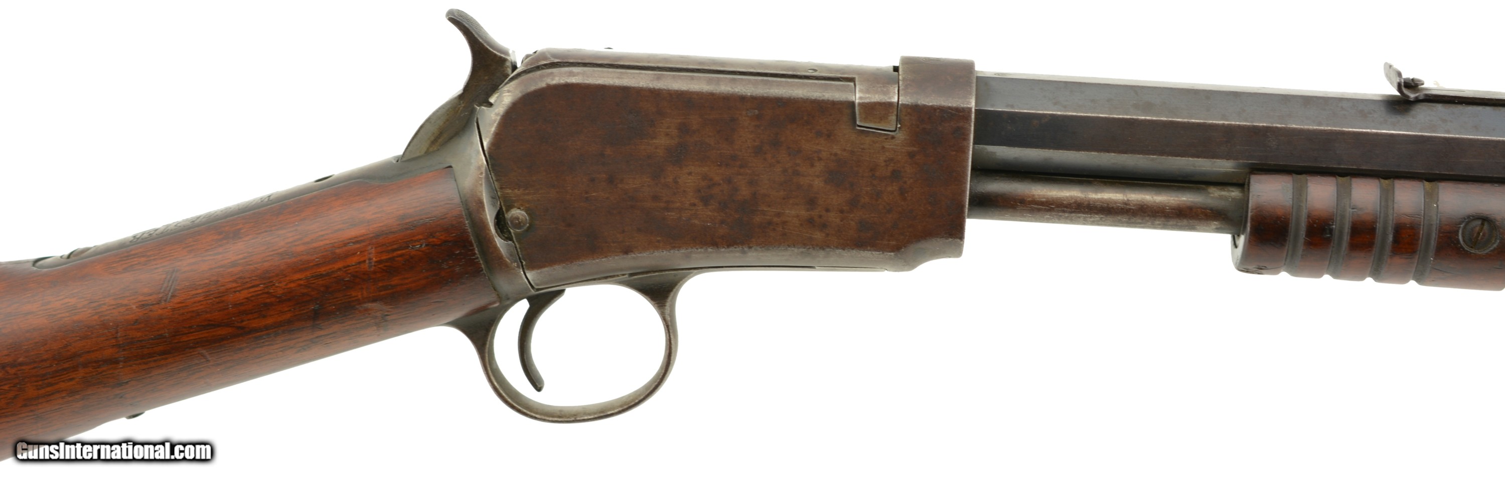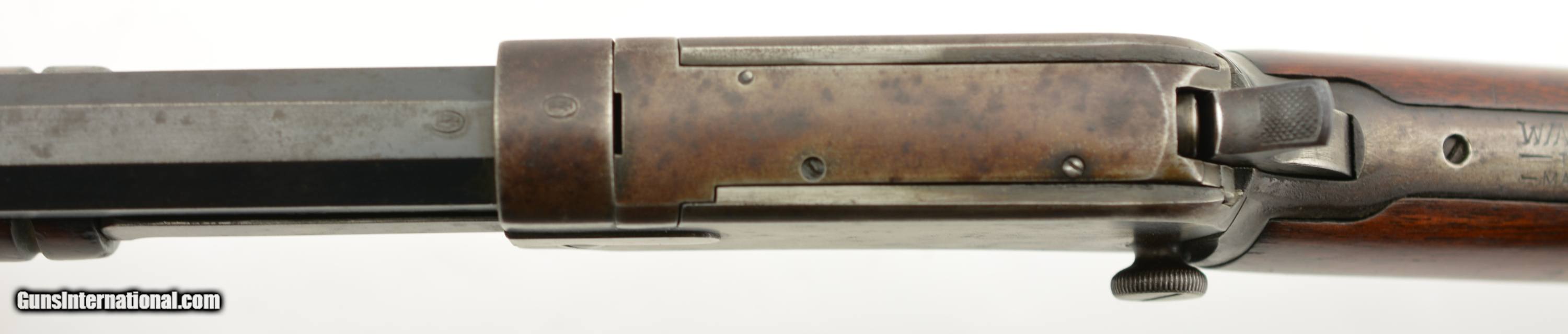 Description: Serial #771895, .22 WRF, 24" octagon barrel with an excellent, bright bore. This is a 3rd Model rifle that has retained about 50-60% of the original blue on the barrel, with the balance having faded to a mellow plum-brown color, and silvering along the edges of the barrel facets. The frame has a more ruddy brown patina with patches of thin surface freckling scattered about, and mottled gray metal is present on the wrist tangs. The grooved walnut forend is in fine shape, with some minor handling marks in the original oil finish. The buttstock has some further handling marks and surface blemishes on either side, as well as a single hairline drying crack running back from the tip of the bottom tang. This is a very nice example of a late production Model 90, in very good condition, and would make a good representative example for a collection. FFL or C&R SOLD Manufacturer: Winchester Model: 90 Serial Number: 771895 Caliber Info: .22 Gauge Info: .22 |