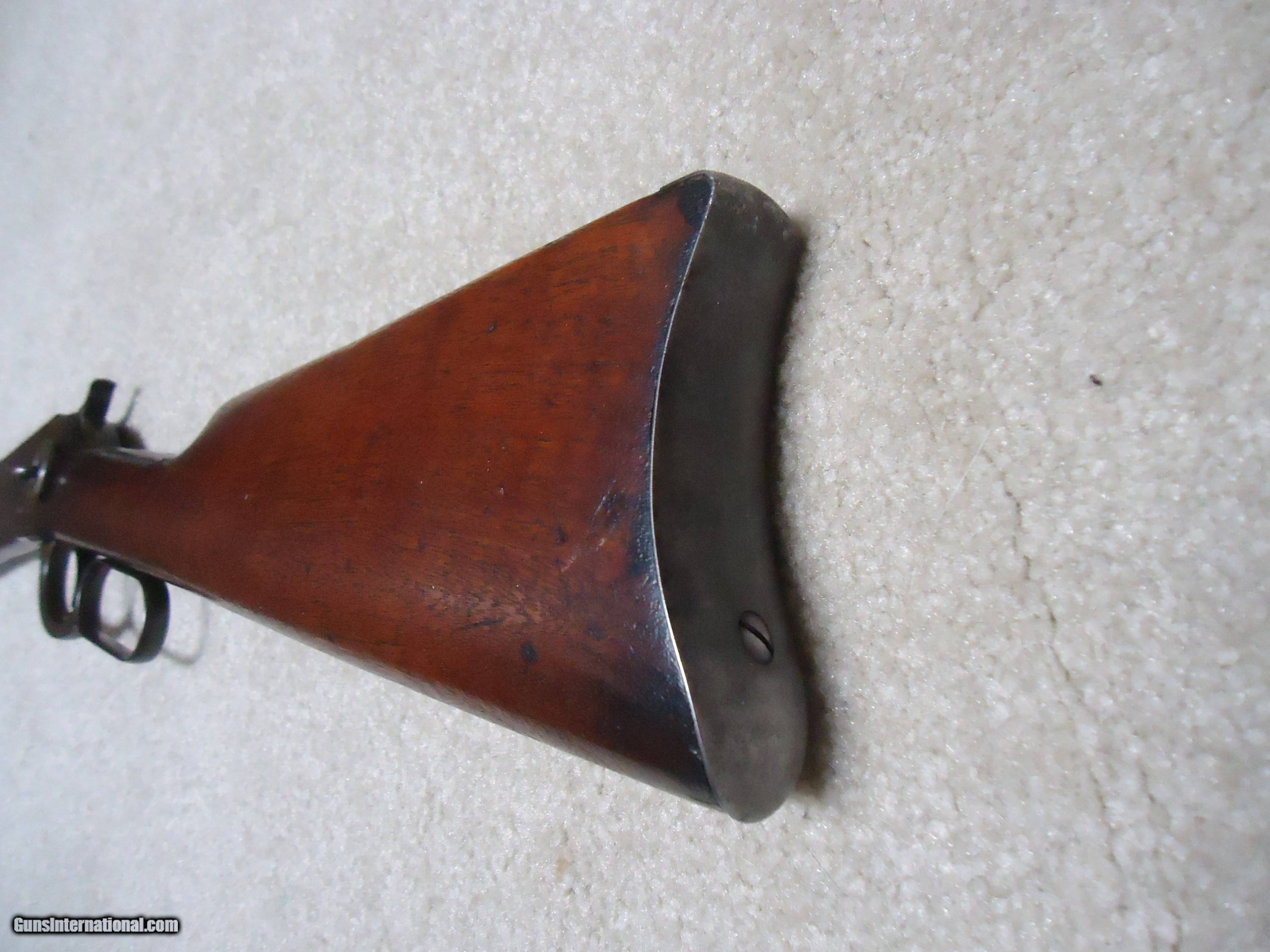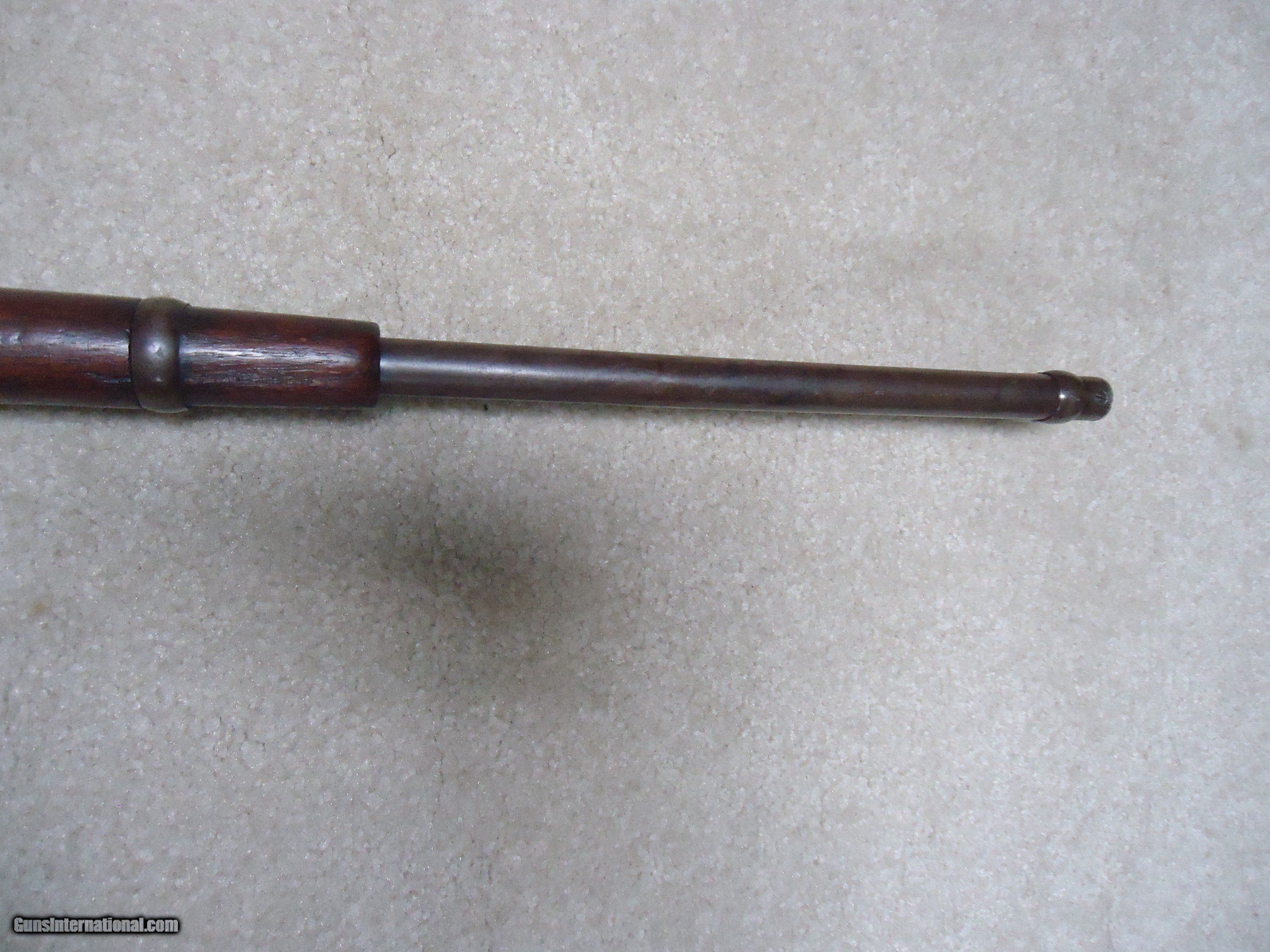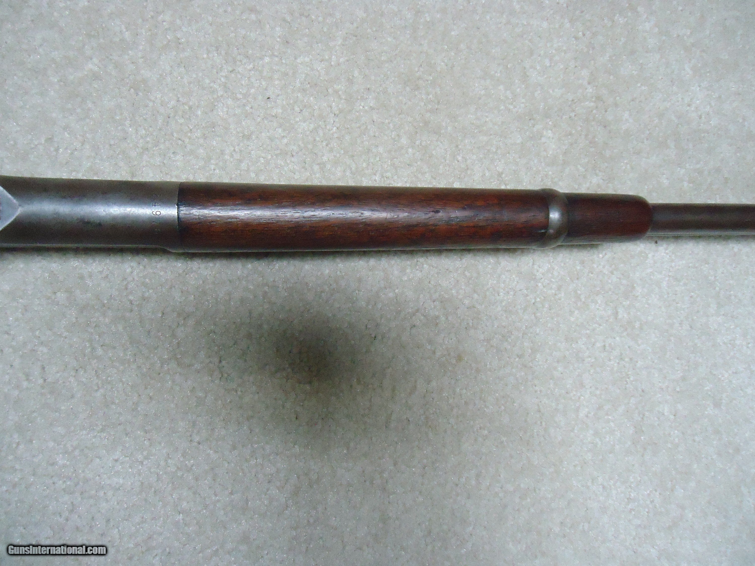 Description: EARLY, ANTIQUE 1892 .44-40 SADDLE RING CARBINE, #24XXX, MADE 1894. Very difficult to find Pre-1899 antique carbine especially in .44-40 caliber. This one also has a fairly bright excellent bore that if not perfect is close! Barrel and magazine are an aged gray/brown. Barrel has the carbine ladder sight with slide intact (probably a replacement) and exc. barrel markings. The receiver is similarly aged to mostly brown with good blue on the loading gate, on the bolt and in the most protected areas of the receiver. Fine walnut butt stock and forend with some better than standard figure in the stock. Tight action with solid safety half-cock. Exc. screw heads with one receiver screw on the left side replaced. Really hard to find. SOLD Antique: Yes Rifle Caliber: .44-40 Winchester Manufacturer: WINCHESTER Model: 1892 CARBINE Serial Number: 24XXX Barrel Length: 20 Condition: VG Bore Condition: EXCELLENT |