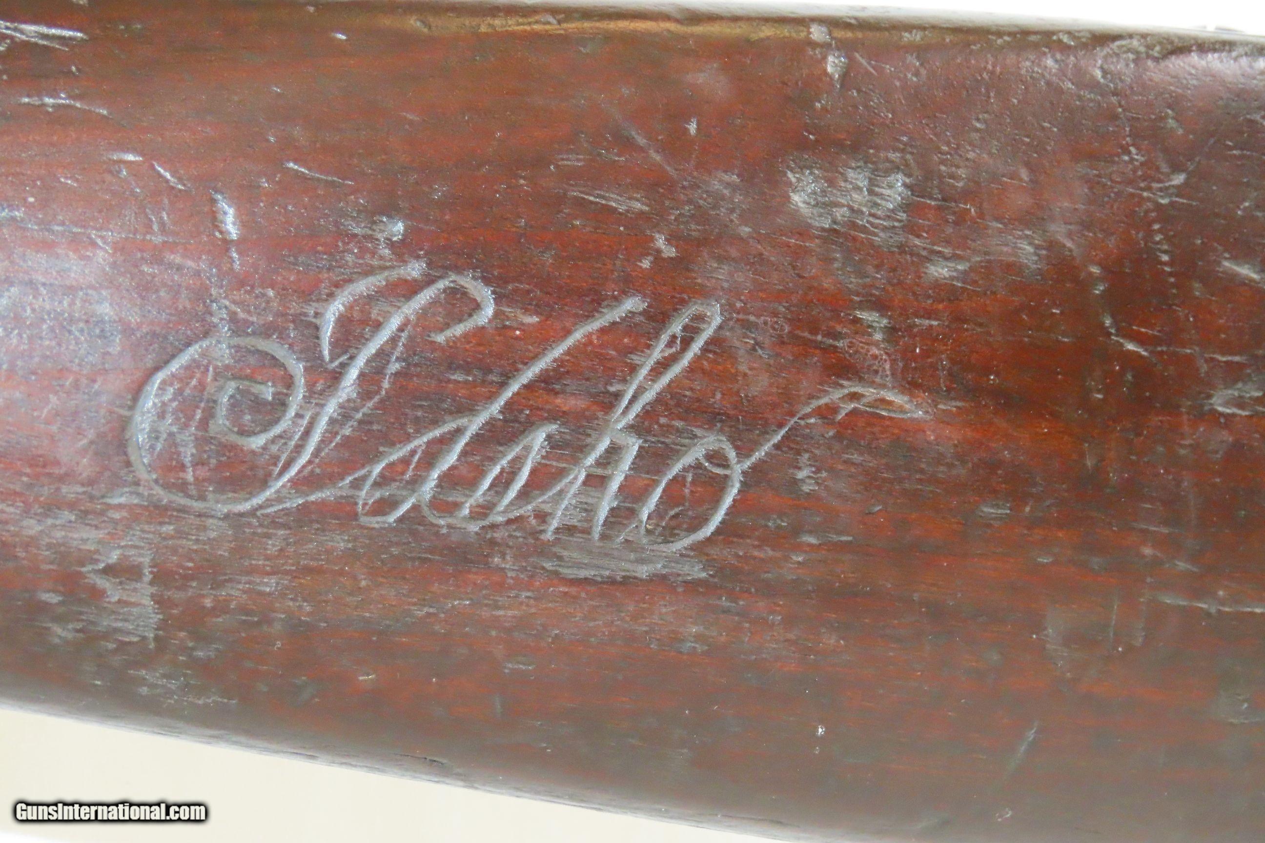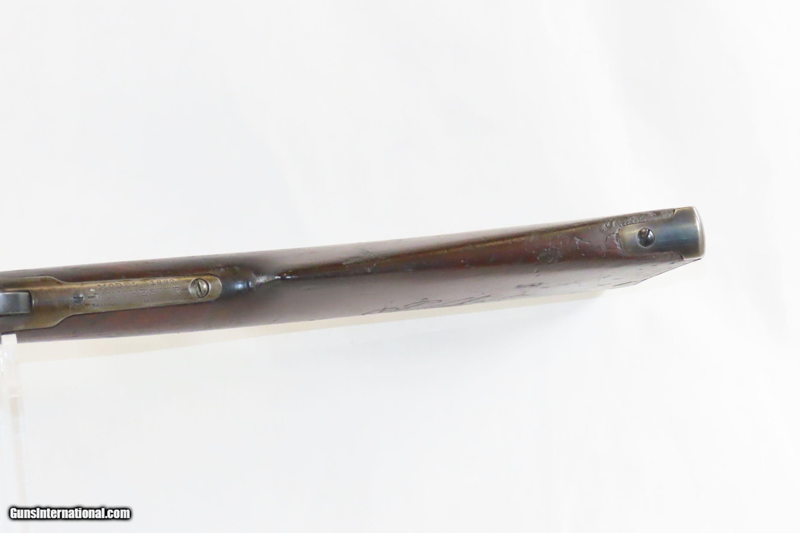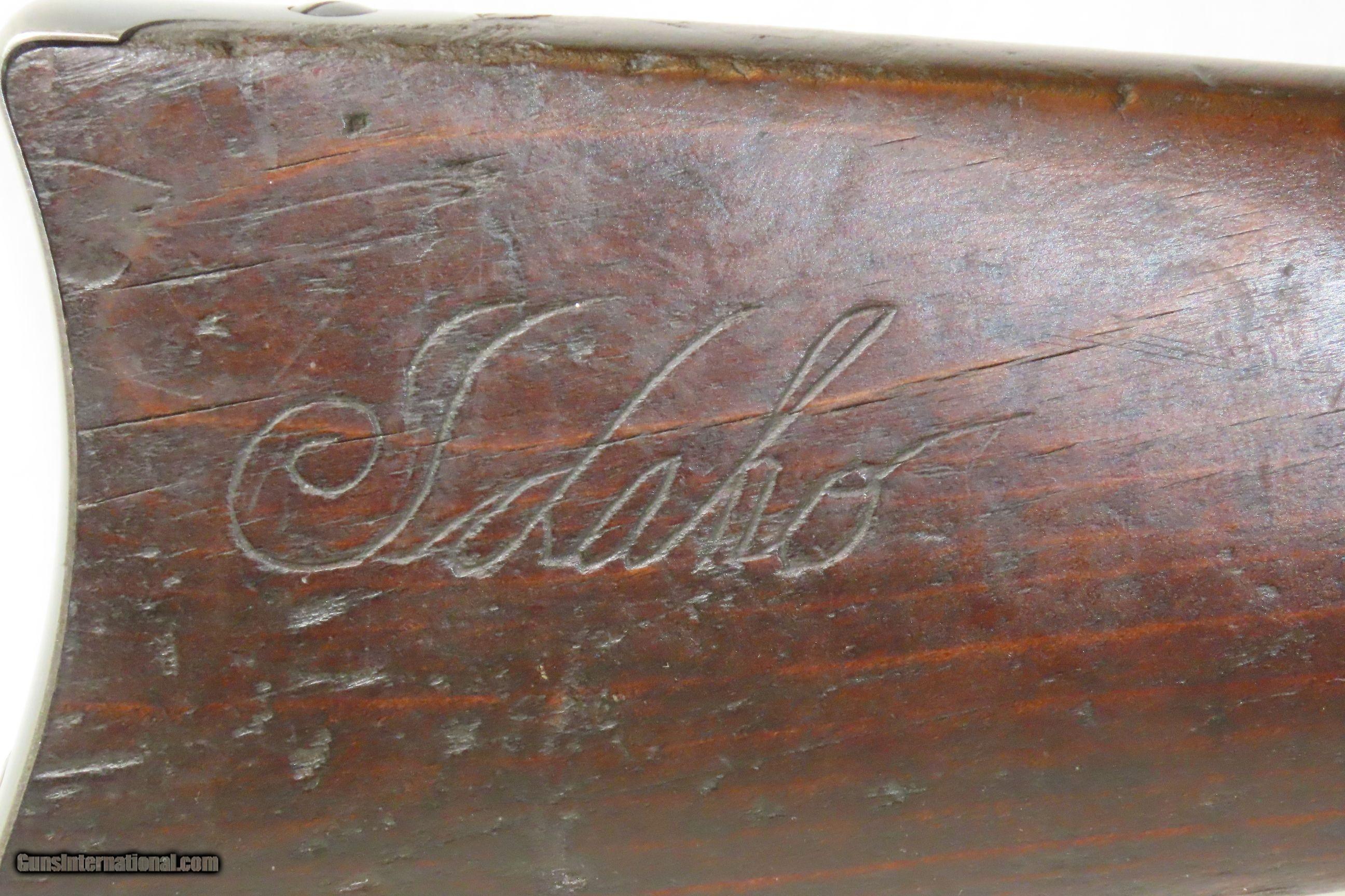 Description: “IDAHO” WINCHESTER Model 1892 Lever Action .25-20 WCF Saddle Ring CARBINE Made in 1916 C&R with Carved Stock Here we present a C&R Winchester Model 1892 Lever Action Saddle Ring Carbine chambered in .25-20 WCF, made in 1916 in New Haven, Connecticut. This one has “Idaho” carven by hand in script on either side of the butt stock, giving this one some additional character and making one wonder who once carried this rifle. Another fantastic design from the mind of John Moses Browning, the 1892 was made to replace the venerable and iconic 1873 and featured its pistol caliber chamberings. The result was a trim and light rifle that was an immediate hit and stayed in production from1892 through 1938 and produced upwards to 1,000,000 rifles. Carbines such as this one continued production through 1941. The Model 1892 was first chambered in .44-40 cartridges, and in 1895 the 25-20 emerged. Many gun owners favored Winchester rifles for their ability to fire the same ammunition as their pistols, meaning that a cowboy, trapper or stagecoach defender could take along his trusty rifle and pistol sidearm with only one supply of ammo! The Model 1892, like many other Winchester rifles, were popular when the television show “The Rifleman” premiered in 1958 starring Chuck Connors and producers tried to find gimmicks to distinguish one show from another. The Rifleman's gimmick was a modified Winchester Model 1892 rifle, with a large ring lever drilled and tapped for a set screw. The lever design allowed him to cock the rifle by spinning it around his hand. In addition, the screw could be positioned to depress the trigger every time he worked the lever, allowing for rapid fire, emptying the magazine in under five seconds during the opening credits. The overall condition is near fine. Original finish. The action is wonderfully crisp. Bright, nicely rifled bore. Some small dents in the magazine tube. “IDAHO” is hand inscribed on both side of the buttstock. Overall the stock is solid with average wear. A neat piece in a great cartridge! This firearm is classified as a Curio & Relic. Barrel is 20 inches. Caliber: .25-20 Winchester Center Fire Overall condition as seen in photos. Very Fast. Very Safe. FREE SHIPPING. Will need to be sent to your local FFL or C&R licensee. This firearm is classified as a Curio & Relic. Guaranteed AUTHENTIC & Includes CERTIFICATE OF AUTHENTICITY. ancestryguns $2500 #227788 SOLD Curio/Relic: Yes |