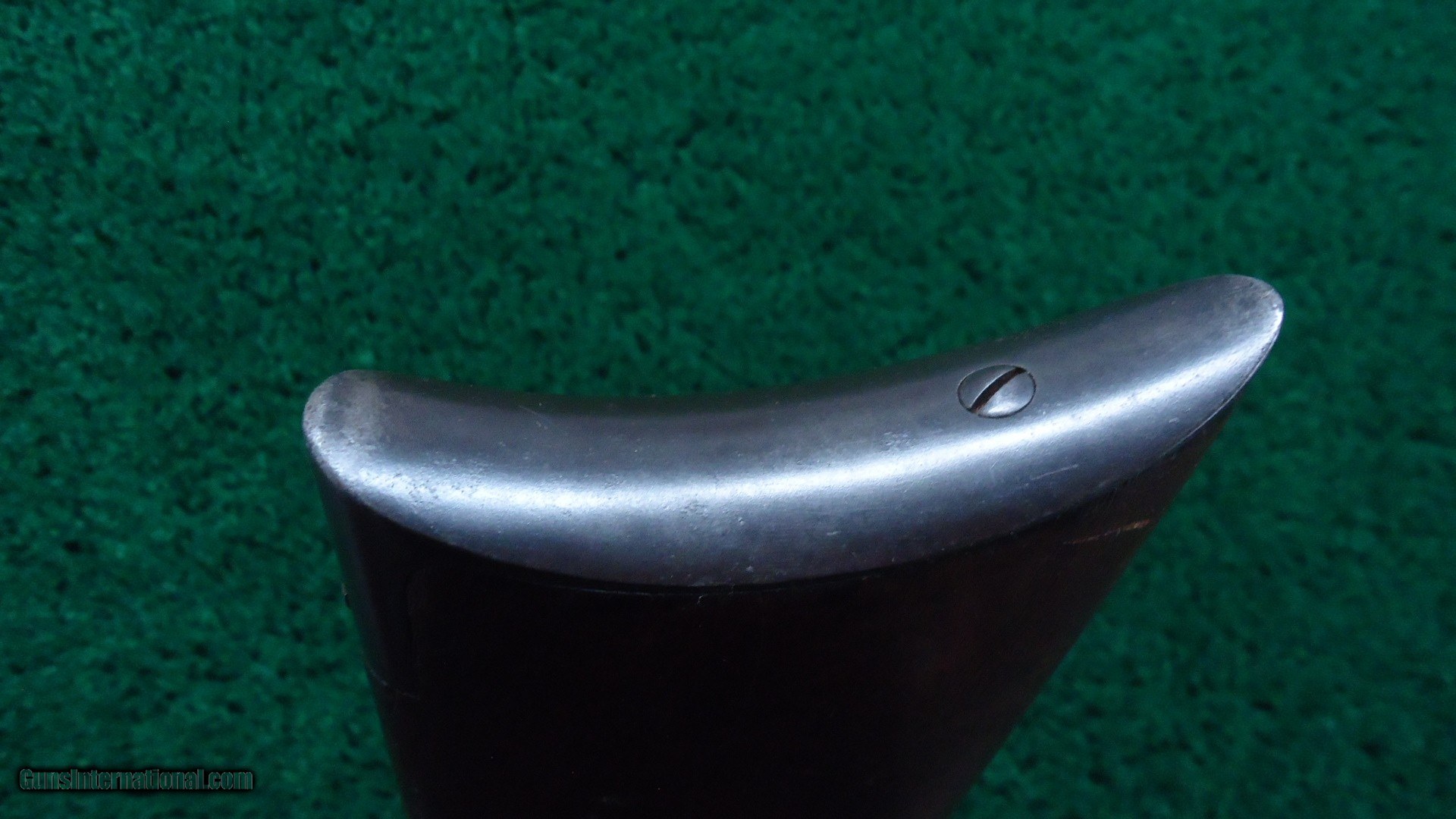 Description: 24 inch octagon barrel chambered in 38 WCF caliber with full length magazine tube. Good bore with scattered light roughness and good rifling. German silver blade front sight and sporting rear. Metal surfaces have turned mostly a plum/brown with the frame being more gray/brown. Crisp tight action. Walnut stocks are in good condition with handling mars and dings throughout. Forearm has a little extra figure to it. A good old Winchester made in 1897 that should make for a good shooter. Leroy Merz Antique Firearms specializes in antique and vintage Winchesters and other fine American firearms. Since 1965 Mr. Merz has taken part in the world of firearms and has been a contributor to many well known reference books. We have hundreds of additional guns in every price range at our home online. Search for Merz Antiques in google. SOLD Antique: Yes Rifle Caliber: .38-40 Winchester |