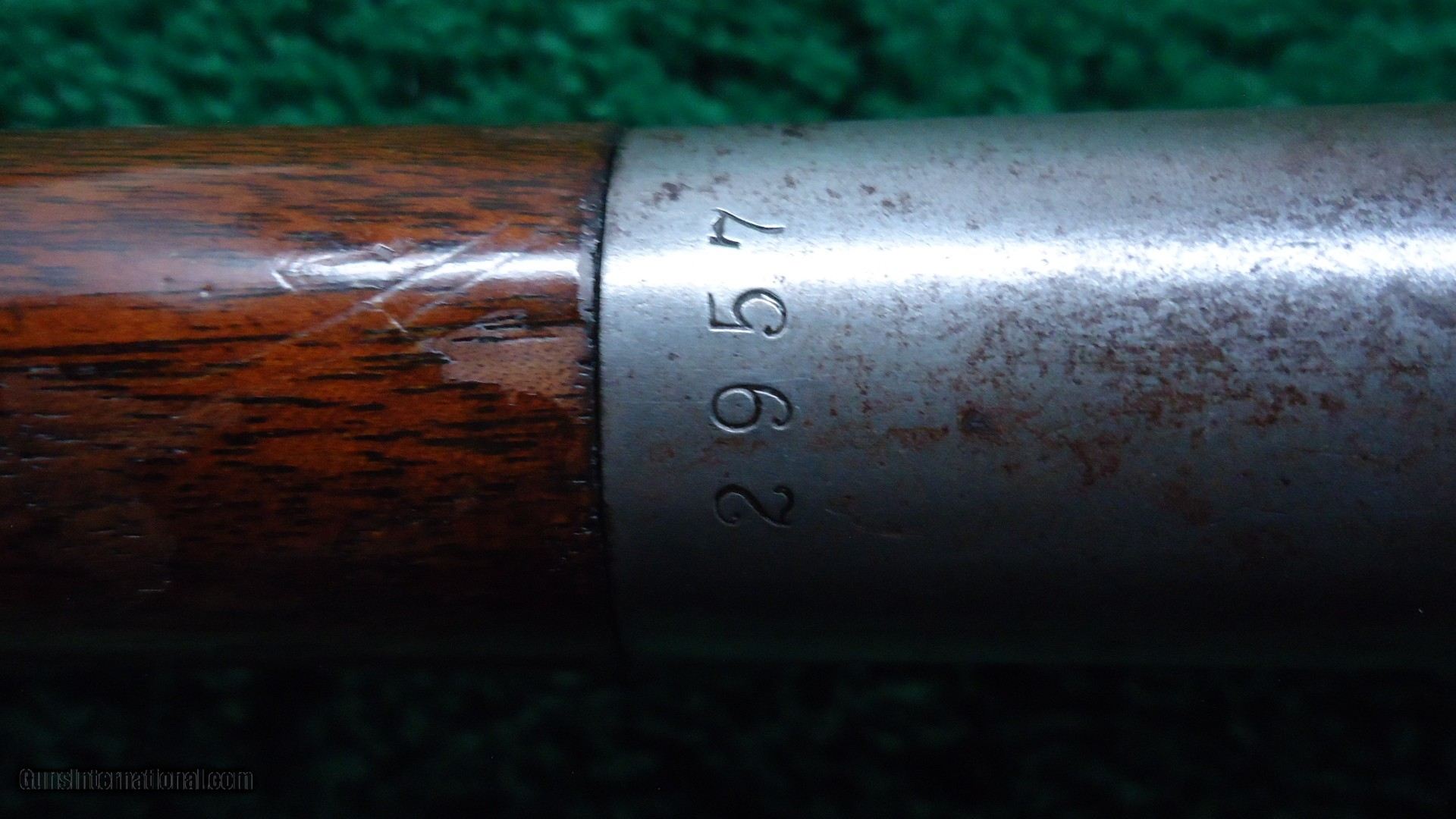 Description: First year production Model 1892 rifle with 24 inch round barrel chambered in 32 WCF caliber with a bright shiny bore with a few scattered spots of light roughness but strong rifling. Full length magazine tube and crescent rifle style buttplate. Sights include a Beech combination front with a sporting rear and a long range graduated aperture tang sight. Barrel and mag tube retain over 80% blue while the receiver has about 60% original blue with some edge wear to the high points. Traces of case color remain on the hammer and lever. The barrel and receiver are both stamped with the Winchester proof marks indicating that the rifle went back to the factory at some point after 1905. A good looking rifle with smooth action and upgraded sights should make a fine shooter. Leroy Merz Antique Firearms specializes in antique and vintage Winchesters and other fine American firearms. Since 1965 Mr. Merz has taken part in the world of firearms and has been a contributor to many well known reference books. We have hundreds of additional guns in every price range at our home online. Search for Merz Antiques in google. SOLD Antique: Yes Rifle Caliber: .32-20 Winchester |