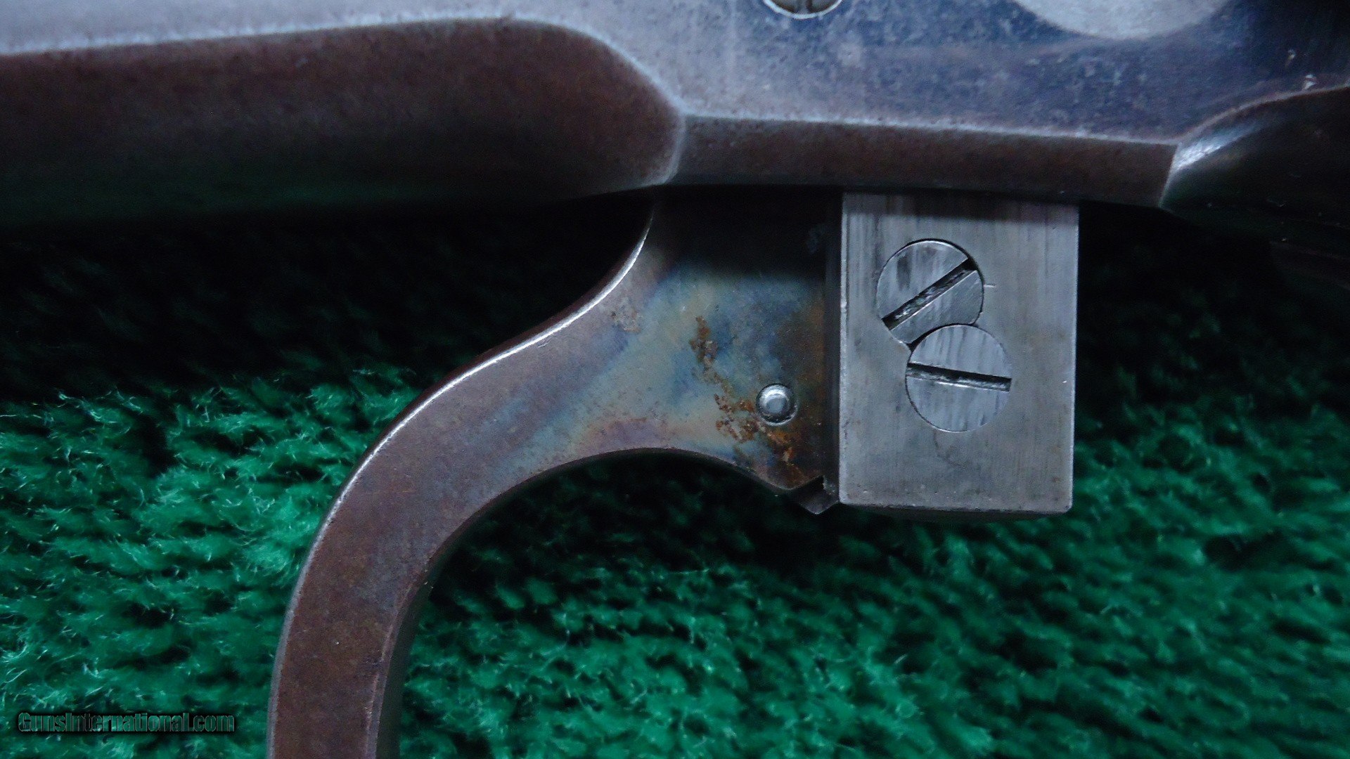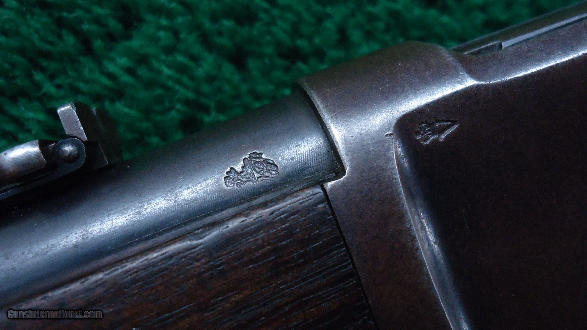 Description: 20 inch barrel chambered in the desirable 44 WCF caliber with an excellent bore that is bright and shiny with sound rifling. Full length magazine. Barrel and magazine show about 70% finish starting to tone brown with wear and handling marks. Sights include a replacement nickel silver pinned blade on the front and a folding ladder on the rear. Receiver shows about 60% finish with more blue on the flats and in protected areas with the balance a plum brown. Lever shows remnants of case coloring. Walnut stocks are solid and full fitting with only light handling marks. Carbine butt plate. It has London proof marks on the barrel, receiver and bolt. Manufactured in 1902. A good looking SRC in a desirable caliber. Leroy Merz Antique Firearms specializes in antique and vintage Winchesters and other fine American firearms. Since 1965 Mr. Merz has taken part in the world of firearms and has been a contributor to many well known reference books. We have hundreds of additional guns in every price range at our home online. Search for Merz Antiques in google. SOLD Curio/Relic: Yes Rifle Caliber: .44-40 Winchester |