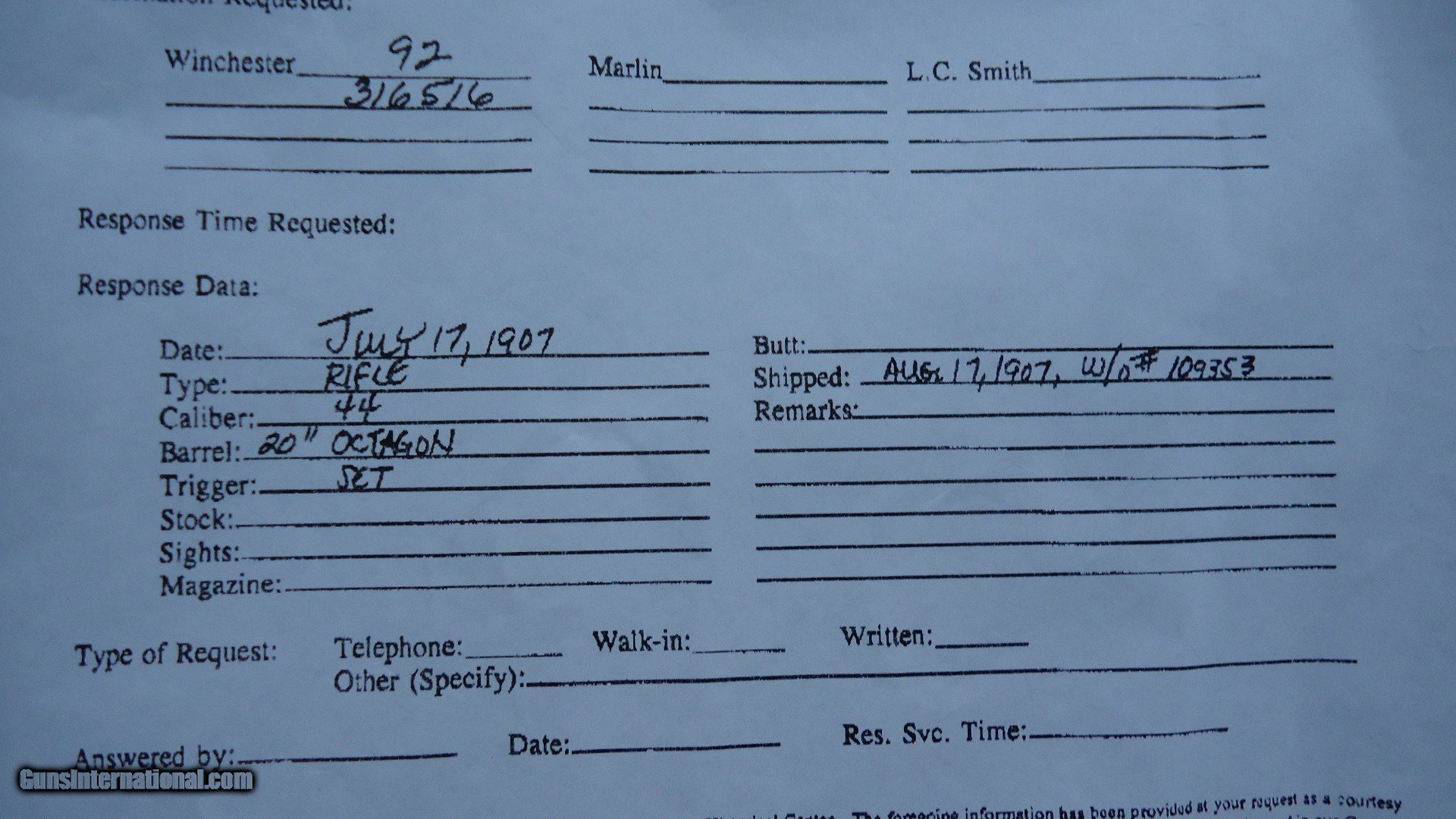 *Sale Pending* - WINCHESTER MODEL 1892 SPECIAL ORDER SHORT RIFLE IN CALIBER 44