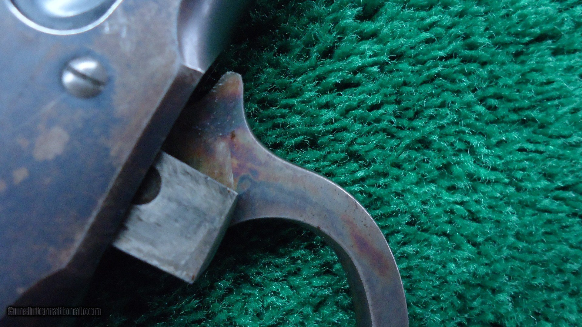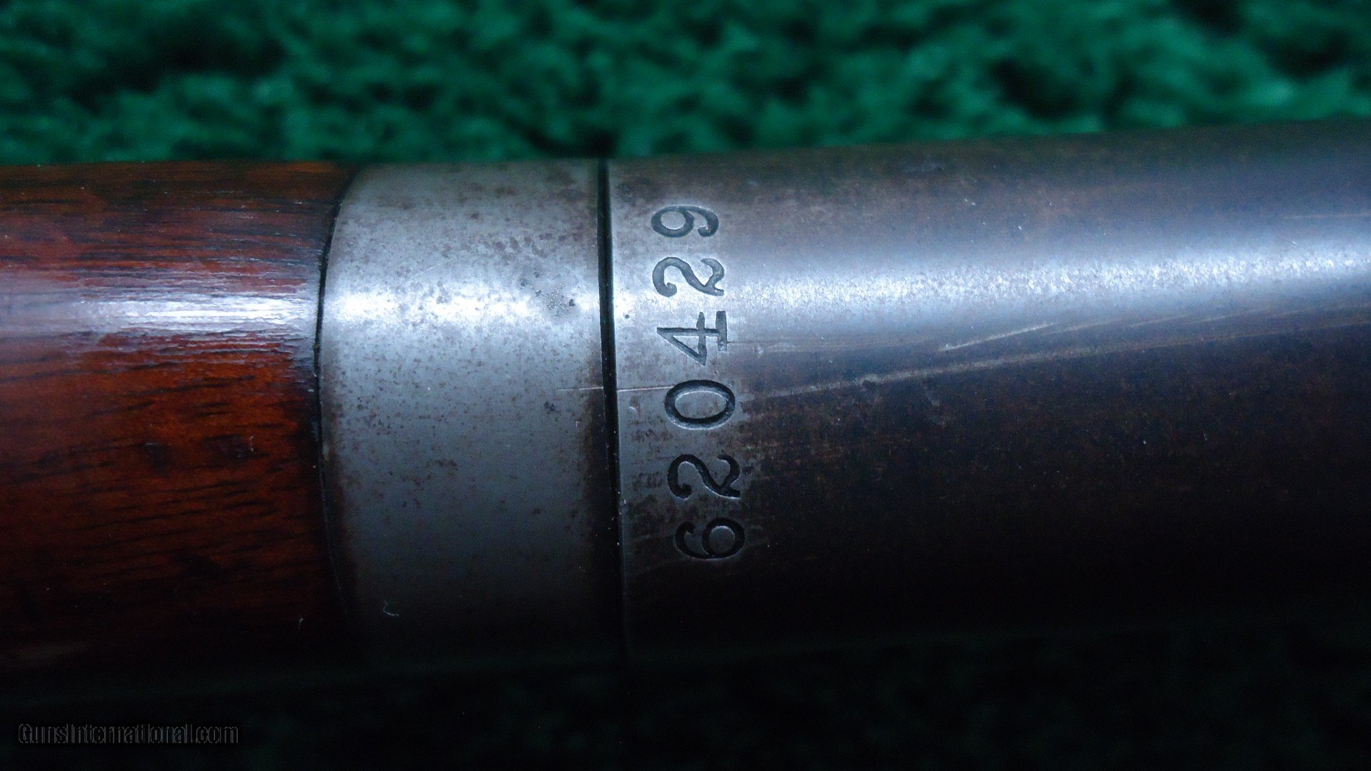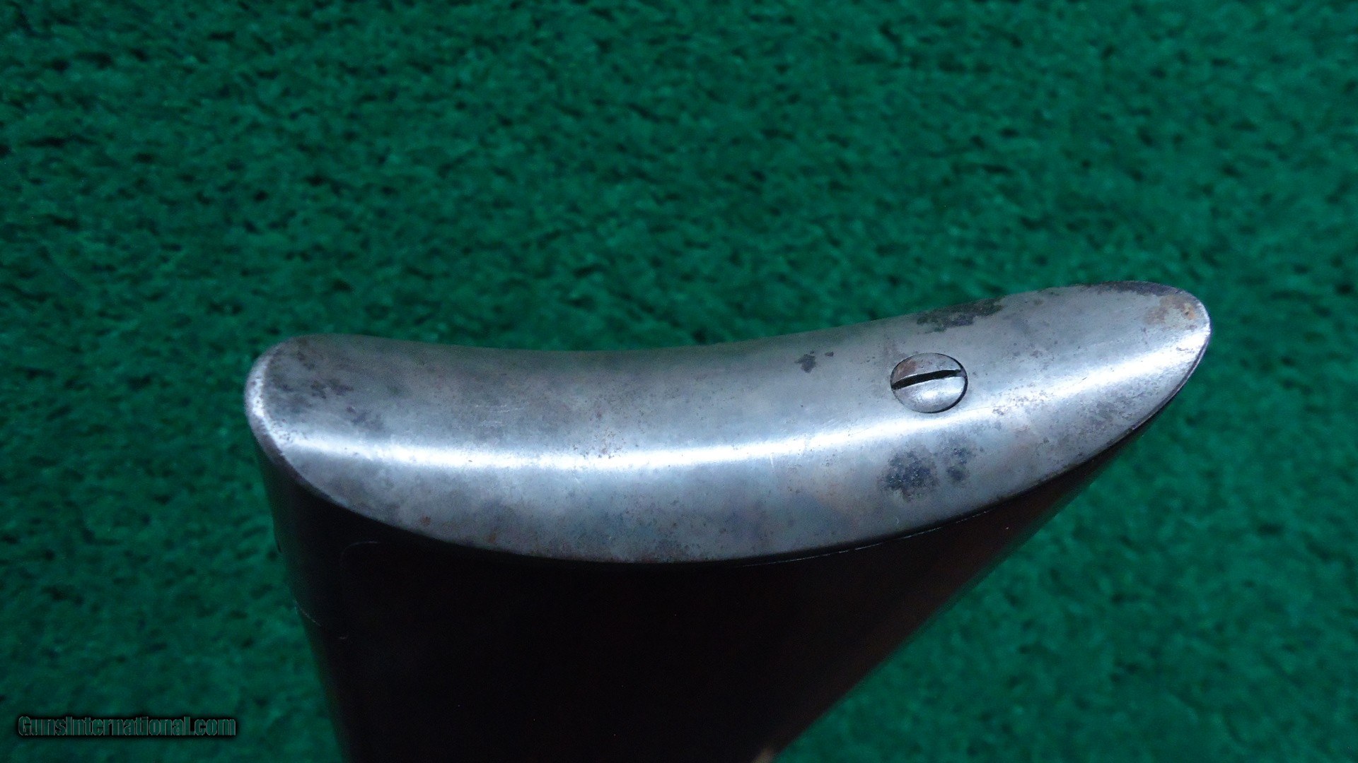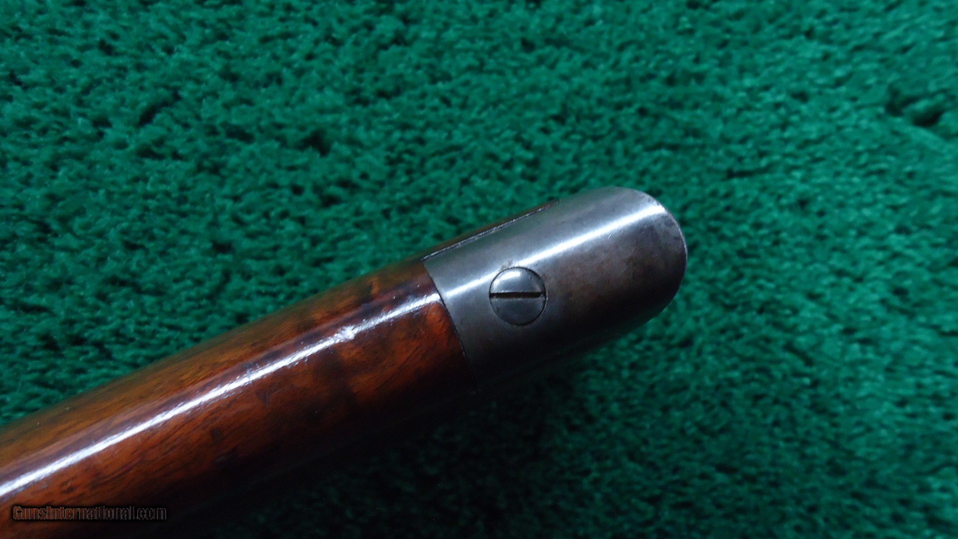 Description: 24 inch octagon barrel. Original No. 21 sporting front and No. 22 sporting rear sights. Full length 13 shot tube magazine. Take down frame/receiver. Plain walnut forearm with matching straight grip buttstock finished off with a crescent rifle buttplate. Condition rates about excellent overall having mostly clean smooth metal surfaces with the barrel, magazine tube and forehand cap showing about 95% original blued finish. Bore is near excellent, bright and shiny with strong rifling showing a very faint ring near the muzzle. The takedown joint is tight, the action is crisp and tight with the receiver showing about 70% original thinning blued finish starting to turn brown with a few scattered light freckles. The hammer and lever show a good deal of original case colored finish. The stocks are solid and full fitting showing little wear with only light handling marks. Nice all original gun manufactured in 1911. Leroy Merz Antique Firearms specializes in antique and vintage Winchesters and other fine American firearms. Since 1965 Mr. Merz has taken part in the world of firearms and has been a contributor to many well known reference books. We have hundreds of additional guns in every price range at our home online. Search for Merz Antiques in google. SOLD Curio/Relic: Yes Rifle Caliber: .25-20 Winchester |