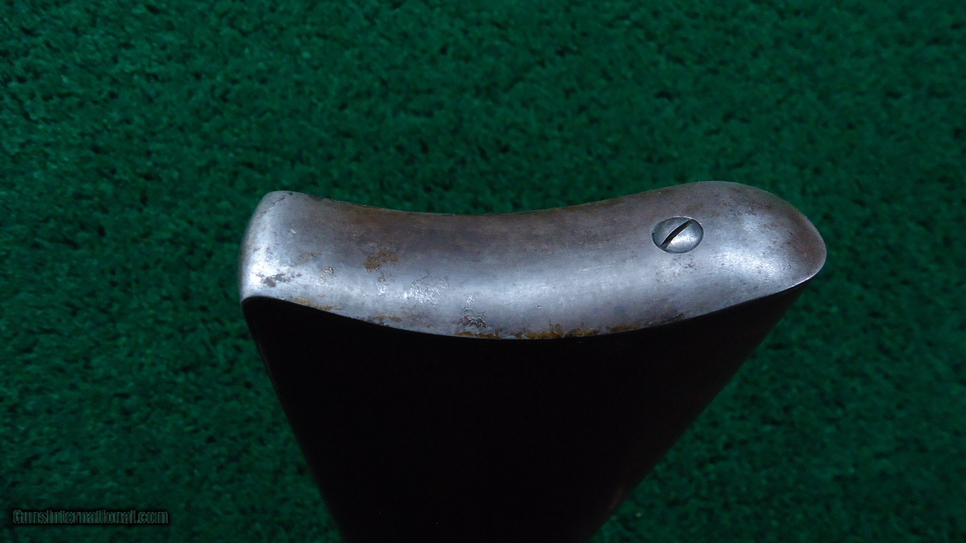 Description: 20 inch barrel chambered in 44 WCF caliber and full length magazine show 80% finish with light wear and handling marks. Excellent bore that is bright and shiny with sound rifling. Pinned blade front sight and folding ladder rear. Receiver shows 60% finish starting to turn brown in places with the balance a gray brown patina. Overall metal surfaces are mostly clean and smooth with a couple small areas of light pitting and some very light freckles scattered here and there. Walnut stocks are solid and fit well with a few handling marks scattered here and there and appear to have a coat of finish added. Carbine butt plate. Crisp action. Not a bad looking 44 caliber SRC that was manufactured in 1920. Leroy Merz Antique Firearms specializes in antique and vintage Winchesters and other fine American firearms. Since 1965 Mr. Merz has taken part in the world of firearms and has been a contributor to many well known reference books. We have hundreds of additional guns in every price range at our home online. Search for Merz Antiques in google. SOLD Curio/Relic: Yes Rifle Caliber: .44-40 Winchester |