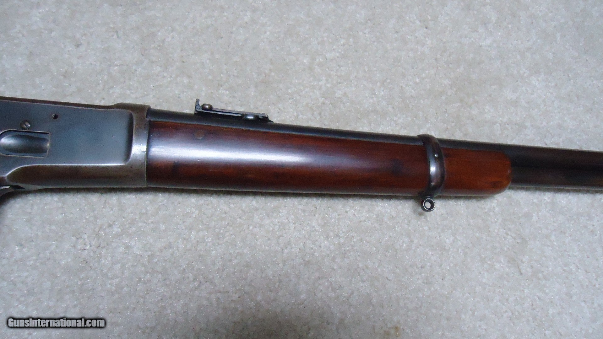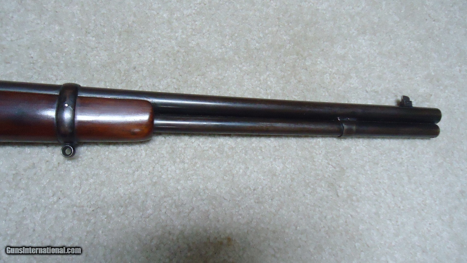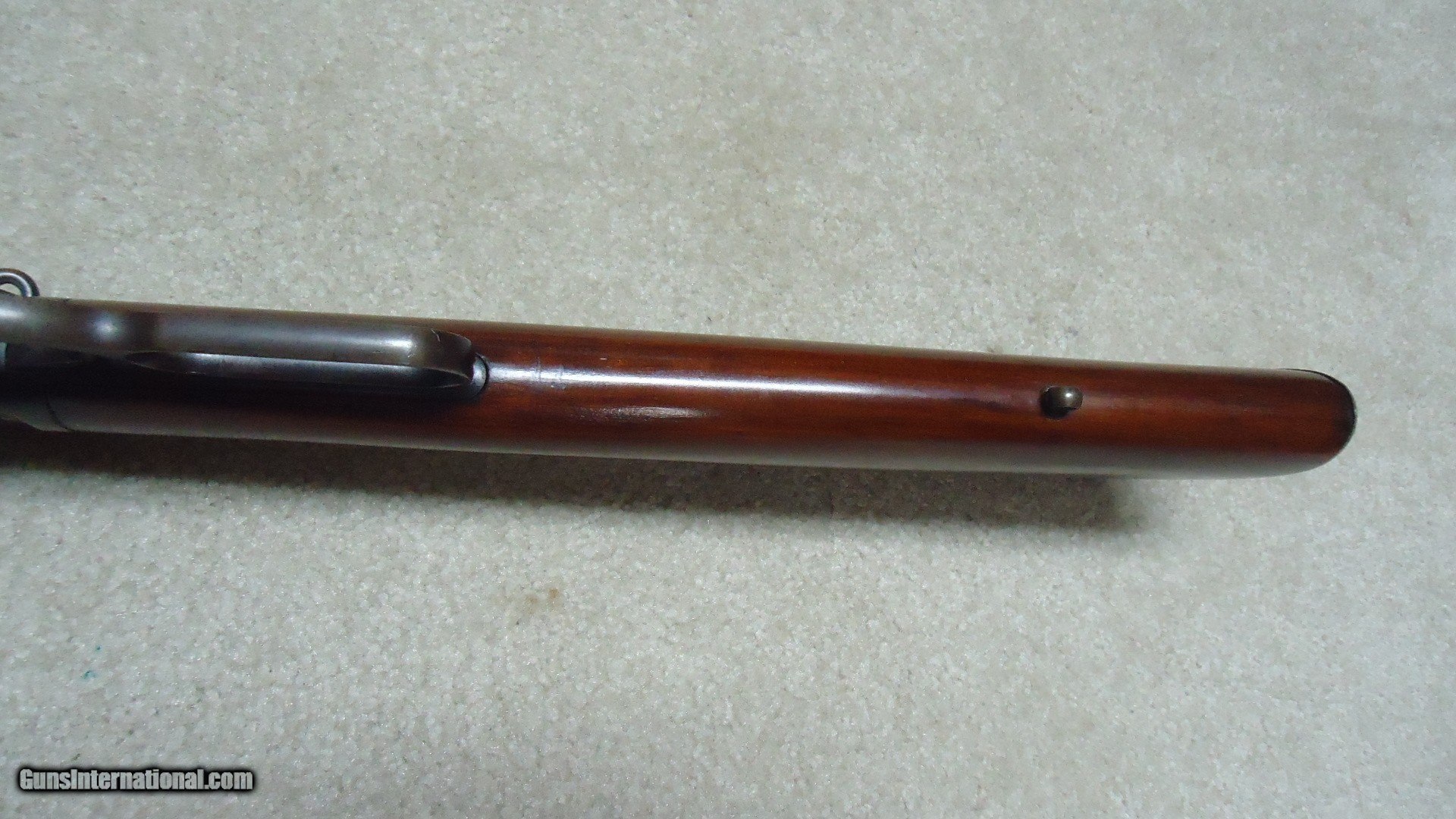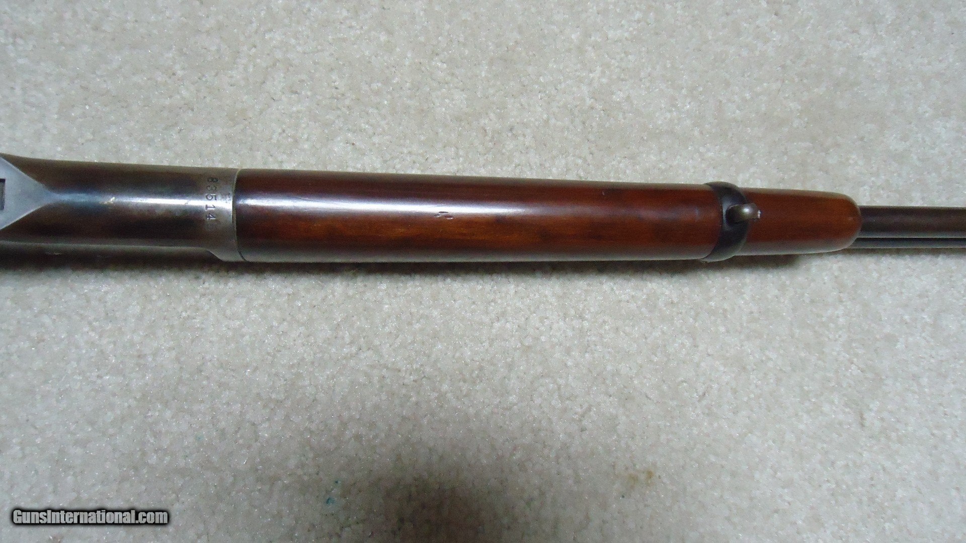Description: 1892 SADDLE RING CARBINE, .25-20 CALIBER, #835XXX, MADE 1917. An attractive example that shows fine receiver blue that is evenly mixing with some plum and brown. Similarly, the barrel and mag tube show good blue that is also mixing plum and brown- mainly ahead of the forend. It retains the original carbine ladder rear sight with slide intact. All sharp and clear markings, saddle ring intact and has what appear to be correct factory sling-eye swivels- one in the butt stock and one correctly placed in the barrel band. The wood shows good wood to metal fit and has had stock finish added along with some wood fill in a few minor dings- this finish can easily be removed with #0000 steel wool or just left as is. Tight action, safety half-cock notch in the hammer holds and the bore is excellent. Nice 105 year old carbine. SOLD Curio/Relic: Yes Rifle Caliber: .25-20 Winchester Manufacturer: Winchester Model: 1892 CARBINRE Serial Number: 835XXX Barrel Length: 20 Condition: FINE Bore Condition: EXCELLENT |