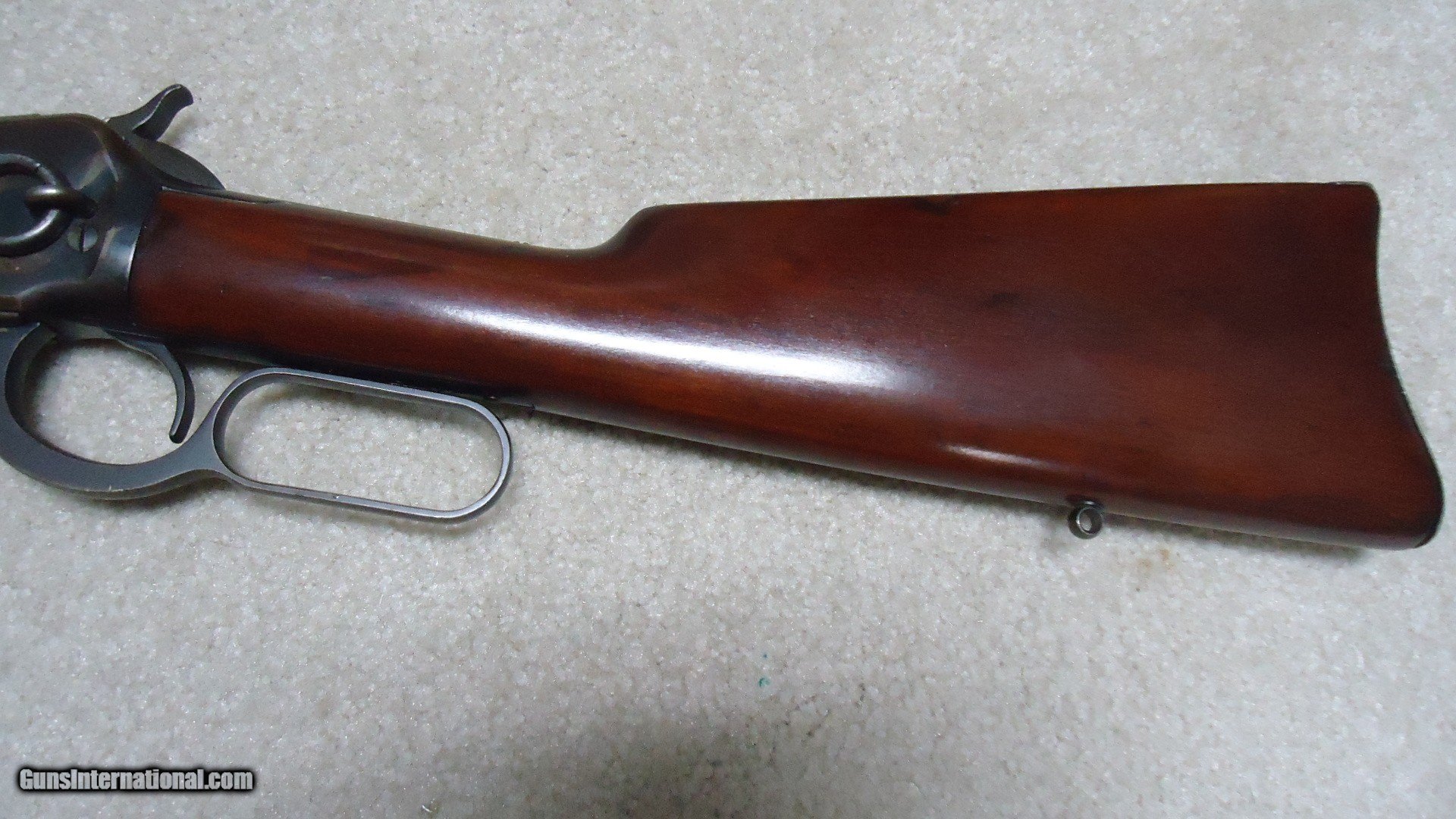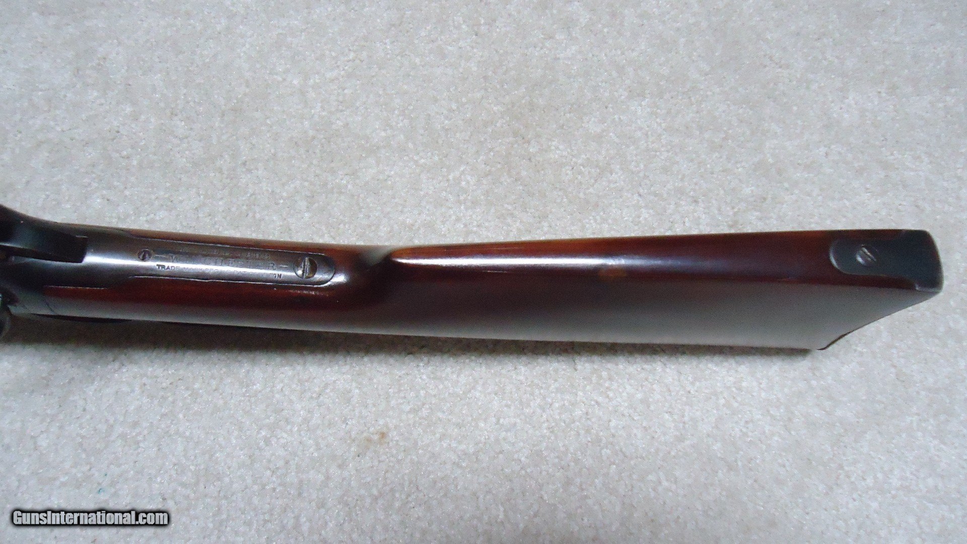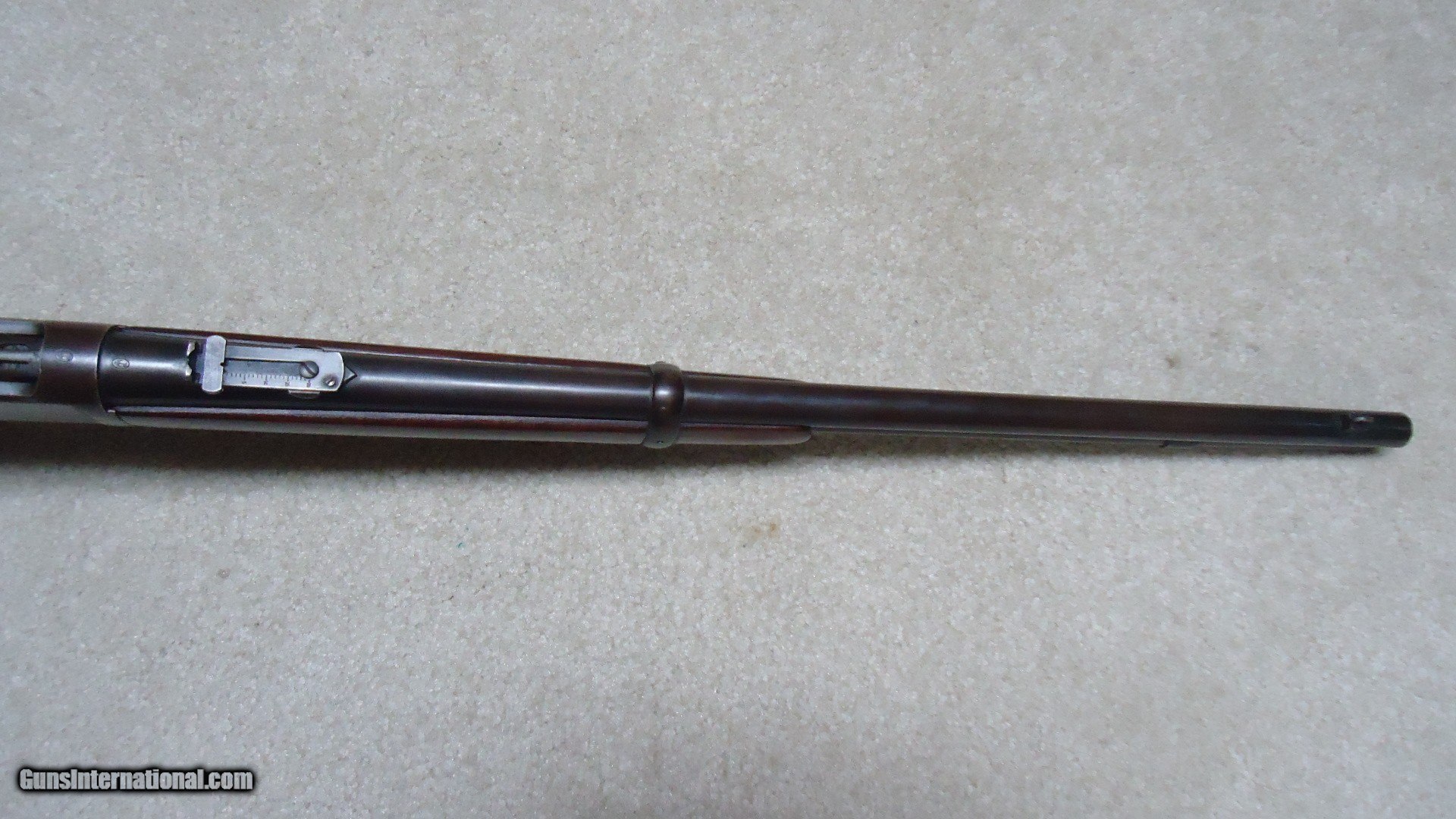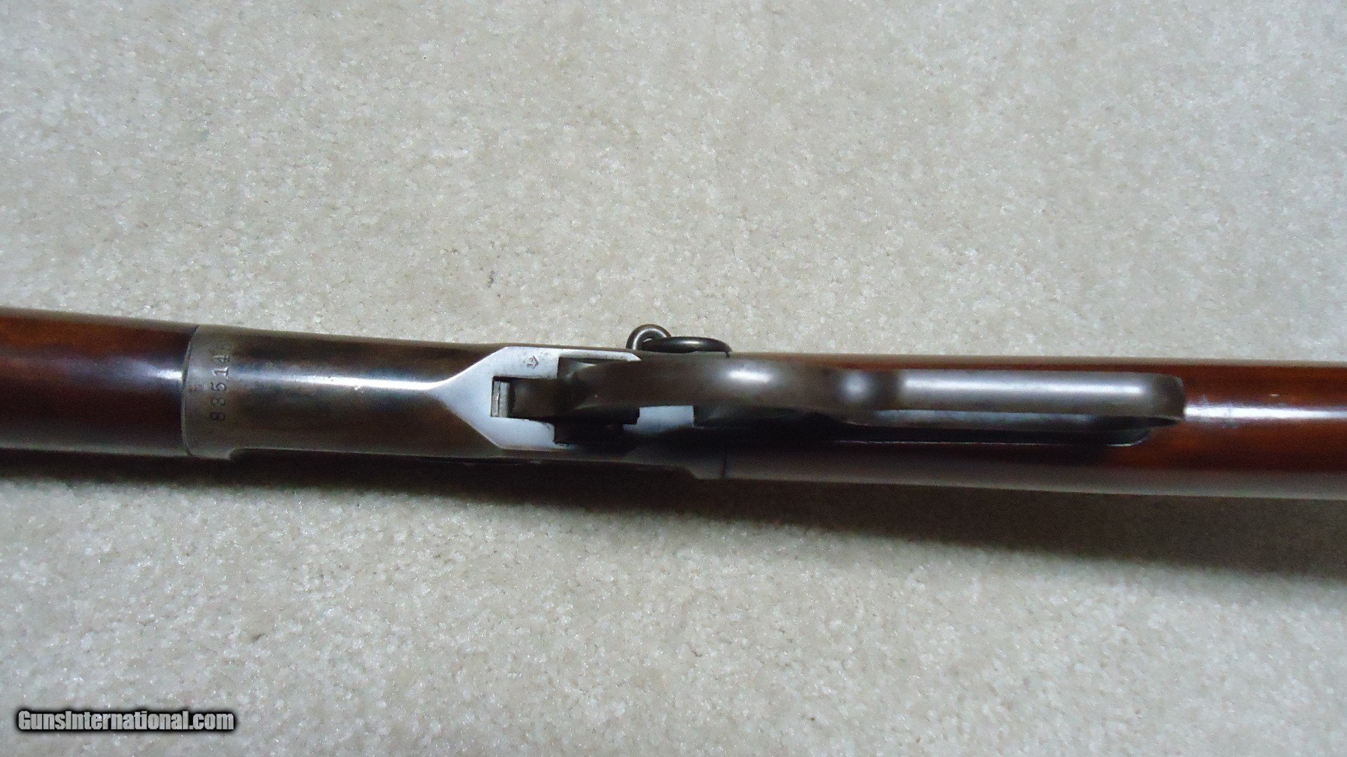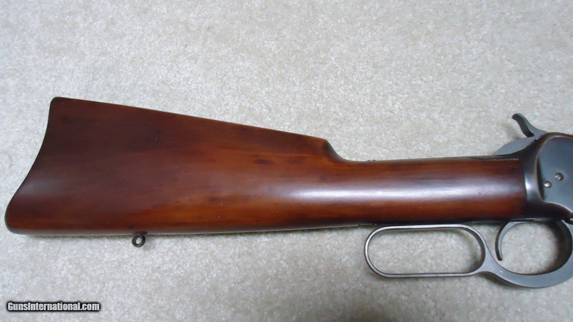 Description: 1892 SADDLE RING CARBINE, .25-20 CALIBER, #835XXX, MADE 1917. An attractive example that shows fine receiver blue that is evenly mixing with some plum and brown. Similarly, the barrel and mag tube show good blue that is also mixing plum and brown- mainly ahead of the forend. It retains the original carbine ladder rear sight with slide intact. All sharp and clear markings, saddle ring intact and has what appear to be correct factory sling-eye swivels- one in the butt stock and one correctly placed in the barrel band. The wood shows good wood to metal fit and has had stock finish added along with some wood fill in a few minor dings- this finish can easily be removed with #0000 steel wool or just left as is. Tight action, safety half-cock notch in the hammer holds and the bore is excellent. Nice 105 year old carbine. SOLD Curio/Relic: Yes Rifle Caliber: .25-20 Winchester Manufacturer: Winchester Model: 1892 CARBINRE Serial Number: 835XXX Barrel Length: 20 Condition: FINE Bore Condition: EXCELLENT |
