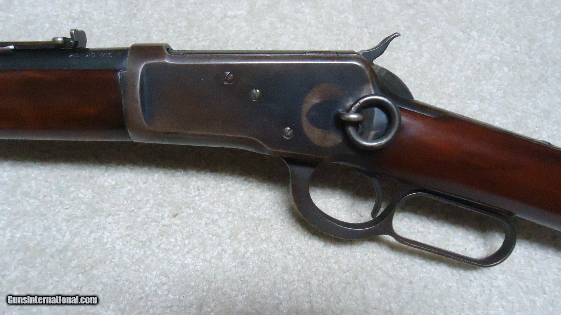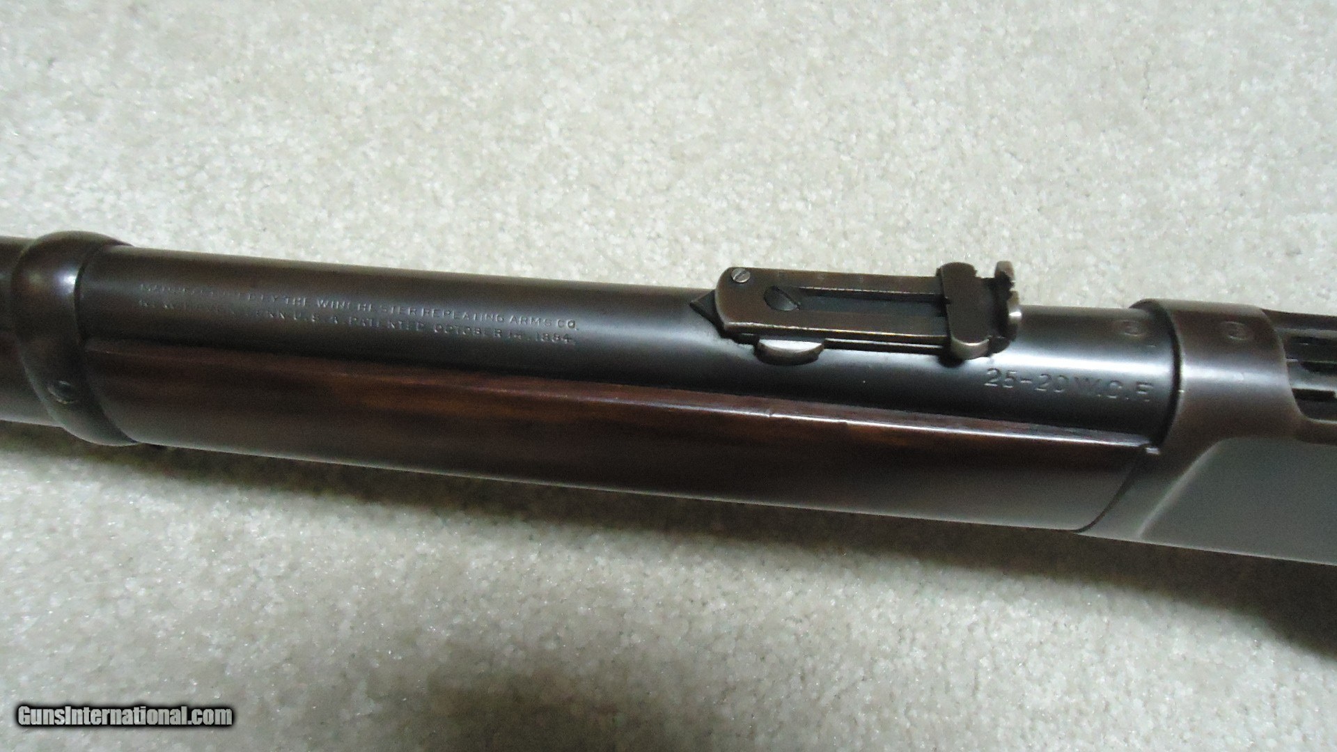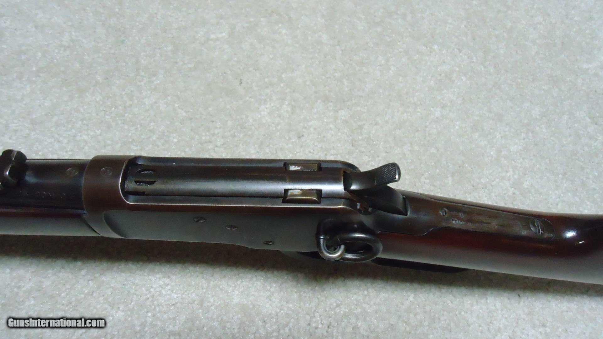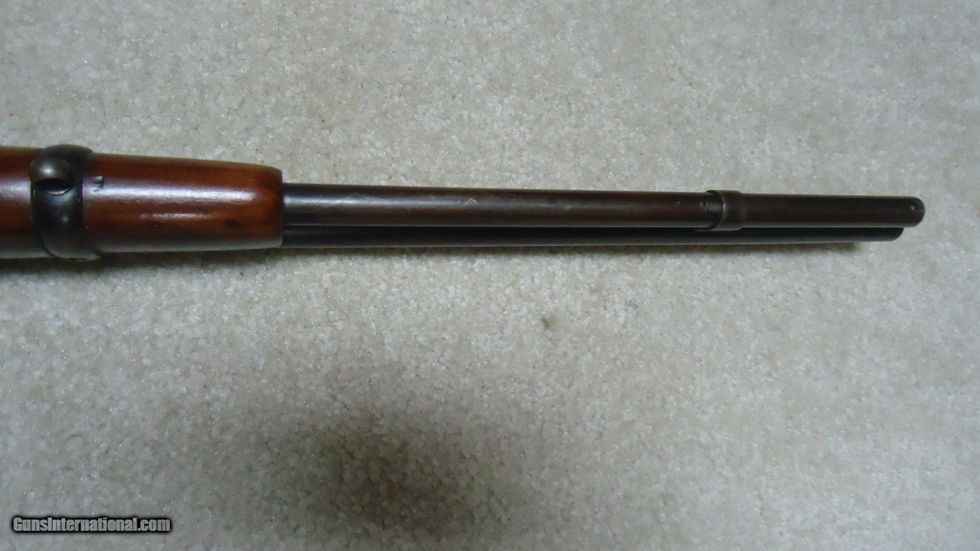 Description: 1892 SADDLE RING CARBINE, .25-20 CALIBER, #835XXX, MADE 1917. An attractive example that shows fine receiver blue that is evenly mixing with some plum and brown. Similarly, the barrel and mag tube show good blue that is also mixing plum and brown- mainly ahead of the forend. It retains the original carbine ladder rear sight with slide intact. All sharp and clear markings, saddle ring intact and has what appear to be correct factory sling-eye swivels- one in the butt stock and one correctly placed in the barrel band. The wood shows good wood to metal fit and has had stock finish added along with some wood fill in a few minor dings- this finish can easily be removed with #0000 steel wool or just left as is. Tight action, safety half-cock notch in the hammer holds and the bore is excellent. Nice 105 year old carbine. SOLD Curio/Relic: Yes Rifle Caliber: .25-20 Winchester Manufacturer: Winchester Model: 1892 CARBINRE Serial Number: 835XXX Barrel Length: 20 Condition: FINE Bore Condition: EXCELLENT |