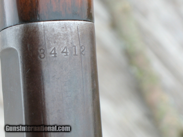 Description: SOLD... Antique model 1892 Winchester round barrel 44-40.. Here is a average condition antique 1892 Winchester in the very sought after 44-40 caliber. S/N 34412 and MFG in 1893 second year production. Has the standard 24" round barrel. The bore is very good with strong rifling all the way through. Just has very minor roughness from black powder but still a very nice strong bore. NO craters, rings or bulges. The mechanics are excellent. It feeds, fires and ejects flawlessly. NO bulged cases or backed out primers. It shoots great. Both hammer notches are excellent and positive. Original front and rear sights. Rear sight elevator only is a replacement. The metal over all is a nice even brownish patina. Maybe has had some kind of a browning solution applied at some time but still a pleasingly looking ole 92. NO pitting anywhere. Still shows the factory machining marks on the receiver. Just traces of blue on the bottom tang where it has been protected over the years. Markings are all very good. The wood is not so nice. It has been sanded and re varnished at some point in time. The forearm fits low to the bottom of the forearm cap..Fits good to the sides of the cap and the receiver. NO splits, cracks or repairs. The butt stock has been sanded and varnished also and fits low to the upper tang and the rear of the receiver. It also has smoothed over small chips on both sides by the receiver as you can see. Or it just might have been sanded low ?? Who knows. It is what it is !!! Fits very nice to the lower tang. The stock shows a very minor but still very tight grain split at the rear of the upper tang about an inch or so long. Really does not detract from this one since the wood has been re finished. The wood has great color though.. I have this one priced considering the wood issue. Still retains the early heart shaped hammer knurling that was used on these early 92's. The screw heads are all very nice and not all burred up. All in all, not a bad ole antique 92. It is in the right caliber with a nice bore. It has not been abused or beat on. These early antique 92's are getting very hard to find that can still be bought for less than $2000 any more. I remember the good ole days when you could buy one of these in this condition or better for $700 or so !!!! Ones that sell for parts are bringing that or more now. $50 insured shipping. Call 765-728-8049 with any questions or more photos. I want everyone to be pleased with their purchases or your money back. I think you will like this one. It is a great shooter or entry grade collector for the money. Thank you for looking and please check my other listings as I may have something of interest to you. SOLD Antique: Yes |