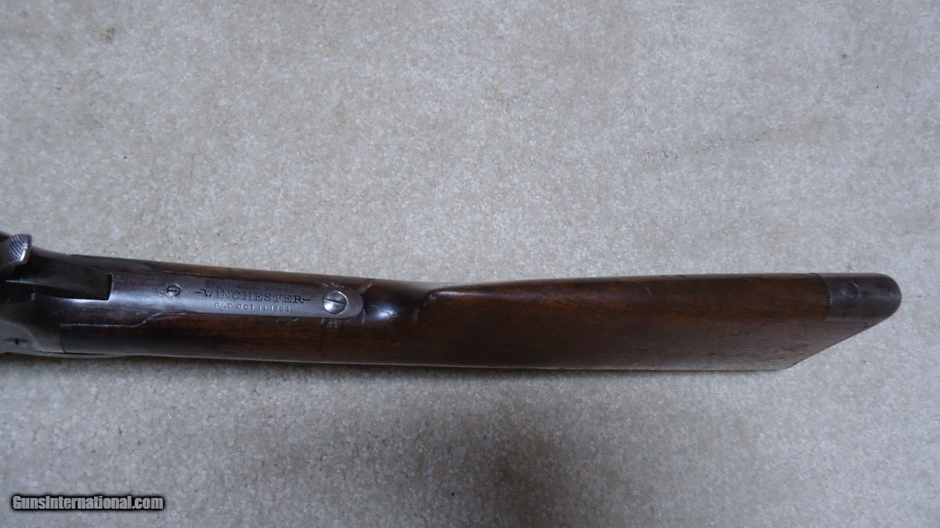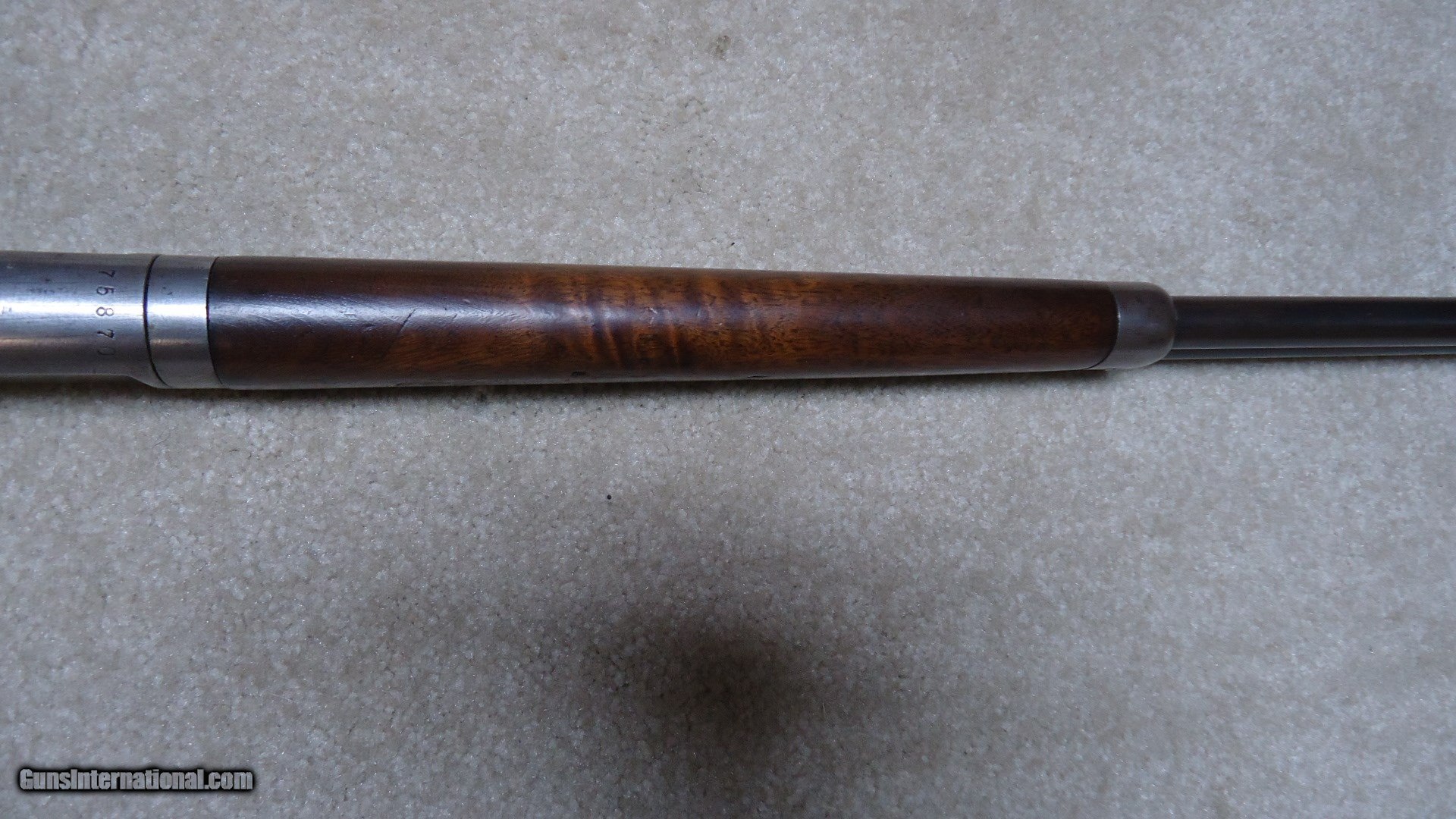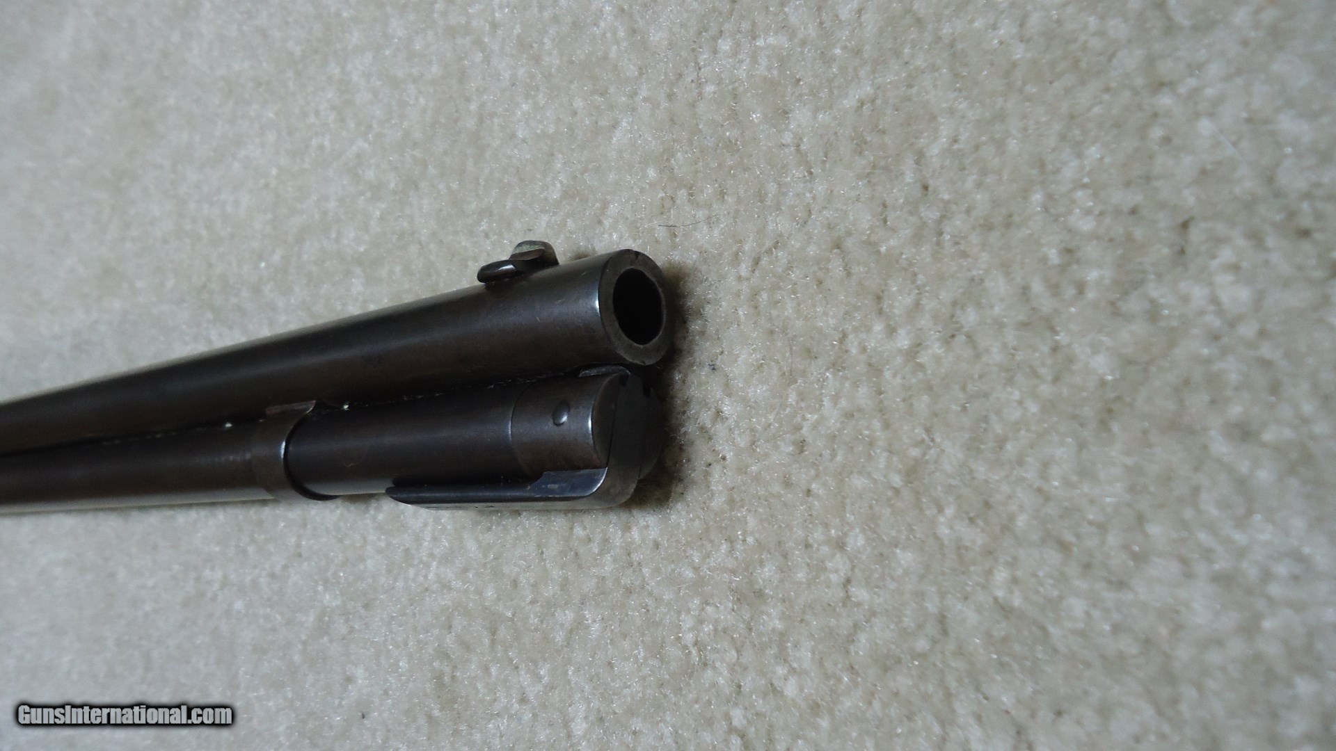 Description: ANTIQUE SERIAL NUMBER 1892 TAKEDOWN .44-40 ROUND BARREL RIFLE, #75XXX, MADE 1895. These early takedown rifles made before 1899 are few and far between as they were not introduced until 1893 at serial number 27,000. They are especially rare in desirable .44-40 caliber. Of the first 380,000 serial numbers, only 1403 takedowns were manufactured. This one came out of here in Montana and no doubt has lots of adventures associated with it! Barrel and magazine tube show a very aged blue that is mixing heavily brown. Receiver is mostly gray with some aged blue in the rear protected areas and on the loading gate. There is also some good aged blue on the bolt. Tight takedown, correct Winchester small blade front sight with buckhorn rear sight. Fine+ forearm and fine butt stock that shows a few more dings and scratches. Good wood to metal fit. Excellent screws and a fine bore that shows some wear but has good rifling all the way through. With an attractive overall appearance, this is a very difficult to find and desirable combination of antique serial number, .44-40 caliber and takedown feature. SOLD Antique: Yes Manufacturer: Winchester Model: 1892 TAKEDOWN ROUND BARREL RIFLE Serial Number: 75XXX Caliber Info: .44-40 Condition: fine Barrels: 24" ROUND |