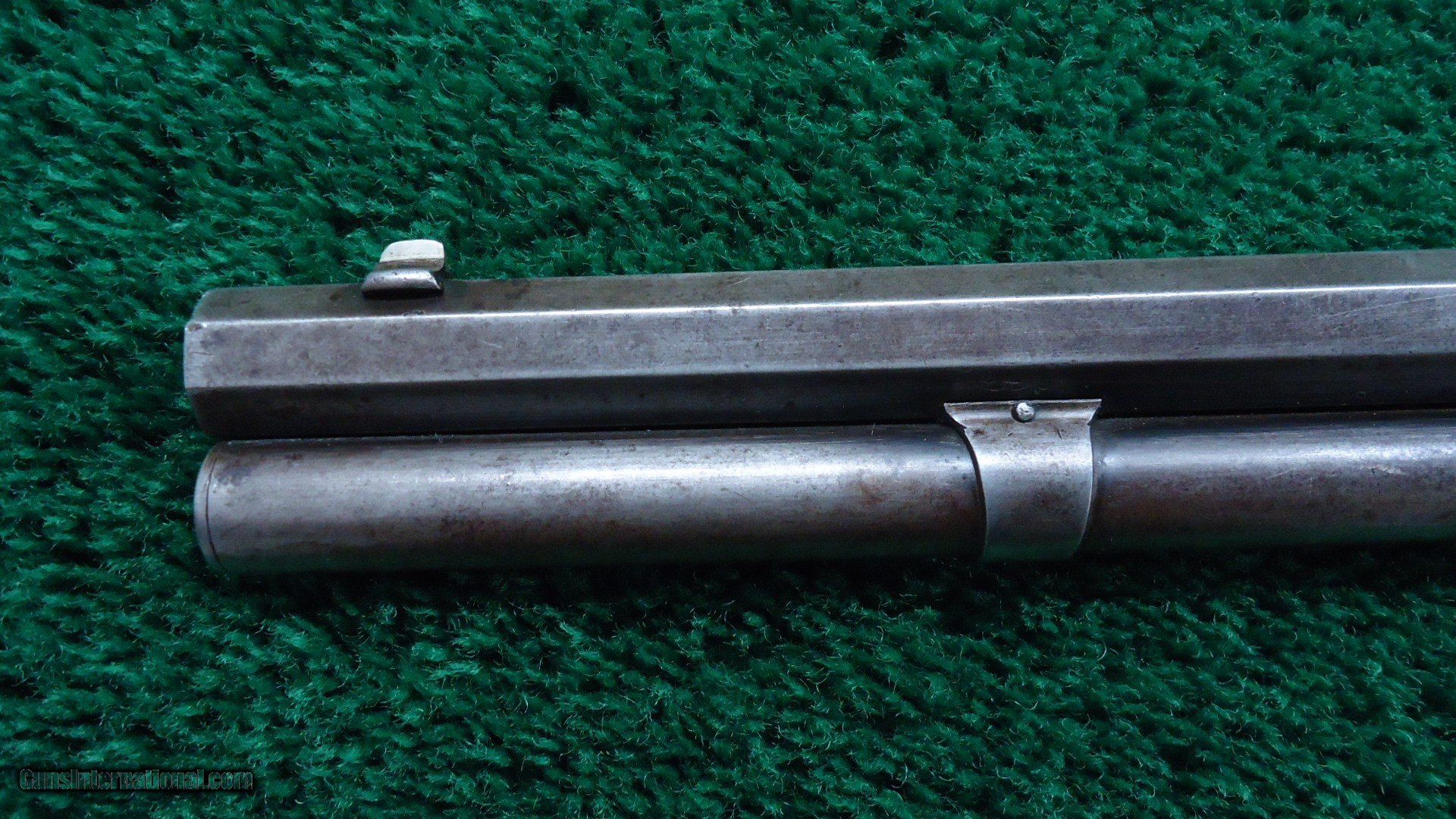 Description: 24 inch octagon barrel and full length magazine. Good bore with sharp rifling and some fouling in the pits. Wood is very good with a rifle style buttplate. Overall metal is mostly a gray patina with sharp corners. Original sights. Early 7200 serial range. Crisp action. Scarce gun. Hard to find an octagon 44-40 with antique serial number. Leroy Merz Antique Firearms specializes in antique and vintage Winchesters and other fine American firearms. Since 1965 Mr. Merz has taken part in the world of firearms and has been a contributor to many well known reference books. We have hundreds of additional guns in every price range at our home online. Search for Merz Antiques in google. SOLD Antique: Yes Rifle Caliber: .44-40 Winchester |