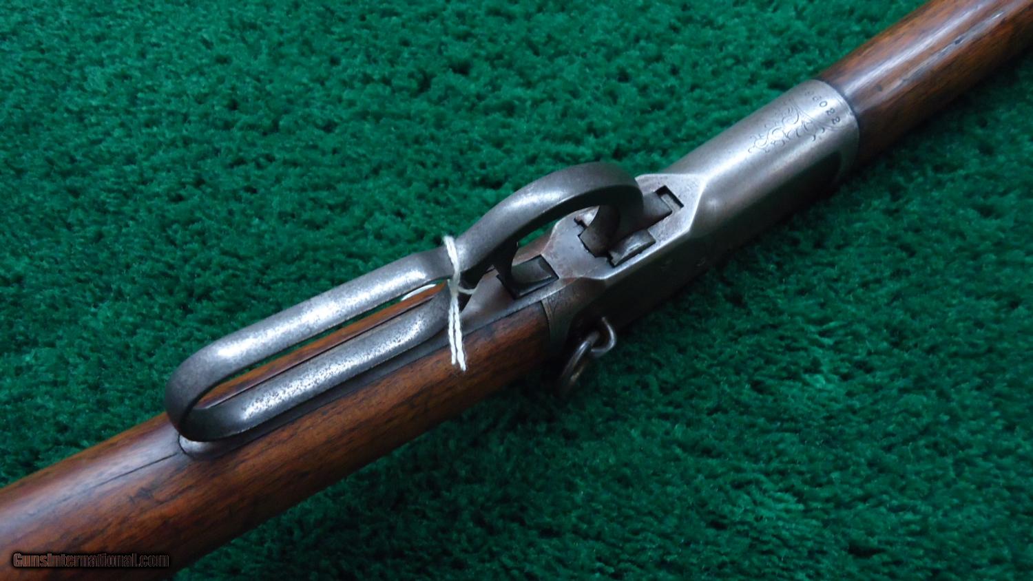 Description: This is the Winchester No. 9 engraving pattern on an otherwise standard 1892. The No. 9 pattern is quite extensive on both sides of the receiver and also by the serial number and on the bbl. 32 WCF is in a rectangular panel. The proof mark is down by the bbl address because of the engraving. Gun is mostly a silver color with most finish gone. Still nice smooth metal. All engraving is visible with only light wear. The bbl is a silver/grey with good markings and a full length mag tube. Wood is standard. Good fitting to both tangs and a slight chip missing in the upper right hand corner. Forearm is overall good cond. Engraved 1892's are scarce but an engraved SRC is very very scarce! Leroy Merz Antique Firearms specializes in antique and vintage Winchesters and other fine American firearms. Since 1965 Mr. Merz has taken part in the world of firearms and has been a contributor to many well known reference books. Just recently we mailed the 125th edition of our privately-published catalog. We have hundreds of additional guns in every price range at our home online. Search for Merz Antiques in google. SOLD Curio/Relic: Yes Manufacturer: WINCHESTER Model: 1892 |