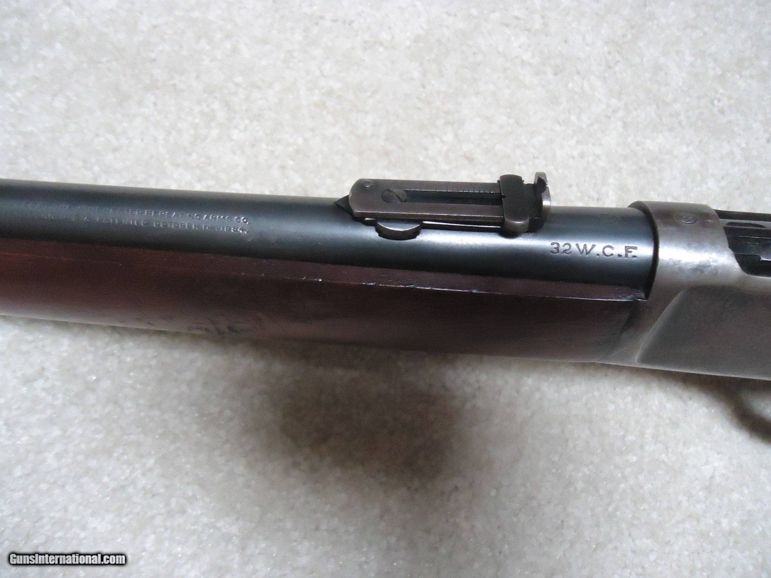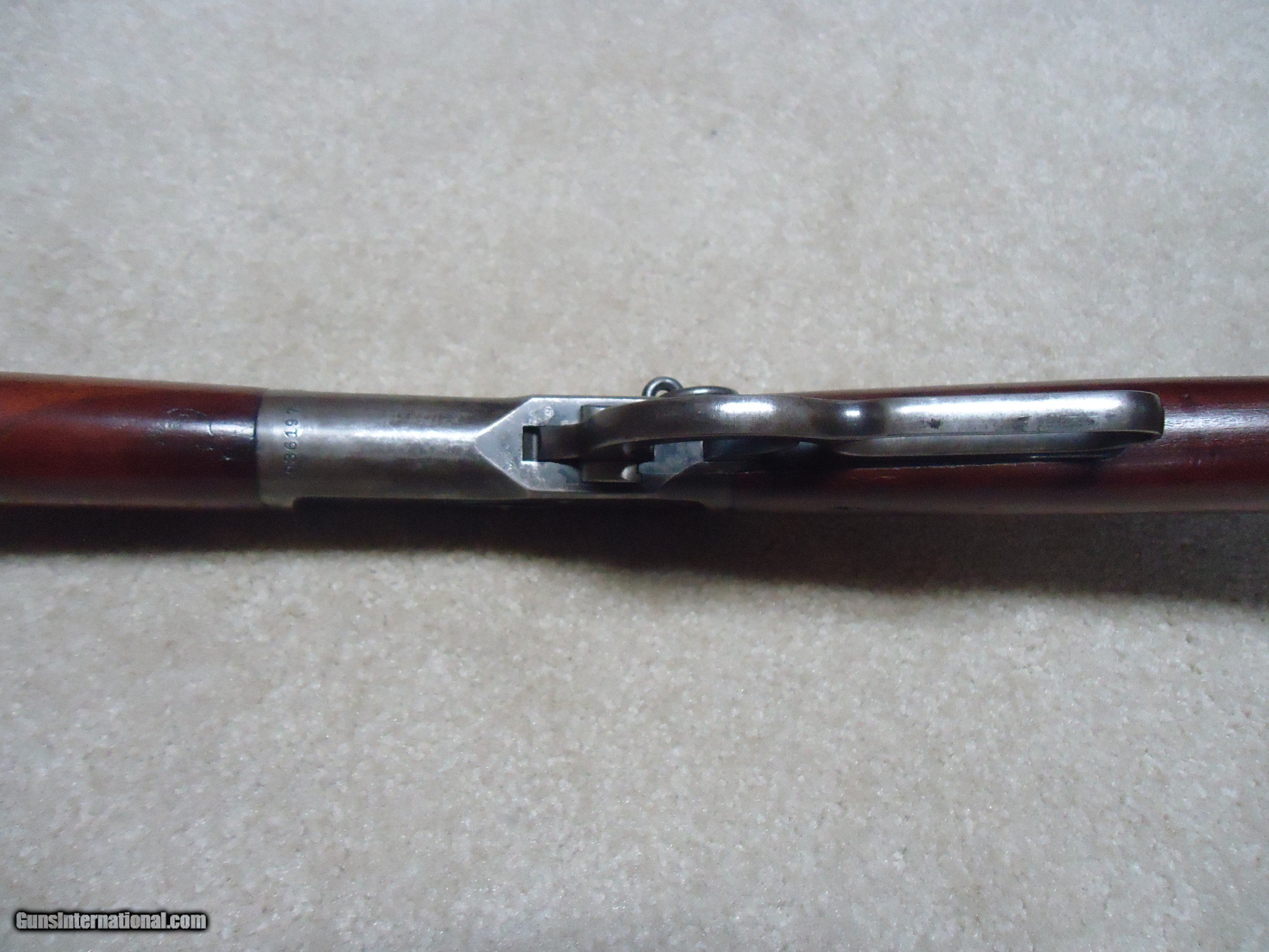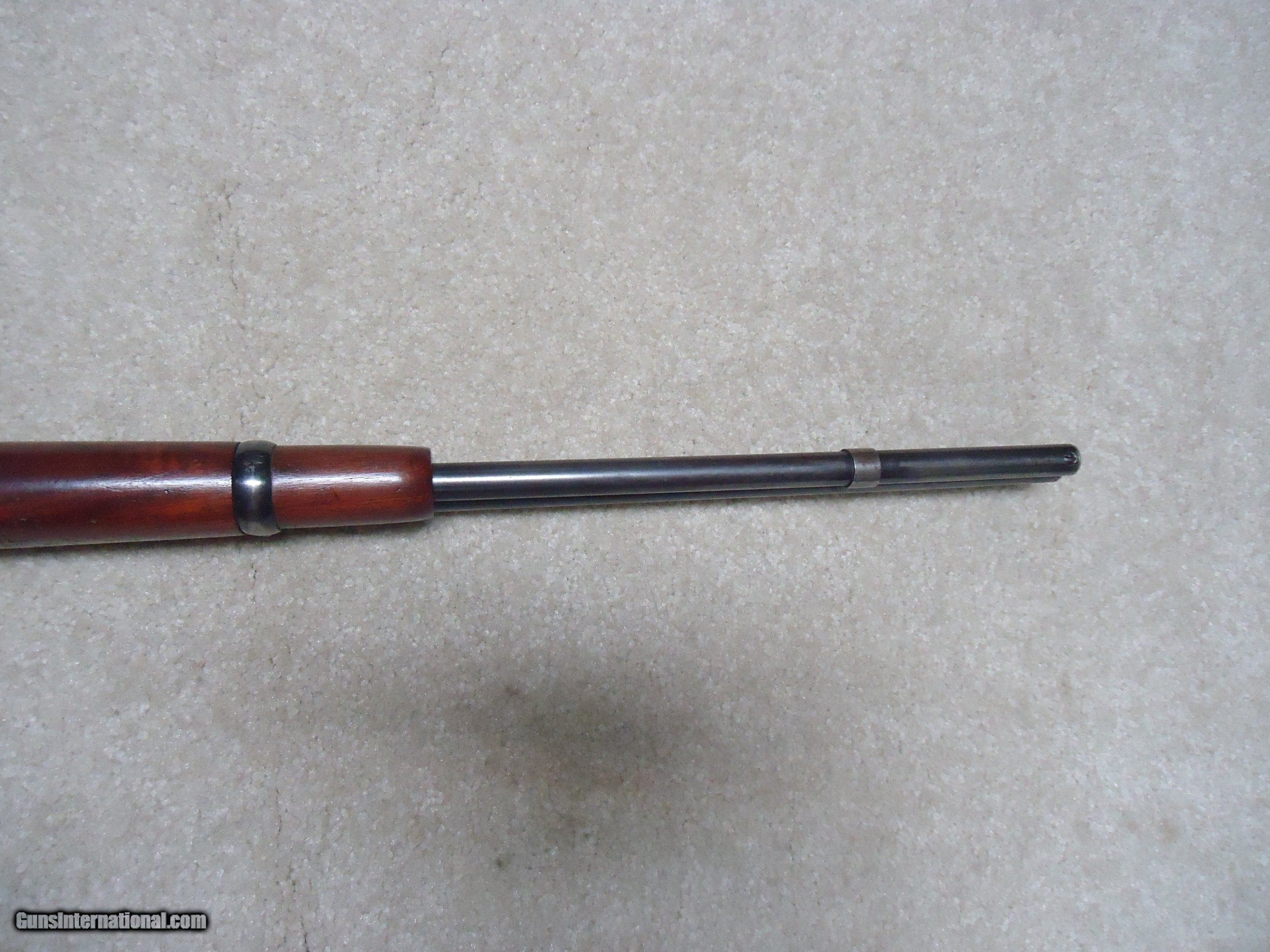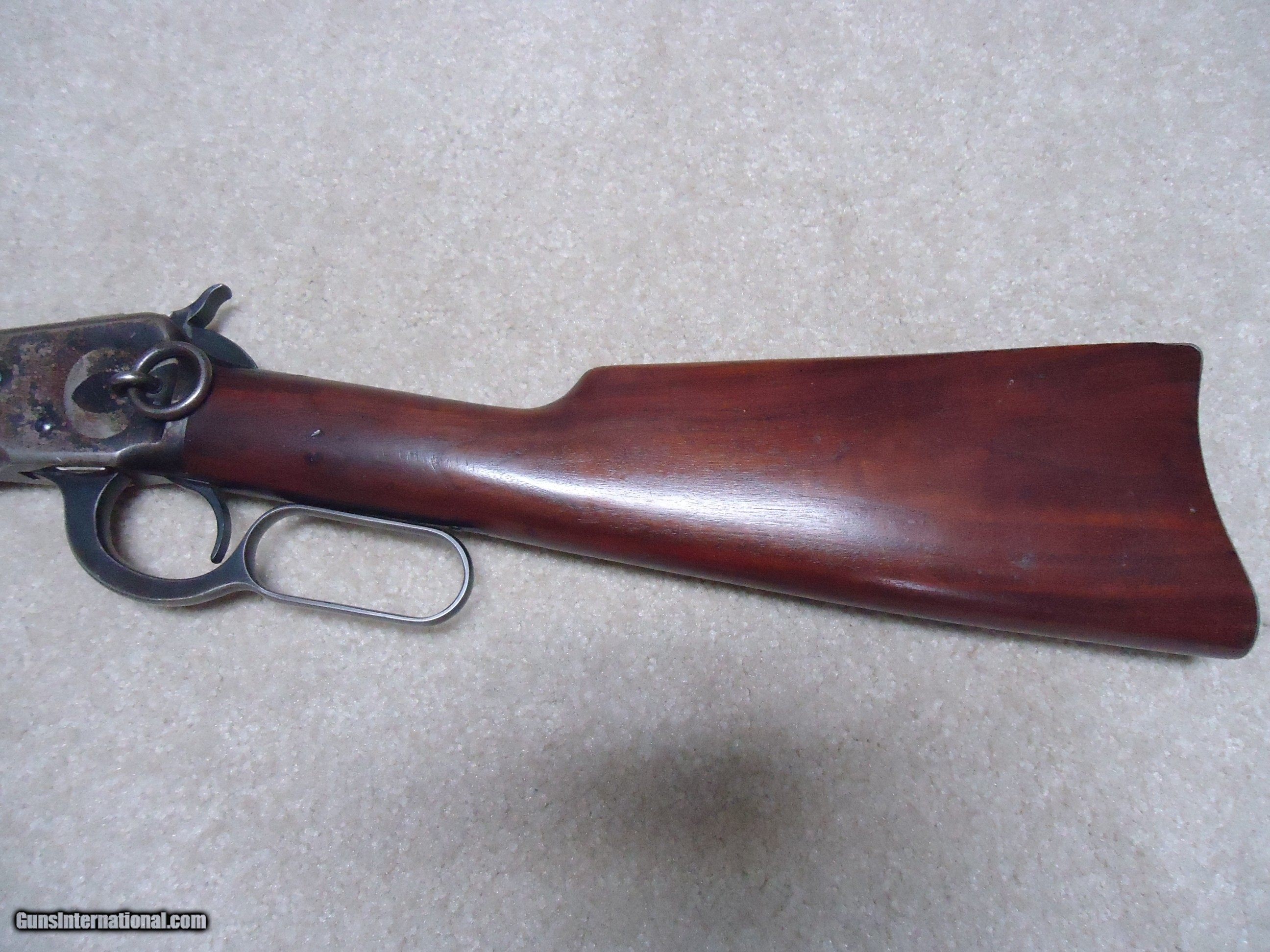 Description: FINE CONDITION 1892 SADDLE RING CARBINE, .32-20, #936XXX, MADE 1924. This is a surprisingly difficult caliber to find in a carbine. I tend to see more in .25-20 and .38-40 than in this caliber. Fine barrel and mag blue with some areas of light thinning toward the muzzle end. As is typical of 1920s vintage 1892s, the receiver shows some flaking of the blue, but still retains some blue in the more protected areas, on the bolt and loading gate. Correct original carbine rear sight with slide intact, exc. screws, fine+ walnut stock and forend with tight wood to metal fit and a few normal handling marks, tight action with strong safety half-cock, bore is fairly bright with strong rifling and some light scattered surface corrosion that is minor. Nice appearance. SOLD Curio/Relic: Yes Rifle Caliber: .32-20 Winchester Manufacturer: WINCHESTER Model: 1892 CARBINRE Serial Number: 936XXX Barrel Length: 20 Condition: FINE |