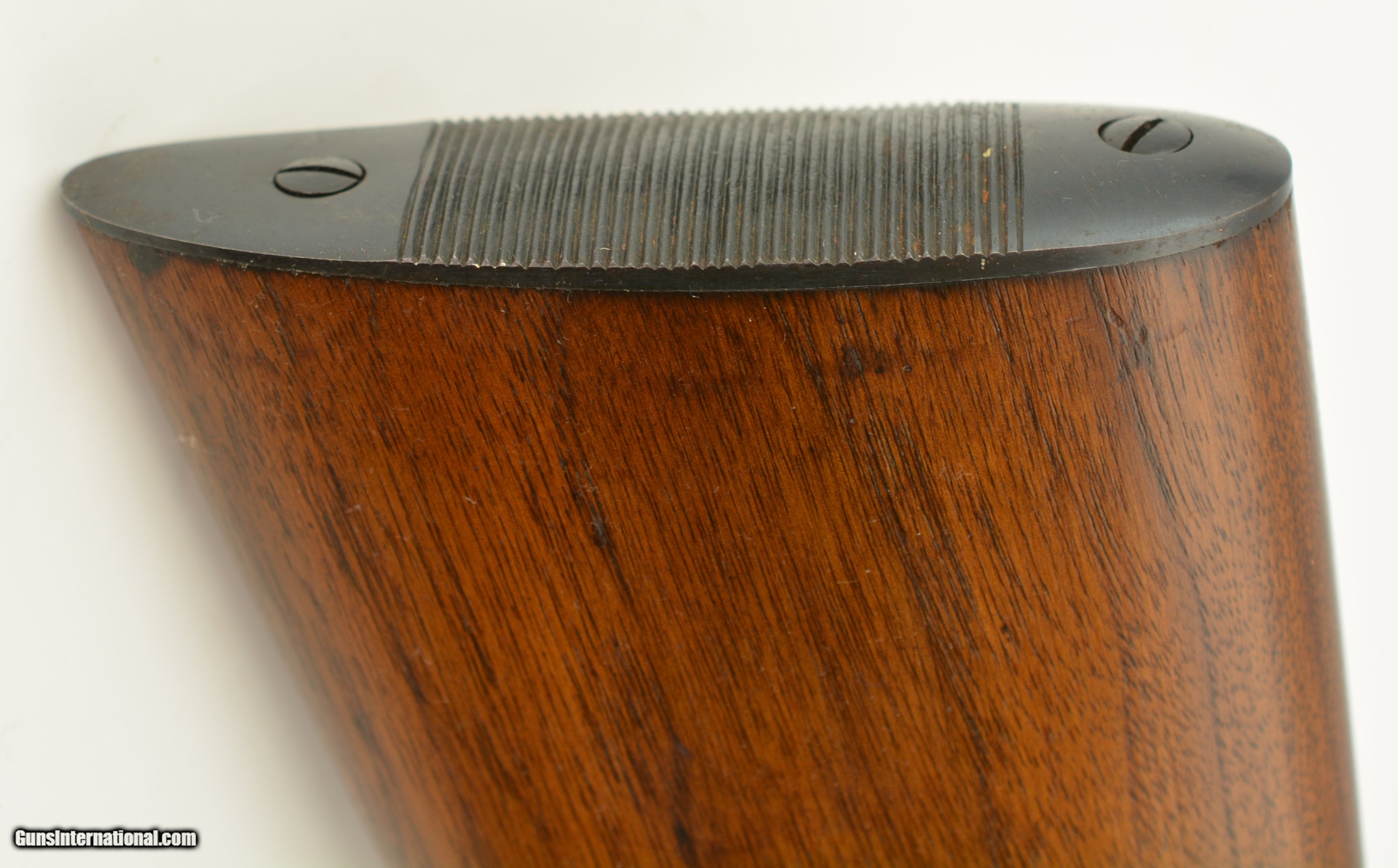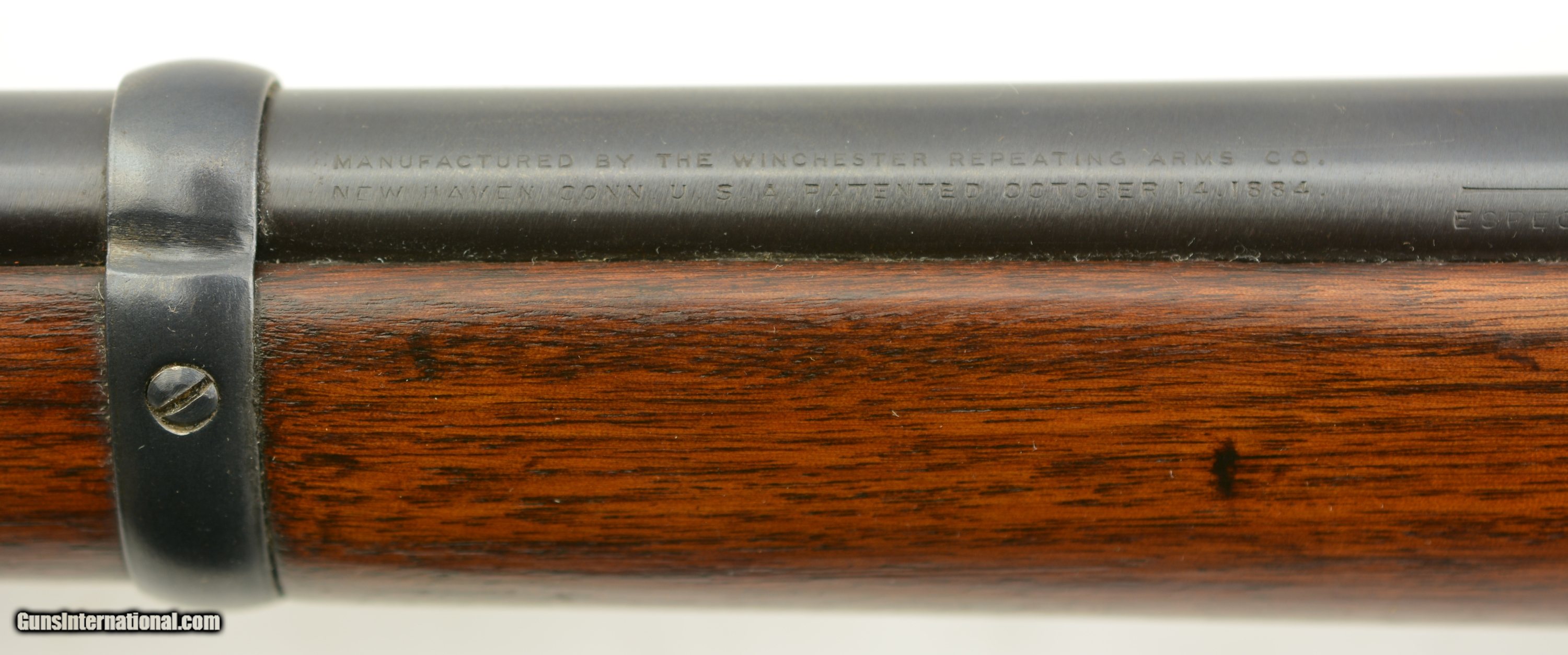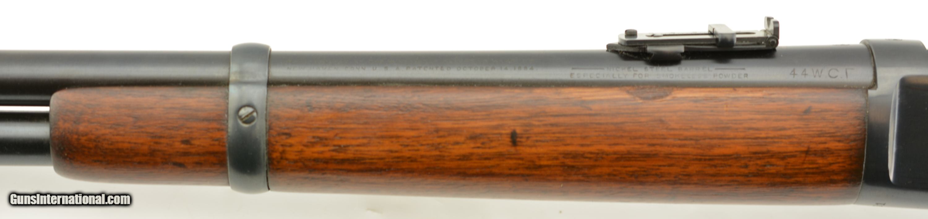 Description: Serial #158331, .44 WCF (.44-40), 20" barrel with a fine, bright bore that has a small amount of mild freckling within the grooves. This is a early, 1901 made carbine that has practically all of a professionally added blue finish remaining. The original factory markings and proofs are still clear and legible, and the edges are still fairly sharp. This carbine went back to the factory after 1905 and had the barrel proof added. It is under the blue so we assume the blue was added after although very nice and close to factory. It has a sporting type front sight mated to reproduction Carbine ladder rear sight. The walnut forend and the rare shotgun style buttstock have scattered small handling marks and blemishes under a professionally reapplied varnish, and there is a single short, with-the-grain crack on the right side of the wrist and a small bruise.dent on the left side of the forend. This is a rare gun being special ordered with the shotgun butt which was very unusal on a Carbine at this time. A Cody Sheet is included. C&R SOLD Curio/Relic: Yes Manufacturer: Winchester Model: 1892 Caliber Info: .44-40 Gauge Info: .44-40 |