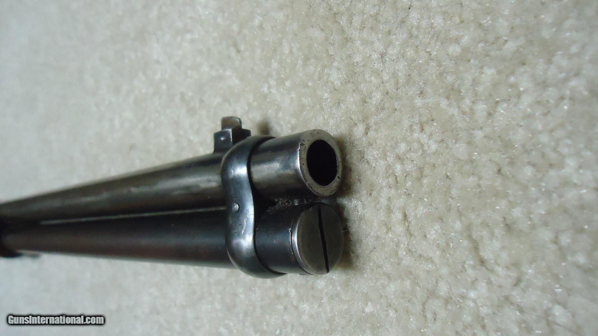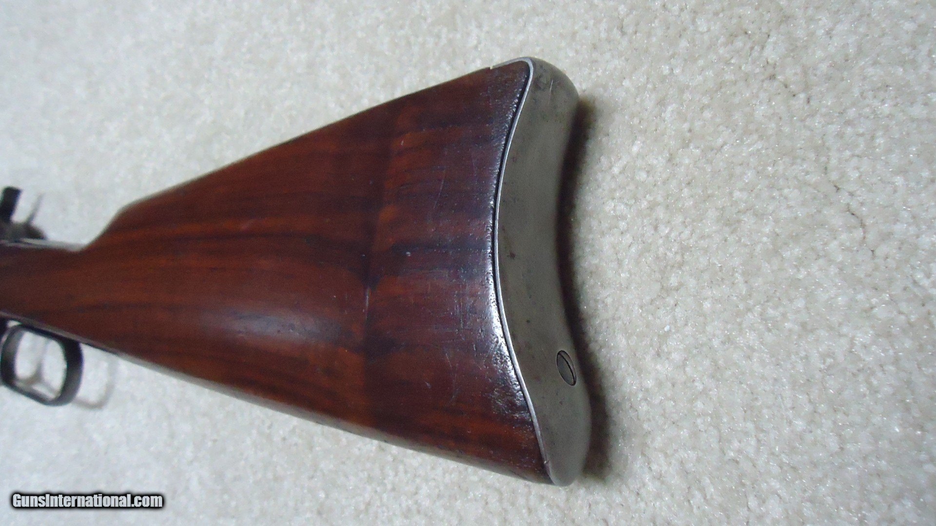 Description: VERY LATE 1892 SADDLE RING CARBINE, .38-40 CALIBER, #977XXX, MADE DURING THE YEAR OF THE GREAT STOCK MARKET CRASH OF 1929! A good, solid carbine that obviously saw use as a saddle gun. The receiver is mostly gray with excellent screw heads and fine blue on the loading gate. The barrel is mostly gray with excellent late style markings and correct carbine ladder rear sight with slide intact. The magazine tube shows some good aged blue mixing brown. Saddle ring and staple intact. Fine walnut stock and forend show tight wood to metal fit and only very light handling. Tight action with strong hammer spring and safety half-cock. Bore is fairly bright and may have some leading in the grooves mostly. I ran a wire brush into the bore and then a patch- came out black- an indication that more cleaning is needed. Should be excellent if not better. Lots of life left in this one. SOLD Curio/Relic: Yes Rifle Caliber: .38-40 Winchester Manufacturer: WINCHESTER Model: 1892 CARBINE Serial Number: 977XXX Barrel Length: 20 Condition: VG Bore Condition: FINE+ |