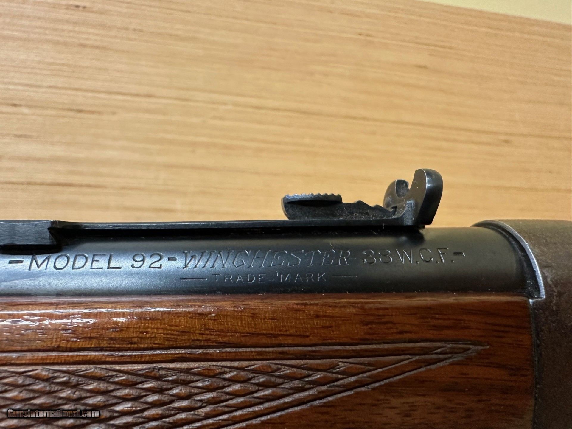 Description: CONSIGNMEN USED IN GOOD CONDITION WINCHESTER 1982 SADDLE RING --- CARBINE 20" BARREL --- RECEIVER HAS SOME BLEMISHES ON BOTH SIDES (SEE PICTURES) --- REAR STOCK IS SOLID WITH JUST SOME USE MARKS, HAS ORIGINAL METAL BUTT PLATE ---- LEFT SIDE OF FRONT STOCK ABOVE BARREL BAND HAS ONE CRACK IN WOOD (SEE PICTURE) --- EVERYTHING WORKS AS SHOULD --- SERIAL # 8347** --- STAMPED WINCHESTER 1892 ON THE TANG --- MADE IN 1917 --- BORE IS BRIGHT WITH GOOD RIFLING--- ****PLEASE CALL IN THE WITH THE SELLER’S INVENTORY NUMBER IF INQUIRING ABOUT A FIREARM****** WE DO NOT SHIP FIREARMS AND/OR FIREARMS’ PARTS OUT OF THE 50 UNITED STATES, SO DON’T ASK—YOU NEED TO KNOW IF FIREARM IS LEGAL FOR YOUR STATE PRICE REFLECTS PAYMENT BY MONEY ORDER / CASHIERS CHECK. A 3% PREMIUM IS ADDED FOR CREDIT CARDS. WE DO ACCEPT PERSONAL OR BUSINESS CHECKS, BUT THERE IS A GRACE PERIOD OF 10 BUSINESSS DAYS ON THEM. Shipping is $60 for handgun and $50 for long gun. Shipping to Alaska and Hawaii will be more based on weight of firearm. USPS SHIPPING IS HIGHER. WE DO OFFER LAYAWAY PLANS FOR 30,60, OR 90 DAYS.NOT ON CONSIGNMENT GUNS THERE IS A $5.00 CHARGE FOR EVERY 30 DAYS ITEM IS ON LAYAWAY. WE ALSO REQUIRE A 20% DOWN PAYMENT ON TOTAL OF LAYAWAY SALE. LAYAWAYS ARE NON- REFUNDABLE. HERE IS HOW THIS PROCESS WORKS. YOU WOULD CALL US AT 540-337-9218 WITH LISTER # TO PURCHASE THE GUN. THEN ONCE I HAVE RECEIVED PAYMENT AND AN FFL (FEDERAL FIREARMS LICENSE) FROM A LICENSED DEALER IN YOUR AREA OF YOUR CHOICE. WE WILL THEN SHIP THE GUN TO THEM. YOU WOULD THEN PICK UP THE GUN AT YOUR LOCAL DEALER AND DO PAPER WORK THERE. Please have your FFL Dealers contact information when you call. DOMINION OUTDOORS 15 ANGELA COURT FISHERSVILLE, VA 22939 540-337-9218 540-337-2422 fax M – F 9 a.m. to 6 p.m. ETZ Sat 9 a.m. to 4 p.m. ETZ ****PLEASE CALL IN THE WITH THE SELLER’S INVENTORY NUMBER**** ***PLANO HARD CASES AVAIABLE FOR PURCHASE $25.00 WITH THE PURCHASE OF A FIREARM** *** Online prices compared to in store prices will vary. *** SOLD |