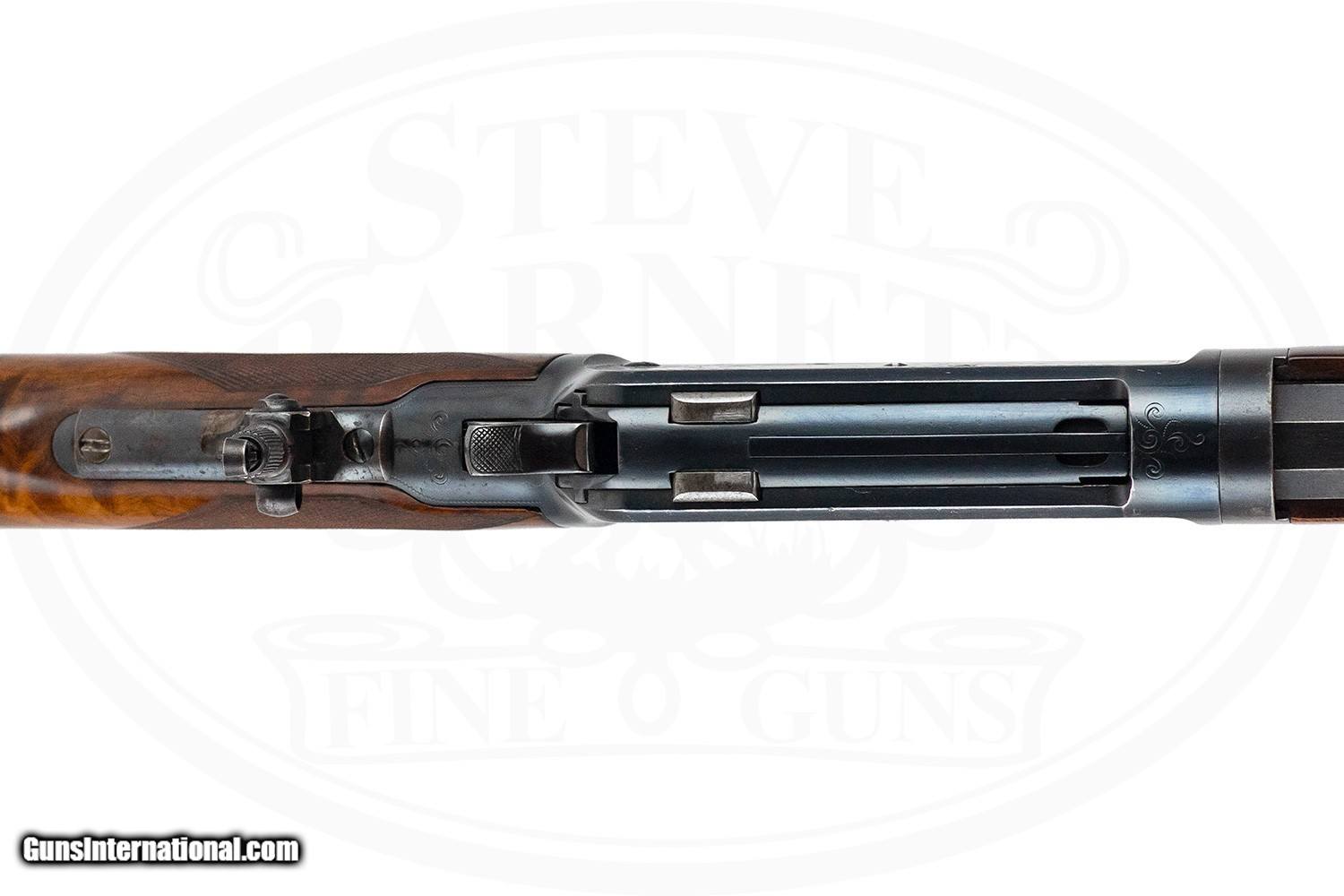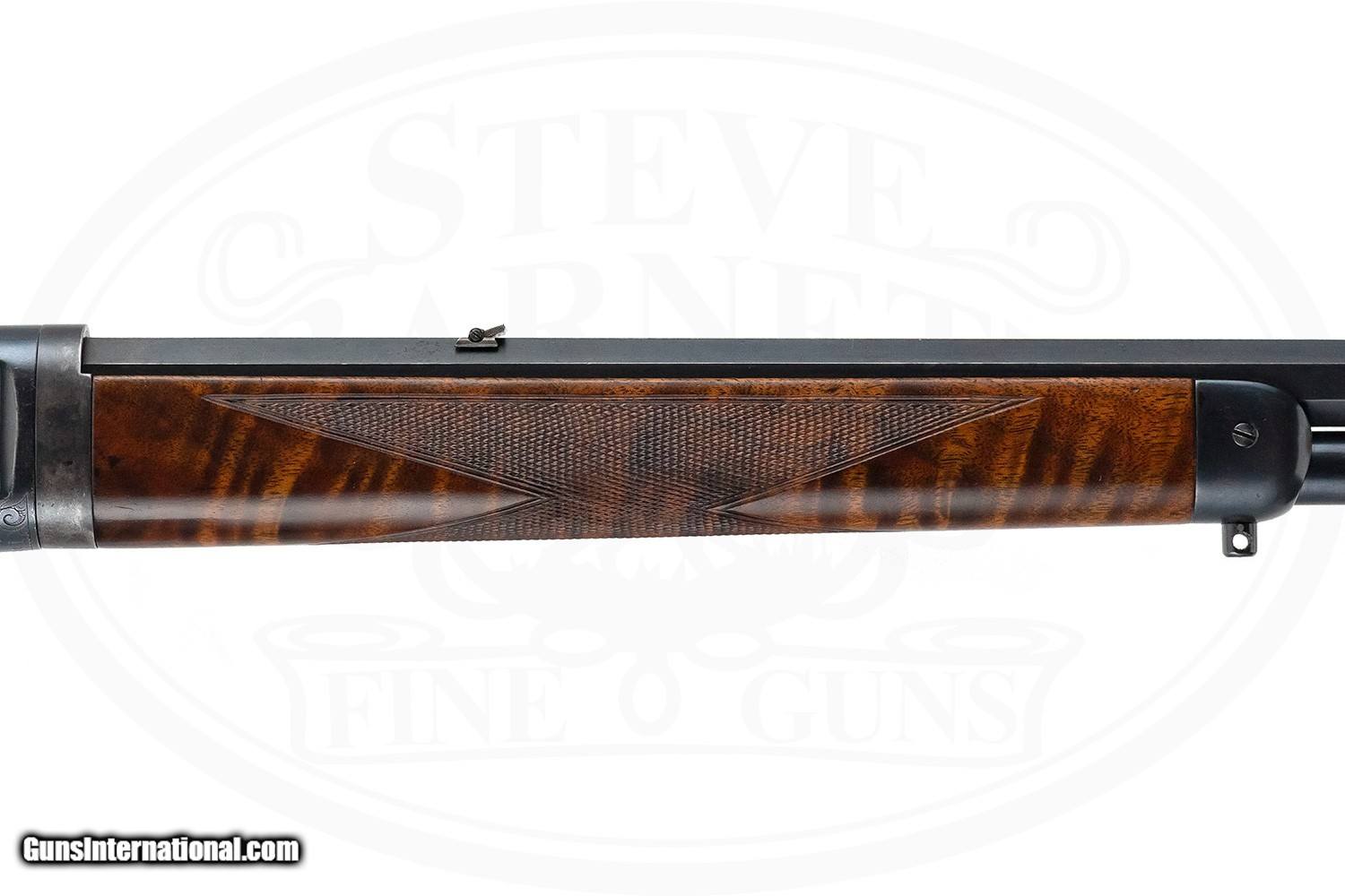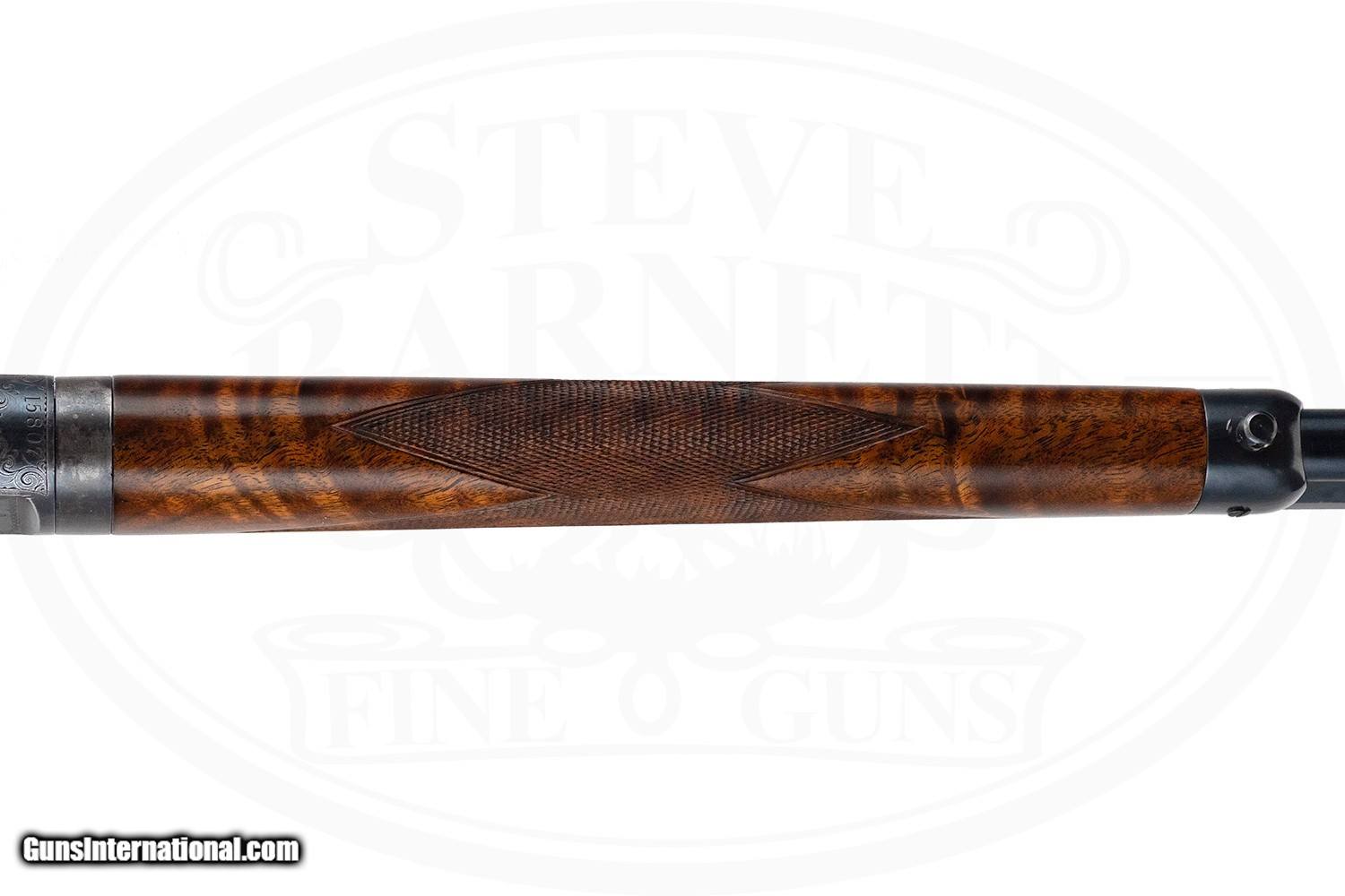 Description: SN# 15XXX 22 1/2" OCTAGON BARREL WITH COMBINATION FRONT SIGHT AND SINGLE LEAF REAR SIGHT TANG MOUNTED REAR PEEP SIGHT BARREL AND MAG TUBE APPEAR TO HAVE BEEN SHORTENED FROM BREECH END WITH FOUR PUNCH DOTS MARKED ON TOP FLAT BEHIND REAR SIGHT STEEL BUTT PLATE GUN IS IN GOOD OVERALL CONDITION WITH MOST OF THE REFINISHED BLUE STILL REMAINING THERE IS HANDLING TO WOOD AND METAL FINISHES BORE IS GOOD- SOME LIGHT PITTING BUT THE RIFLING IS SHARP 7LBS 3 OZ 13" LOP Price: $14,500.00 Buy Now Contact Seller |