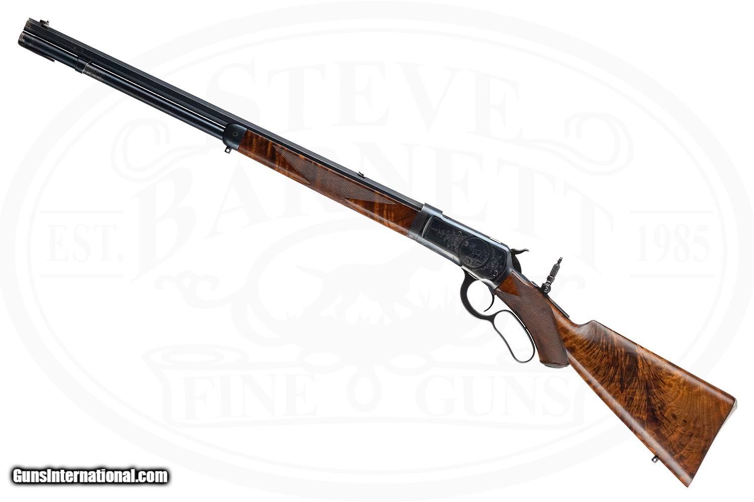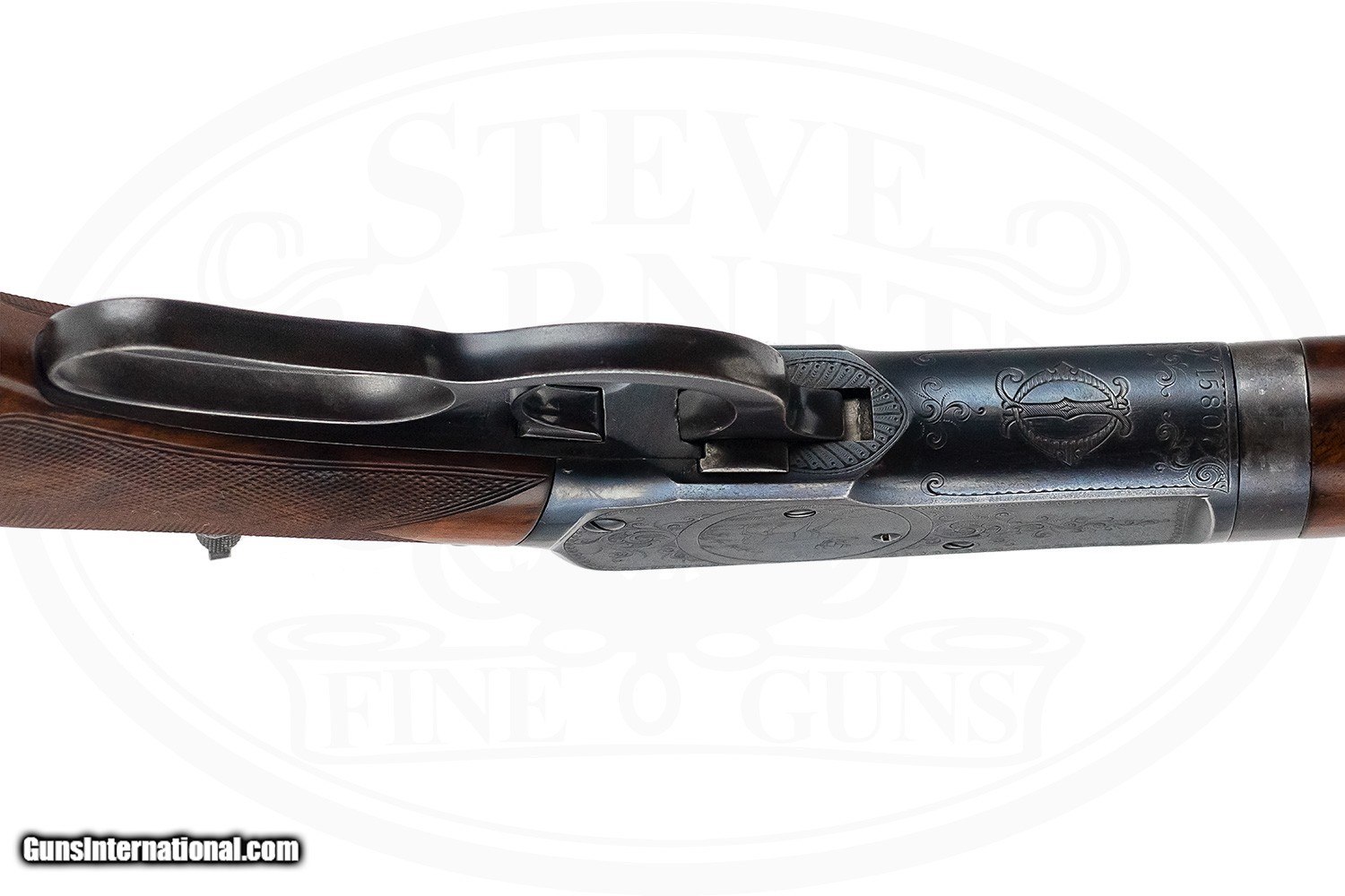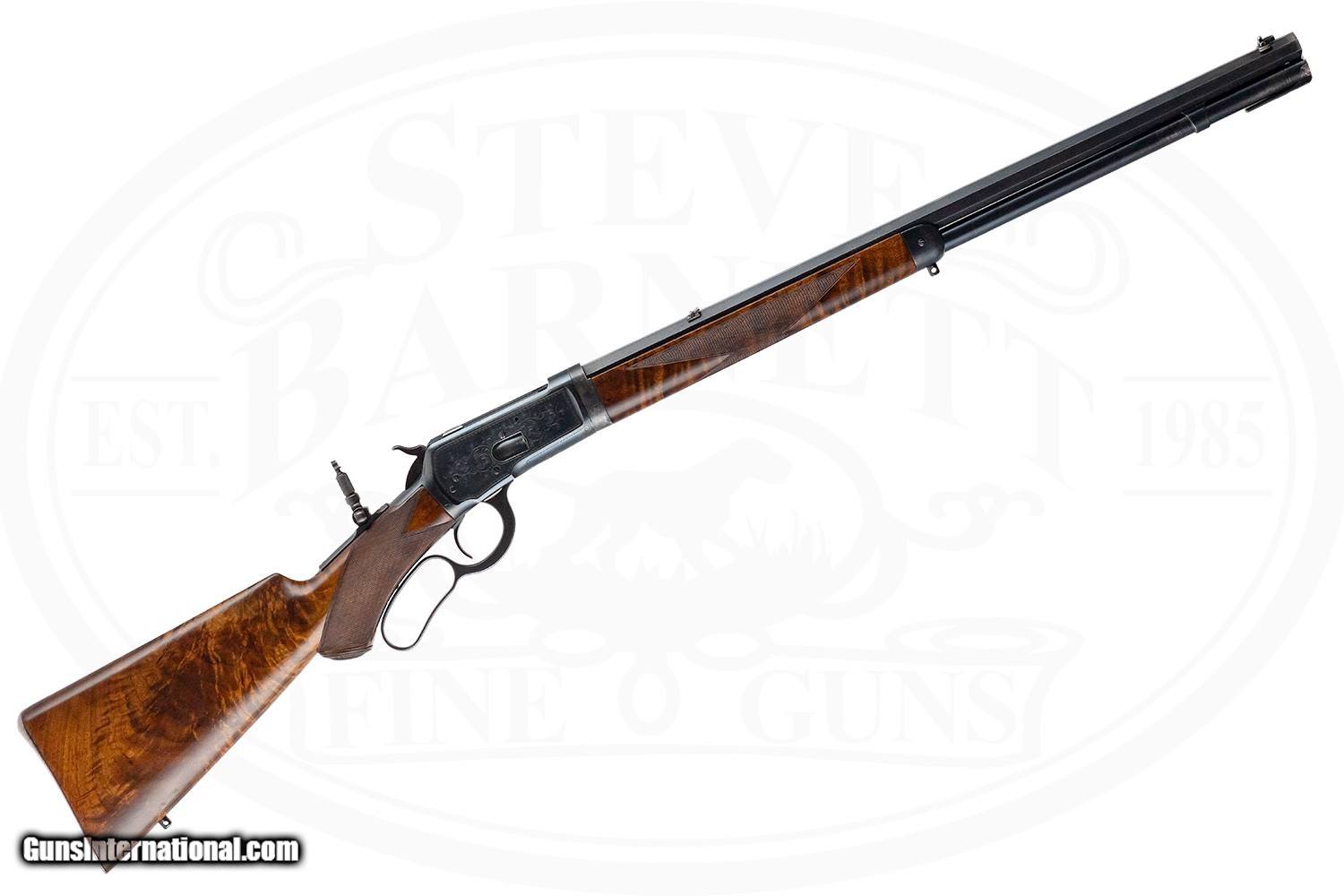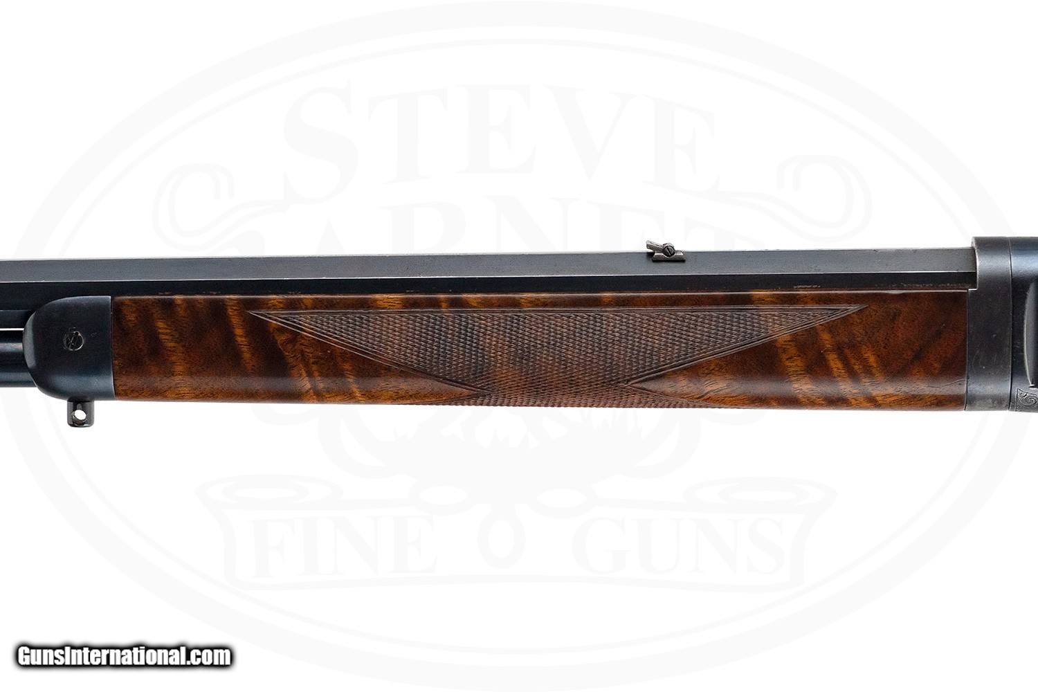 Description: SN# 15XXX 22 1/2" OCTAGON BARREL WITH COMBINATION FRONT SIGHT AND SINGLE LEAF REAR SIGHT TANG MOUNTED REAR PEEP SIGHT BARREL AND MAG TUBE APPEAR TO HAVE BEEN SHORTENED FROM BREECH END WITH FOUR PUNCH DOTS MARKED ON TOP FLAT BEHIND REAR SIGHT STEEL BUTT PLATE GUN IS IN GOOD OVERALL CONDITION WITH MOST OF THE REFINISHED BLUE STILL REMAINING THERE IS HANDLING TO WOOD AND METAL FINISHES BORE IS GOOD- SOME LIGHT PITTING BUT THE RIFLING IS SHARP 7LBS 3 OZ 13" LOP Price: $14,500.00 Buy Now Contact Seller |