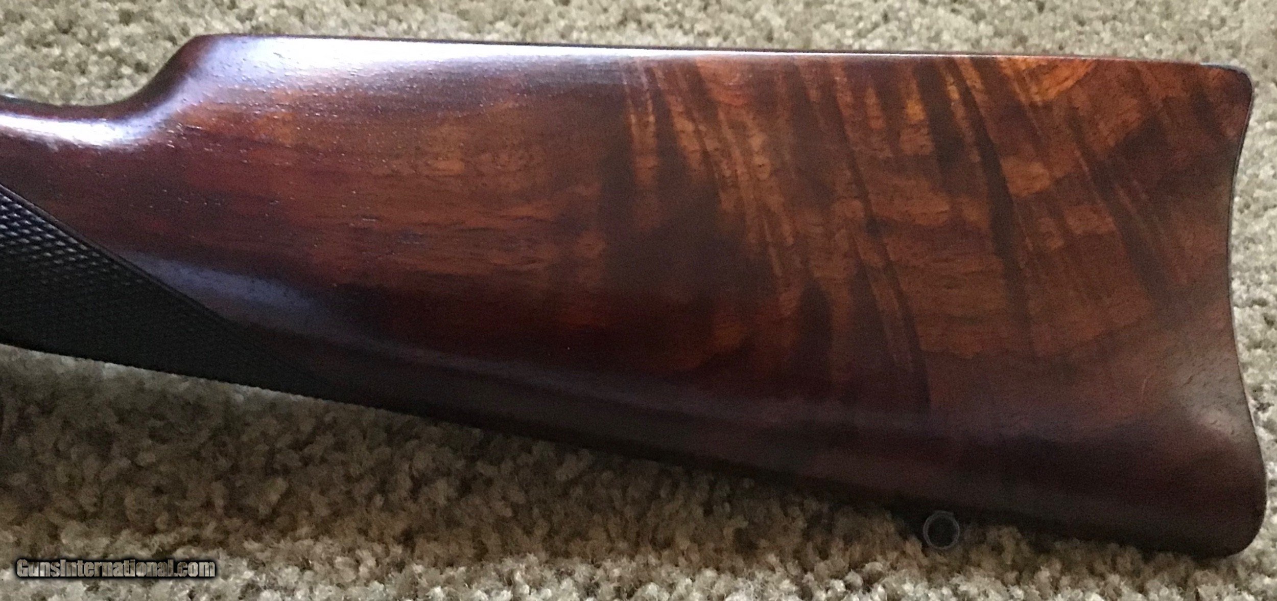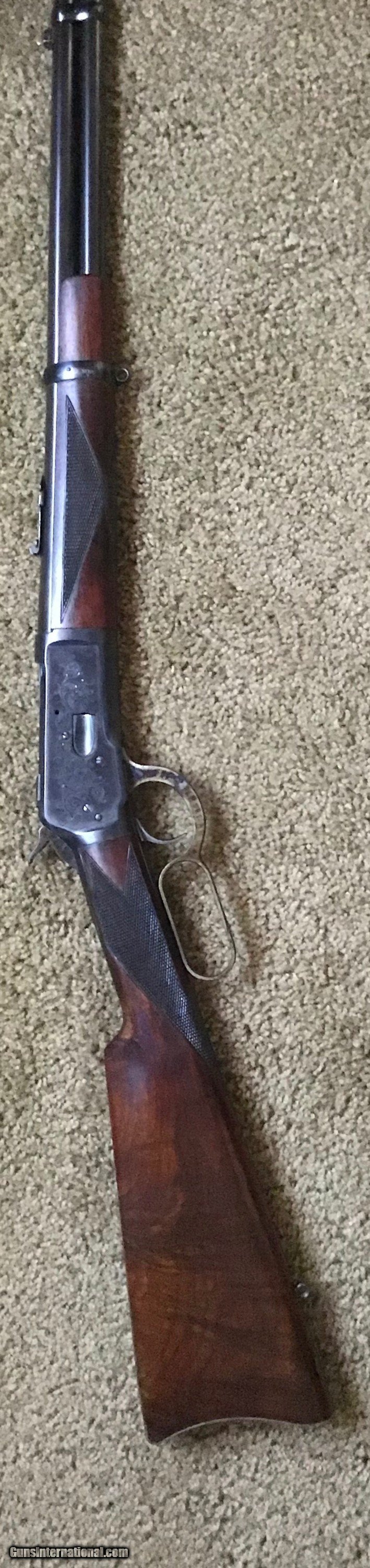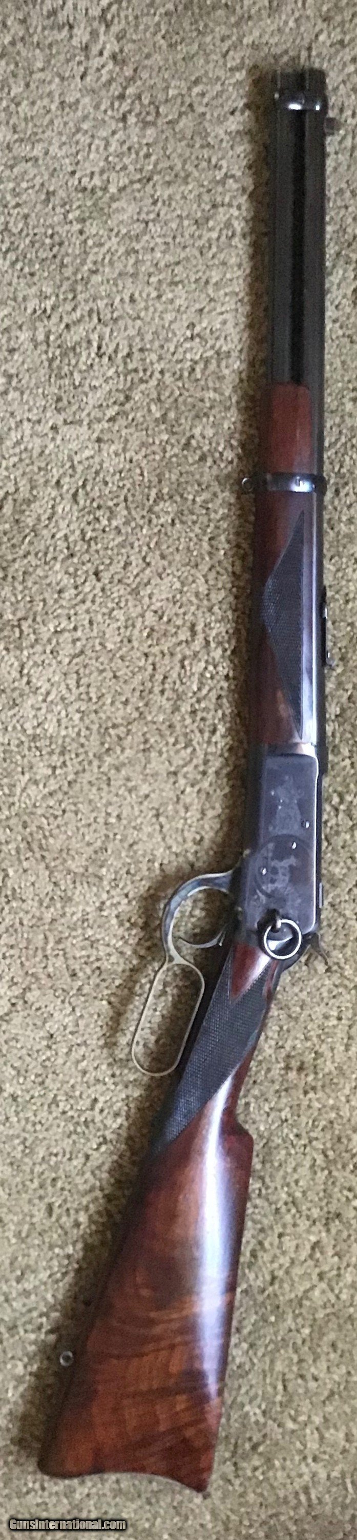 Description: This is a custom little trapper in 44-40 with a 16" barrel. It is engraved in Winchester style 10 and checkered in style H.Serial number dates it to 1892. Beautiful little rifle that shoots great and is a real eye catcher! Gun does not letter but looks like it should. Thanks for looking. SOLD Antique: Yes Manufacture Date: 1892 |