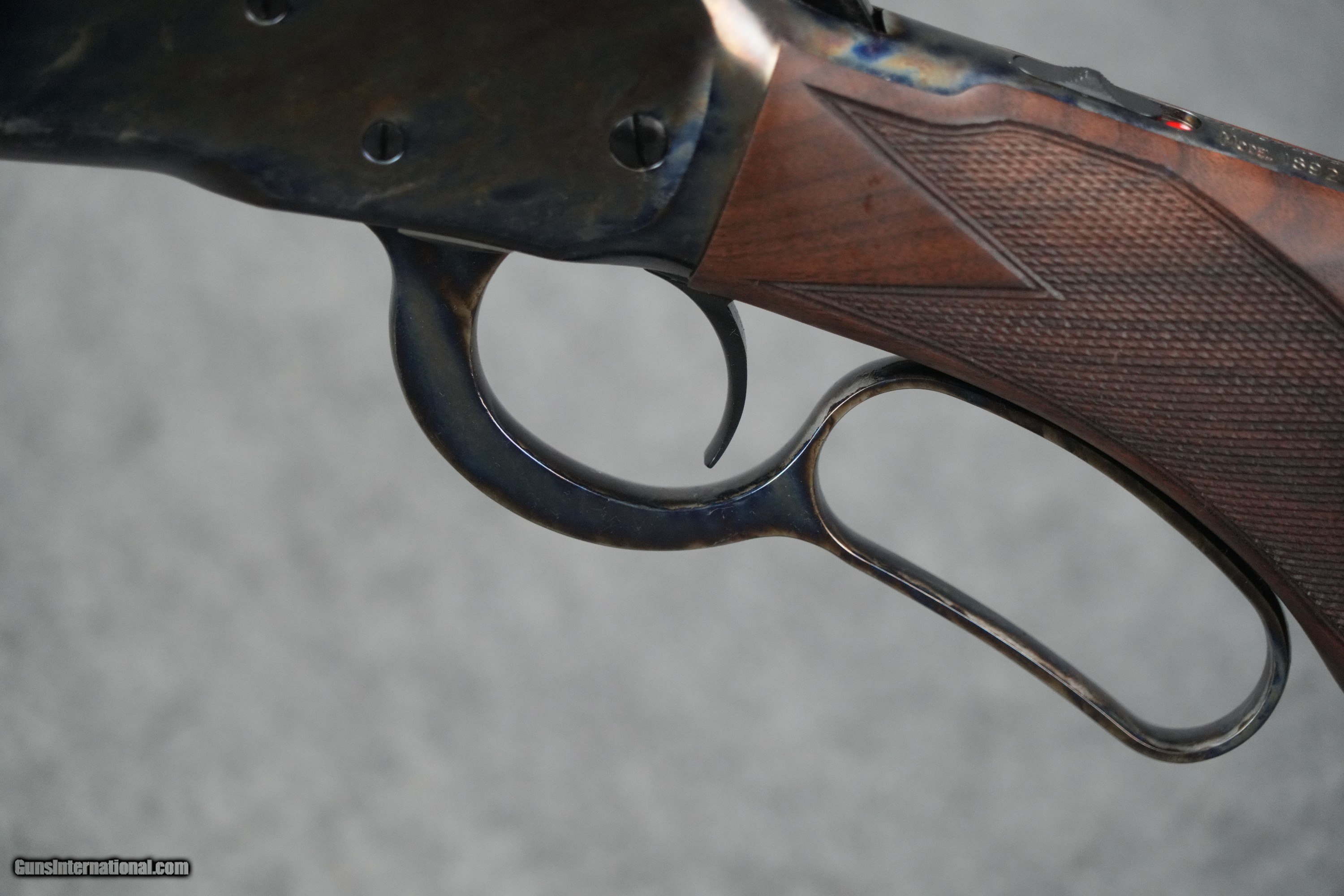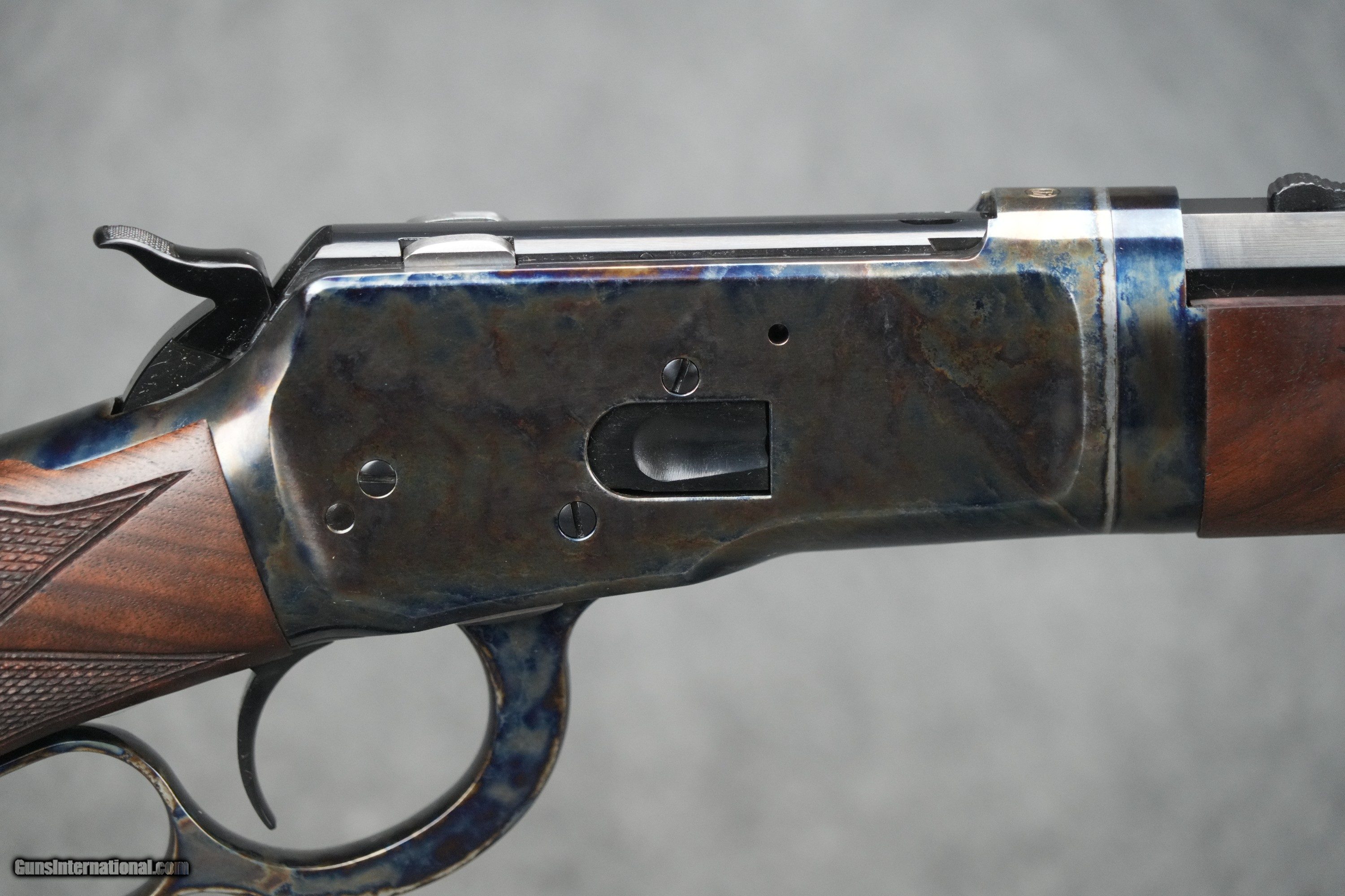 Description: Compact length, two-piece takedown, lever-action Model 1892 rifle with color case hardened finish, 16" gloss blued octagon barrel, oil finish Grade III/IV walnut stock with curved grip. Compact and ergonomic, this "trapper style" lever-action features deluxe hardware with the superior fit and finish that you expect from Winchester Repeating Arms. The little "Trapper" is one of the most admired and useful rifles of the 19th century and continues to be popular with woodsmen, trappers, and traditional outdoorsmen in this century. This deluxe version is beautiful to handle and mechanically wonderful to use. Steel color case hardened finish receiver Polished blued finish button rifled barrel Full octagon Lever-action Top tang safety Grade III/IV walnut stock Crescent butt plate Top tang is drilled and tapped for optional peep sight Receiver, lever, forearm cap, and butt plate all color case hardened Caliber 45 Colt Barrel Length 16 Overall Length 33 1/2 Length of Pull 12 3/4 Drop at Comb 1 1/8 Drop at Heel 1 3/4 Weight 5 lbs 14 oz Magazine Capacity 7 Twist Rate 26 Barrel Finish Brushed Polish Stock Finish Oil Wood Grade Grade III/IV Receiver Finish Polished Blued Chamber Finish Polished Barrel Material Steel Stock Material Black Walnut Recoil Pad Crescent Metal Pistol Grip Cap None Checkering Cut 20 LPI Sling Swivel Studs None Receiver Material Steel Trigger Finish Polished Blued Magazine Type Full-Length Tube Trigger Material Steel Trigger Guard Material Steel Trigger Guard Engraving None Floor Plate Material Steel Drilled and Tapped for Scope No SOLD Rifle Caliber: .45 Colt Manufacturer: Winchester Model: 1892 Deluxe Trapper Takedown Barrel Length: 16" Barrel Condition: BRAND NEW |