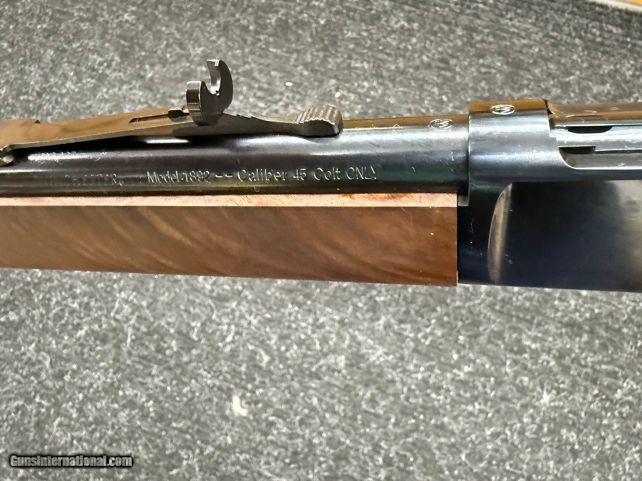 Description: Guns Listing ID: 504499 New in box very hard to get Winchester model 1892 deluxe 45 Long Colt with grade 5/6 walnut stock. Lever action with a 20 inch barrel. The Winchester 1892 Sporter with a Grade 5/6 walnut stock is a premium model of the iconic lever-action rifle designed by John Browning. This rifle was initially introduced in 1892 and is revered for its classic design, ruggedness, and smooth action, especially for shooting .44-40, .38-40, and .32-20 calibers. The Grade 5/6 walnut stock is a standout feature, indicating a highly refined level of wood craftsmanship. Here‚s a description of the rifle’s components: Stock and Forearm: Grade 5/6 Walnut: The stock and forearm are crafted from exceptional Grade 5/6 walnut, known for its luxurious, highly figured grain patterns, such as deep checkering, rich streaks, and contrasting colors (typically dark brown with hints of amber or red). The wood is hand-selected for its beauty and strength. Finish: The wood is often finished with a high-gloss or satin lacquer, bringing out the natural beauty of the grain while providing a durable, smooth surface. The stock is carefully contoured for comfort and aesthetics, often featuring a traditional crescent-shaped buttplate for a classic look. Metalwork: Blued Steel Receiver and Barrel: The metal components are typically polished and blued, offering both durability and a deep, lustrous finish. The receiver may be engraved with intricate designs or left plain, depending on the specific model or customization. Lever Action: The rifle retains the original smooth, reliable lever-action system, a hallmark of the 1892 design. It operates smoothly, making it popular for both hunting and cowboy action shooting. Features: Barrel Length: The Sporter model usually features a 20\" or 24\" barrel, optimized for both precision and handling. The shorter barrel makes the rifle quicker to maneuver, while the longer barrel improves accuracy. Sights: Typically equipped with traditional open iron sights, though some models may feature a ramp front sight and adjustable rear sight for better targeting. Caliber: Common calibers include .44-40, .38-40, and .32-20, each of which was popular during the rifle‚s heyday in the late 19th century and still suitable for hunting and sporting use today. Overall Look: The Winchester 1892 Sporter with a Grade 5/6 walnut stock represents a perfect blend of historical craftsmanship and modern quality. Its graceful, timeless aesthetic, combined with a practical, well-built lever-action mechanism, makes it a sought-after rifle for collectors and shooters alike. Whether displayed as a piece of history or used for sport shooting, this rifle is a true work of art. SOLD Manufacturer: WINCHESTER Model: 1892 Sporter Caliber Info: .45 LC Condition: Used - Non-Certified Barrels: 20 BARREL Action: LEVER ACTION Finish: blued |