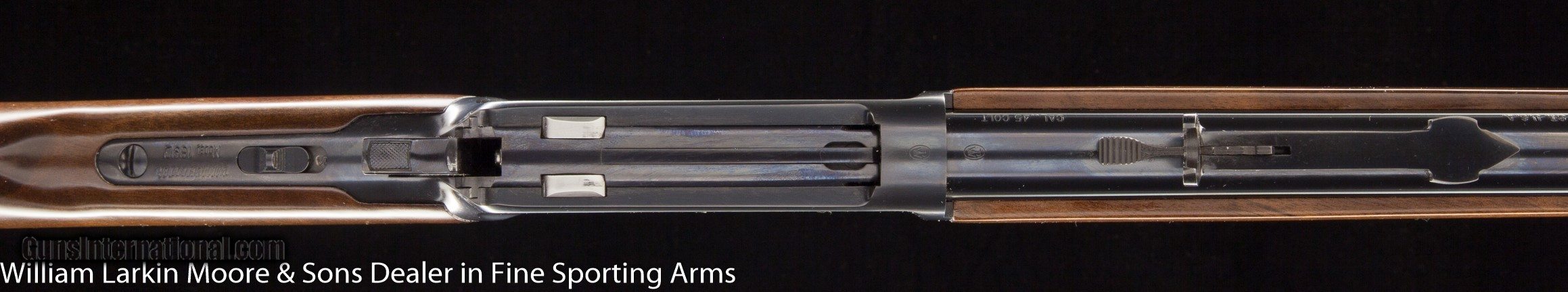Description: ID # 7253 Make WINCHESTER (USRA) Model 1892 rifle Configuration Lever Action Gauge / Caliber .45 LC Price $1,000.00 Serial # NT0289 Country of Origin Japan Barrel Length (in Inches) 24 round barrel Stock Configuration Straight Grip, Crescent butt Forearm Type Rifle type capped forearm Receiver Finish Blue Engraving Type Game Scene Engraving Other Options Shotgun style tang safety, Condition Near PERFECT Condition Weight 6#15oz Dimensions 13" LOP SOLD |