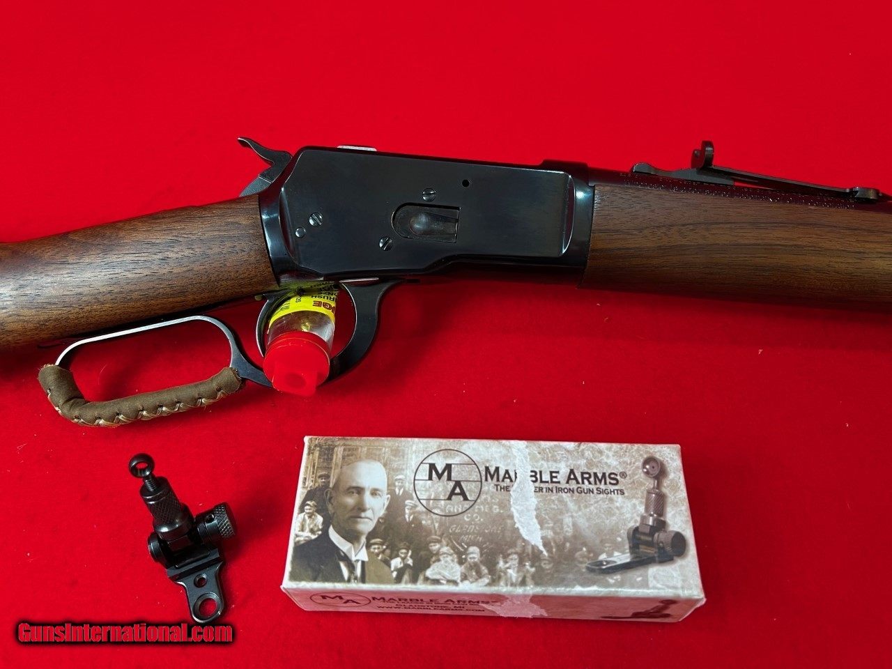 Description: Winchester Model 1892 Saddle Ring Carbine chambered in 45 Colt, rifle is in excelent condition and comes with a Marbles rear tang and high viz front sight. Carbine comes with the original front sight as well. As the pictures show the rifle is in excellent condition but does not come with the original box. $50 shipping SOLD |
