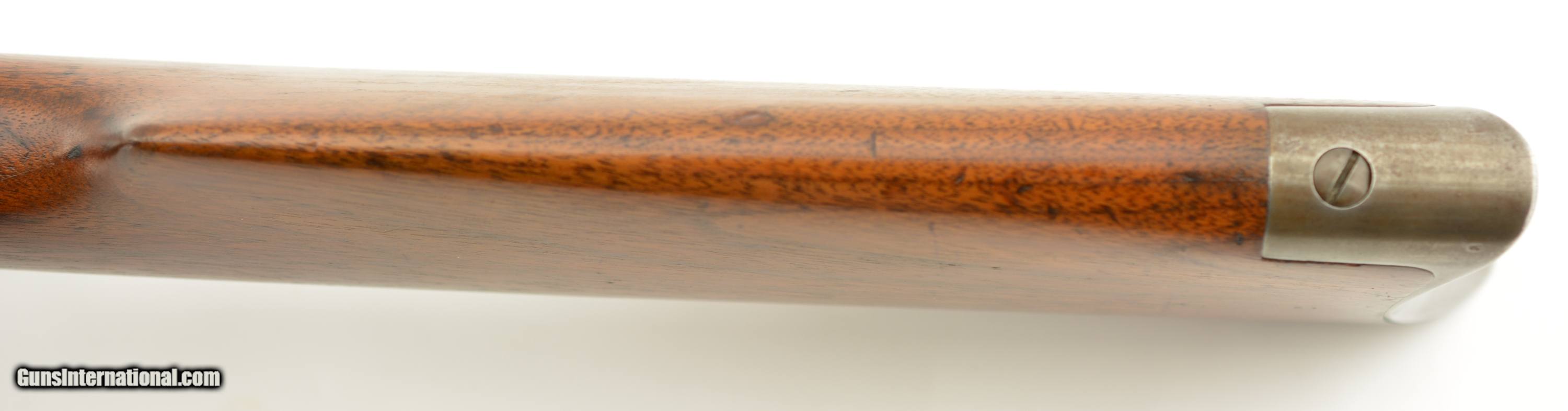 Description: Serial #719002, .38 WCF (.38-40), 24" barrel with an excellent, bright bore. This is a 1913-made rifle that has retained about 80-85% of the original blue finish, with plum-brown fading on the balance, and mild silvering starting to appear along the edges and projections. The lever has a mottled gray-brown patina with traces of bright original color case-hardening still visible on the loop where it meets the locking blocks, and further color case-hardening still remains on the sides of the hammer. Gray metal is also visible on the underside of the frame at the carry point. The walnut forend and buttstock are in fine condition with only minor handling marks scattered about the original varnish. The rifle is fitted with a sporting front blade and semi-buckhorn rear sight, and the action functions flawlessly. This is a splendid example of a Model 1892 rifle, in a terrific chambering, and would make a superb addition to a collection. FFL or C&R SOLD Curio/Relic: Yes Manufacturer: Winchester Model: 1892 Serial Number: 719002 Caliber Info: .38-40 Gauge Info: .38-40 |