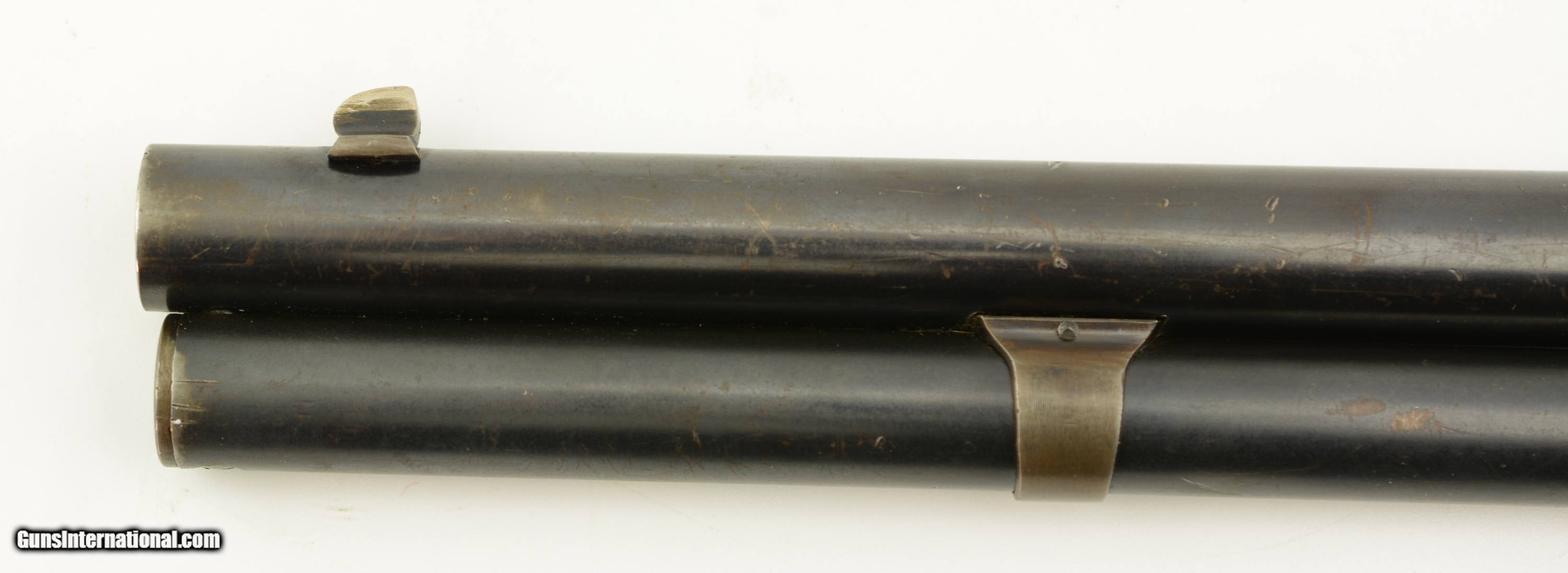 Description: Serial #719002, .38 WCF (.38-40), 24" barrel with an excellent, bright bore. This is a 1913-made rifle that has retained about 80-85% of the original blue finish, with plum-brown fading on the balance, and mild silvering starting to appear along the edges and projections. The lever has a mottled gray-brown patina with traces of bright original color case-hardening still visible on the loop where it meets the locking blocks, and further color case-hardening still remains on the sides of the hammer. Gray metal is also visible on the underside of the frame at the carry point. The walnut forend and buttstock are in fine condition with only minor handling marks scattered about the original varnish. The rifle is fitted with a sporting front blade and semi-buckhorn rear sight, and the action functions flawlessly. This is a splendid example of a Model 1892 rifle, in a terrific chambering, and would make a superb addition to a collection. FFL or C&R SOLD Curio/Relic: Yes Manufacturer: Winchester Model: 1892 Serial Number: 719002 Caliber Info: .38-40 Gauge Info: .38-40 |