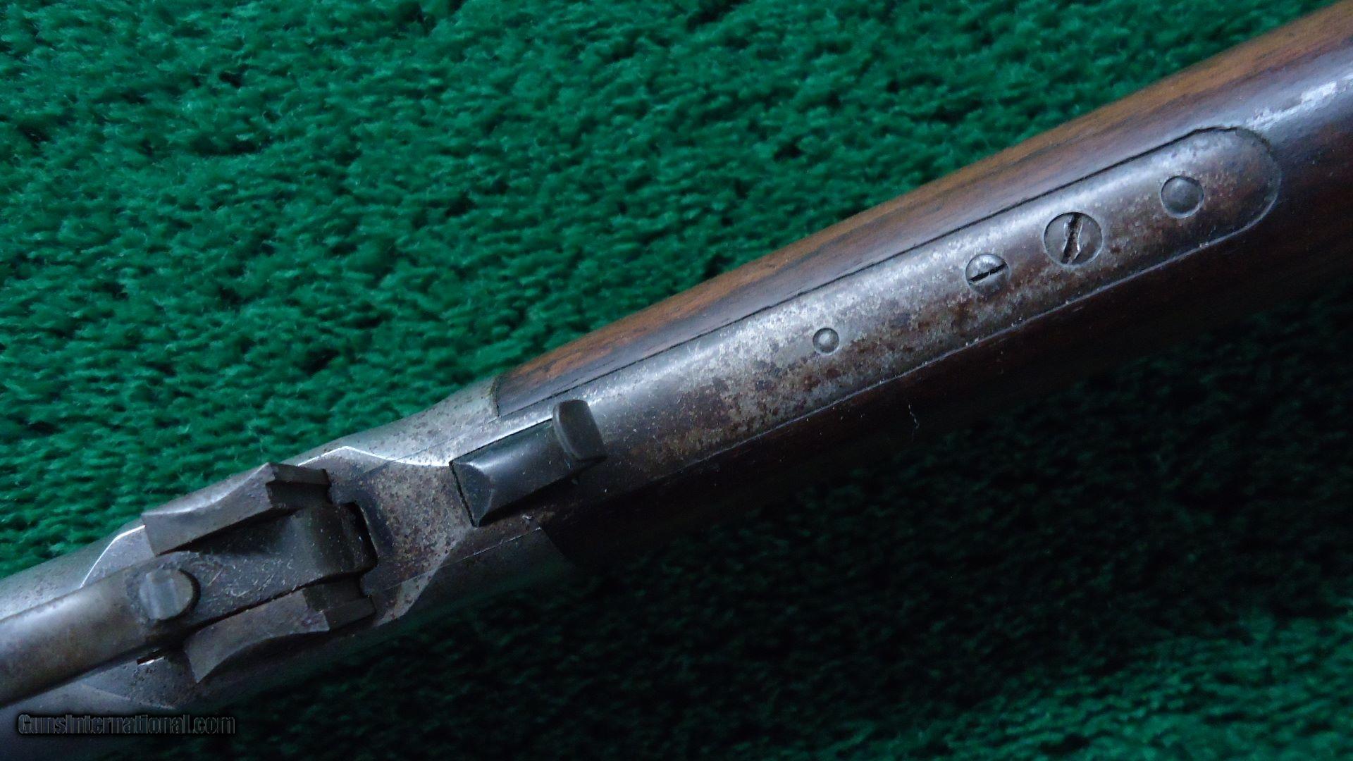 Description: 24 inch round barrel chambered in 38 WCF caliber with button mag tube. Original sights. VG+ bore. Bright and shiny with sharp rifling. Wood shows a fair amount of use with a few dings and mars. Still retains some original varnish. Complete with a rifle style buttplate. Barrel has turned a plum/blue/brown patina. Receiver is mostly silver colored and has some light pitting. Traces of case color remain on hammer and lever. Should make a good shooter with nice functioning action. Leroy Merz Antique Firearms specializes in antique and vintage Winchesters and other fine American firearms. Since 1965 Mr. Merz has taken part in the world of firearms and has been a contributor to many well known reference books. Just recently we mailed the 127th edition of our privately-published catalog. We have hundreds of additional guns in every price range at our home online. Search for Merz Antiques in google. SOLD Curio/Relic: Yes |