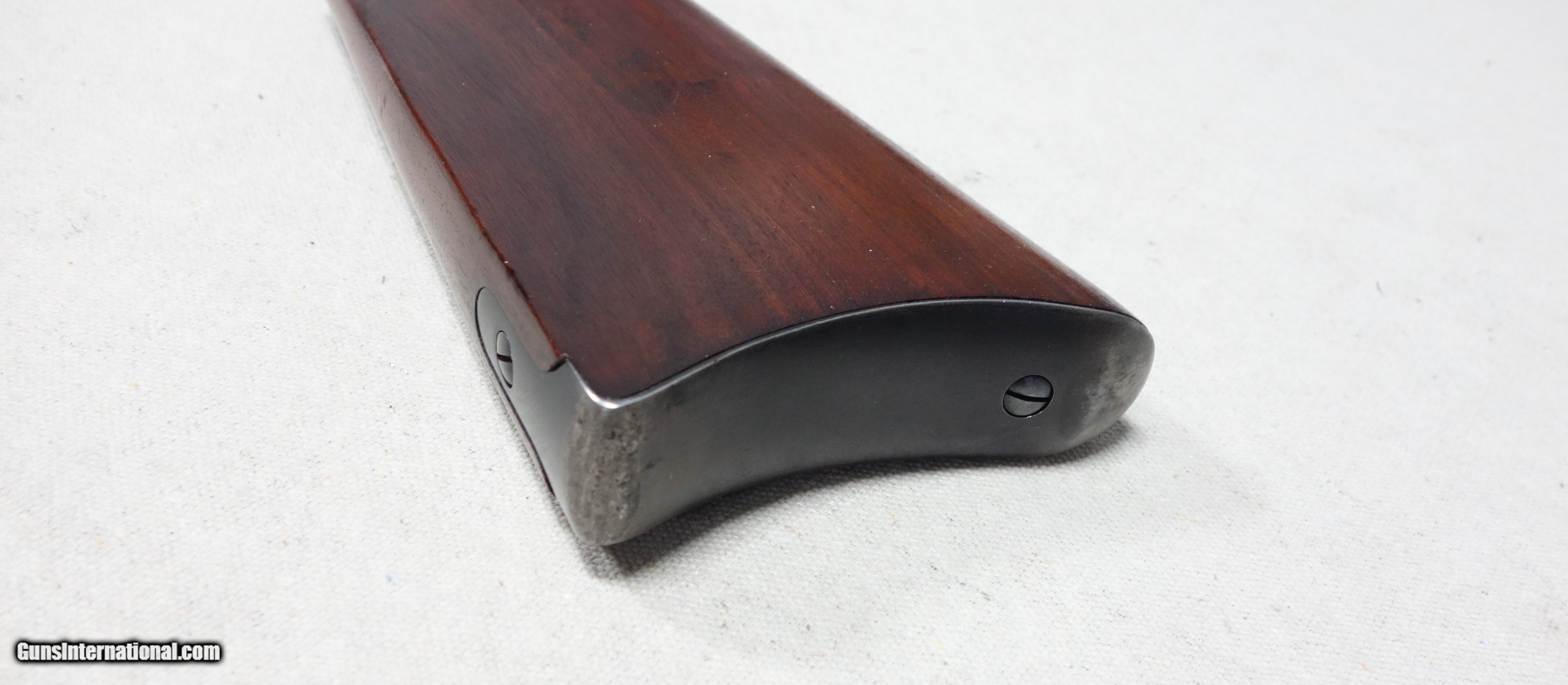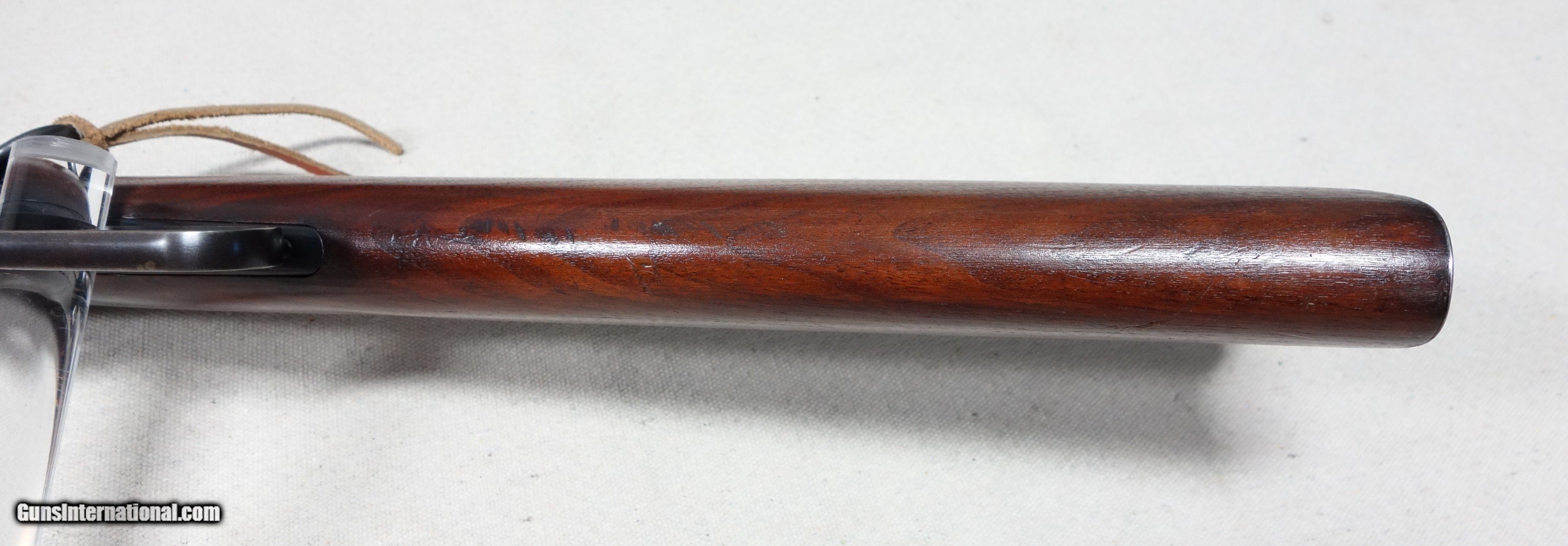 Description: ***SALE PENDING*** Excellent Winchester 1892 Saddle Ring Carbine in 25-20 caliber. Very scarce in this finer condition. S/N 947439 made in 1925. The bluing is very strong on barrel and mag tube, as well as on all protected surfaces, with a rich and even tone showing only widely scattered light nicks. There is typical flaking of the receiver, most notably on the sidewalls and underneath, which has partially turned to a gunmetal/brown patina. The wood remains in exceptional condition, proud everywhere with virtually all of its original finish, showing only minimal light marks and/or staining. There are no cracks, broken corners, repairs or refinish. Very nice. You may notice a fine line on L side just in front of the forearm band that is not a crack, but appears to be a scratch that probably occured during a previous takedown. The 20" barrel has a minty bore, bright with strong rifling throughout its entire length. All mechanical functions are working smoothly and properly as well. Original sight package includes a pinned front blade and 200 yard rear ladder sight. Not perfect, but one of the nicest you'll see offered, especially considering its 100 years of circulation! Please add $100 for expedited and fully insured shipping in a custom cut, foam lined box. SAFETY NOTICE: Buyer is solely responsible for determining that a used gun is safe to shoot. The firearms offered by Frontier Guns have not been test fired but have been given a visual inspection only for the purpose of sale. It is a requirement that every used firearm be inspected by a qualified gunsmith before loading or firing. By purchasing, the buyer agrees to hold seller harmless against damages, injury, or death caused by defective merchandise or improper use. SOLD Curio/Relic: Yes |